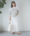 パンツスタイルはもちろん、スカートスタイルにも合わせやすい一枚。細見のパンツやタイトスカートの時はさらっとそのままで。ワイドパンツやフレアスカートの時はフロント部分をタックインするとバランスよく着ていただけるのでおすすめです。