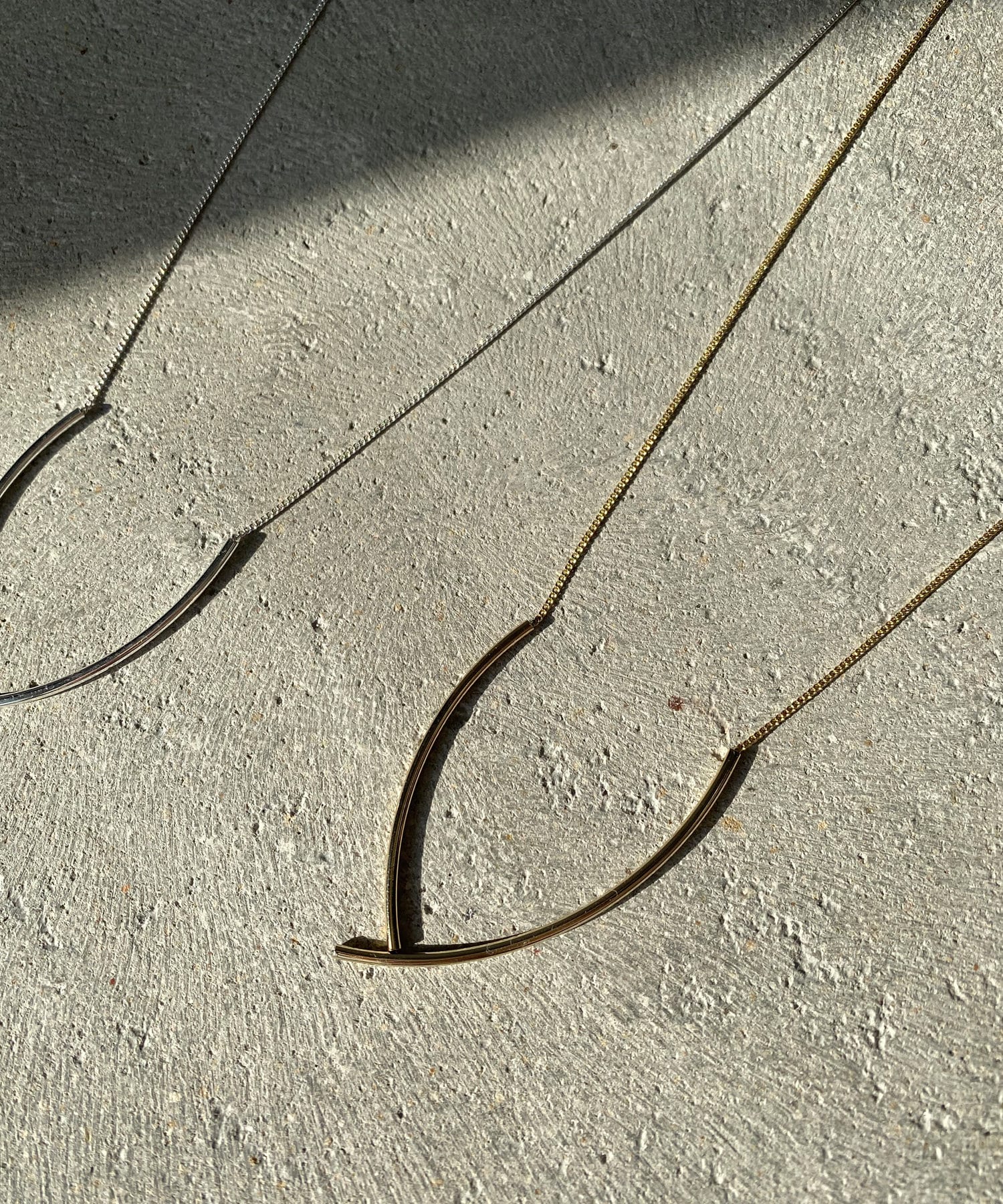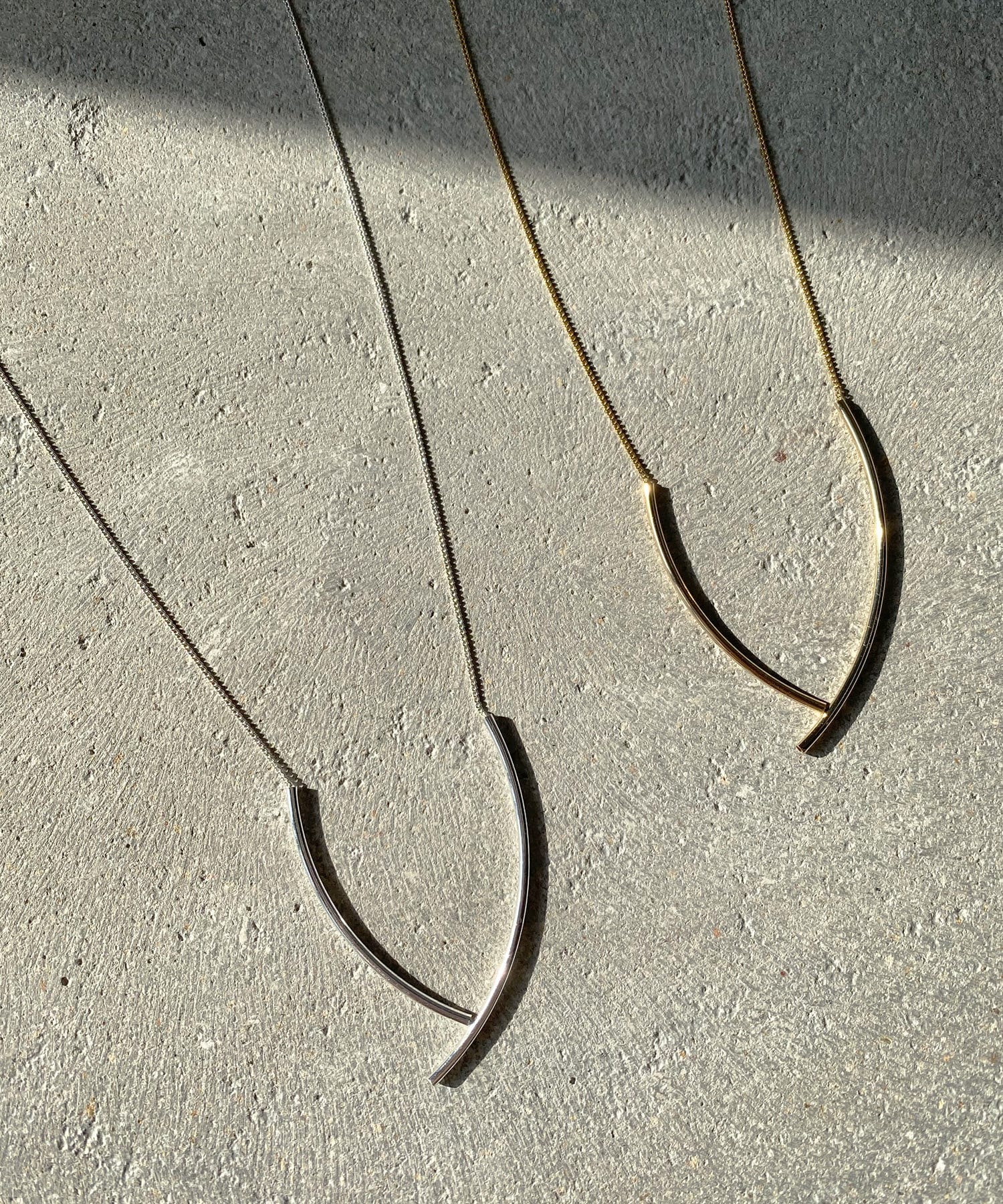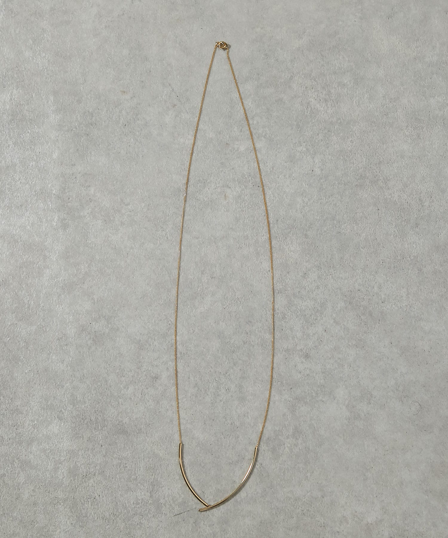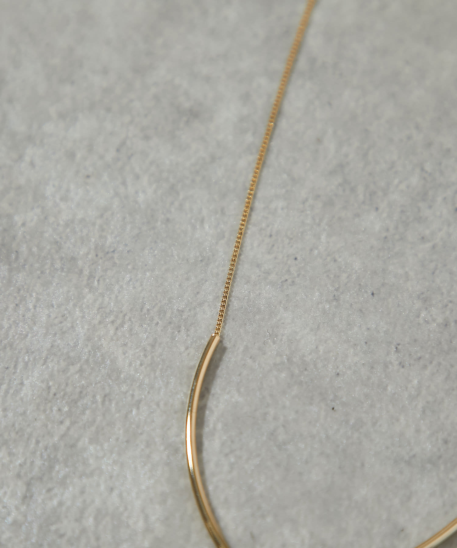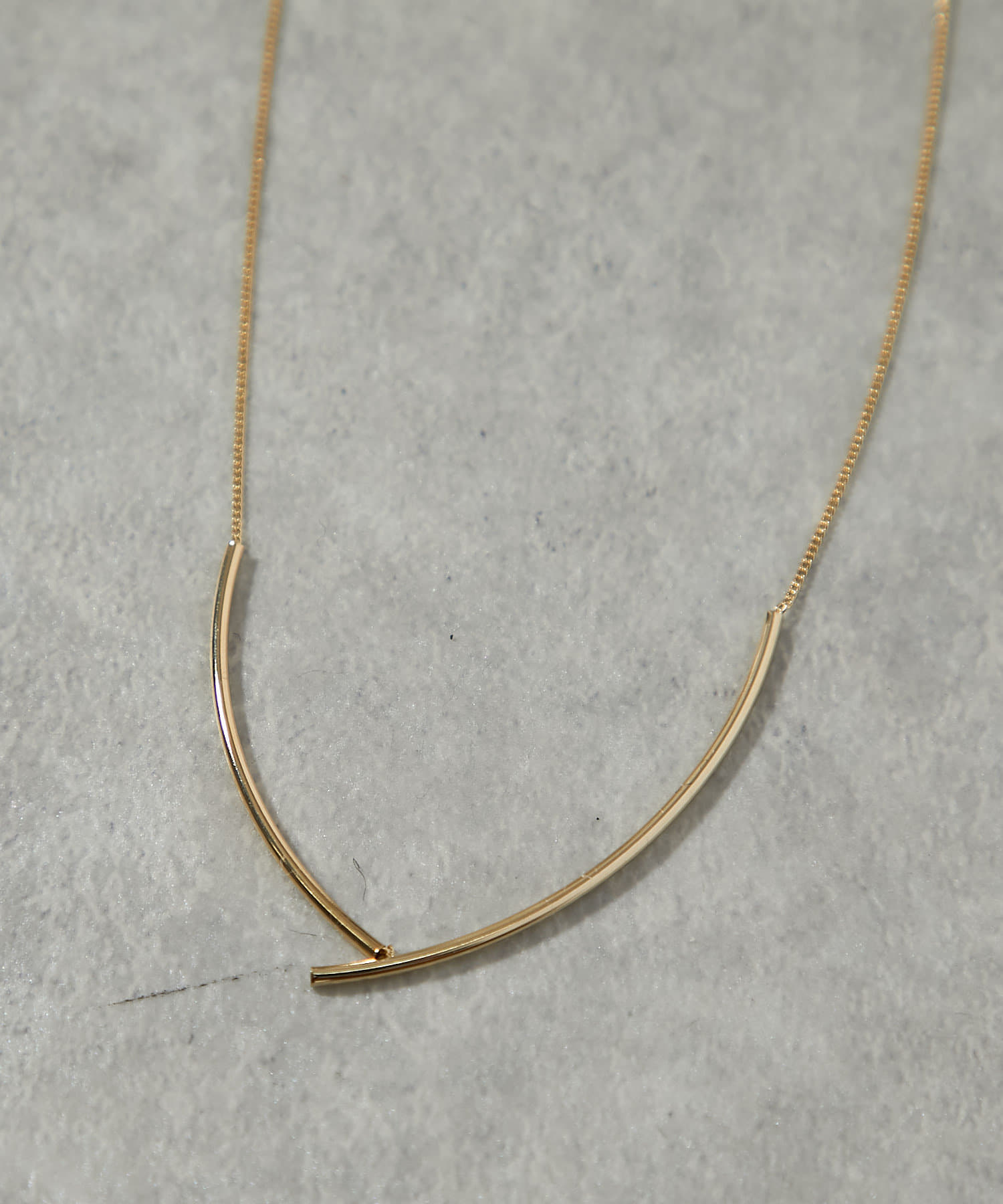 華奢なチェーンにパイプ型のカーブメタルがついているデザインのネックレス。