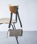取り外しが出来るショルダーストラップ付きとなっており、ストラップは太めに設計してるので、スタイリングのアクセントになります。