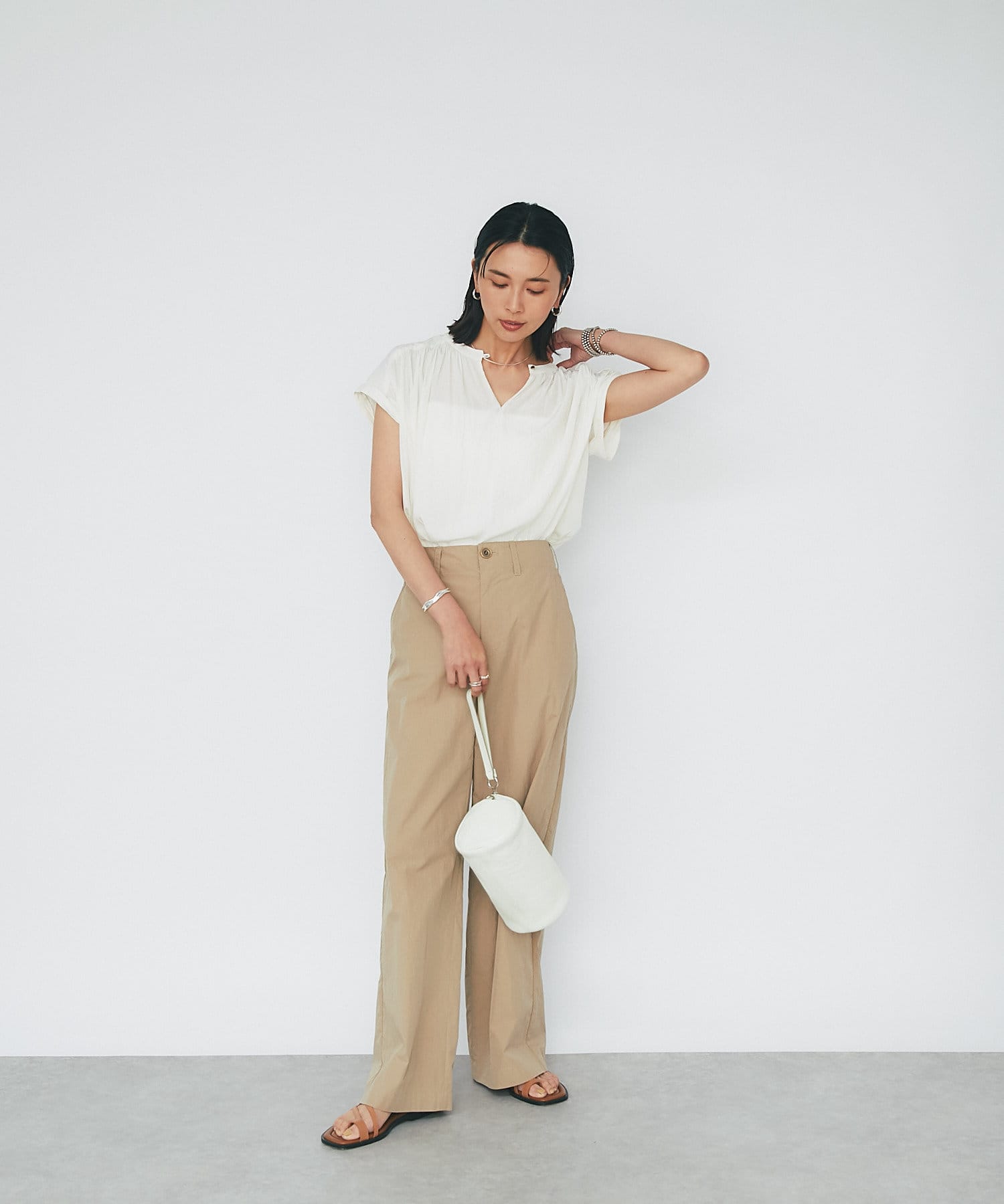 また、本体の引手部分にも大き目のストラップを付けており、2wayでお持ち頂けますので、コーディネートに合わせて様々な使い方も◎