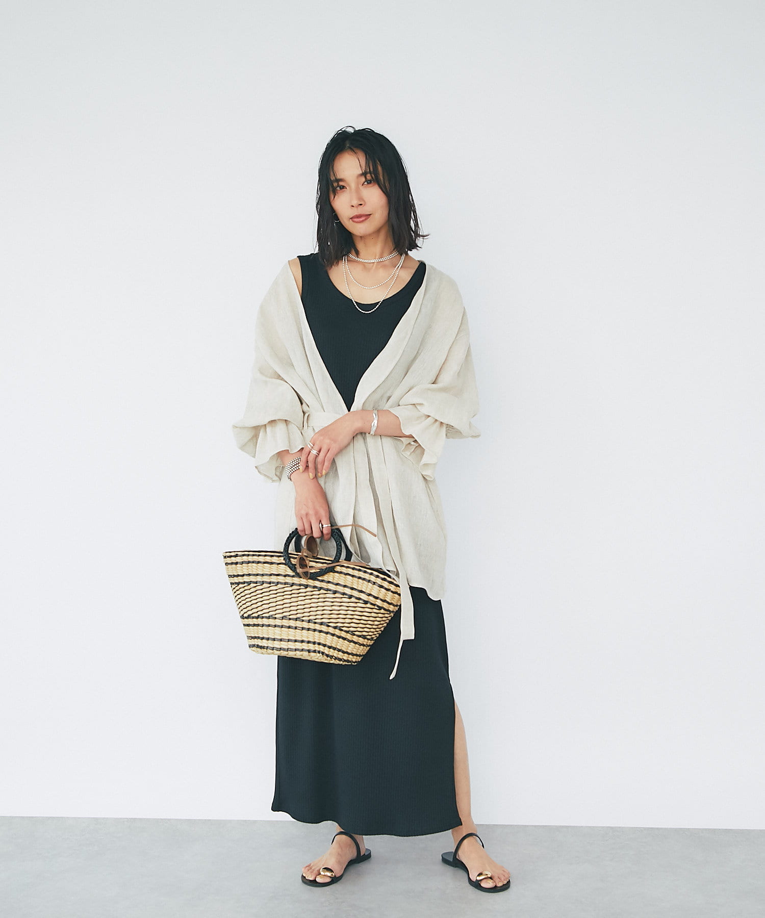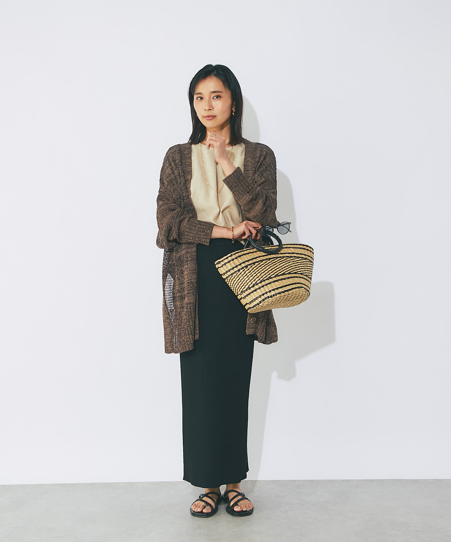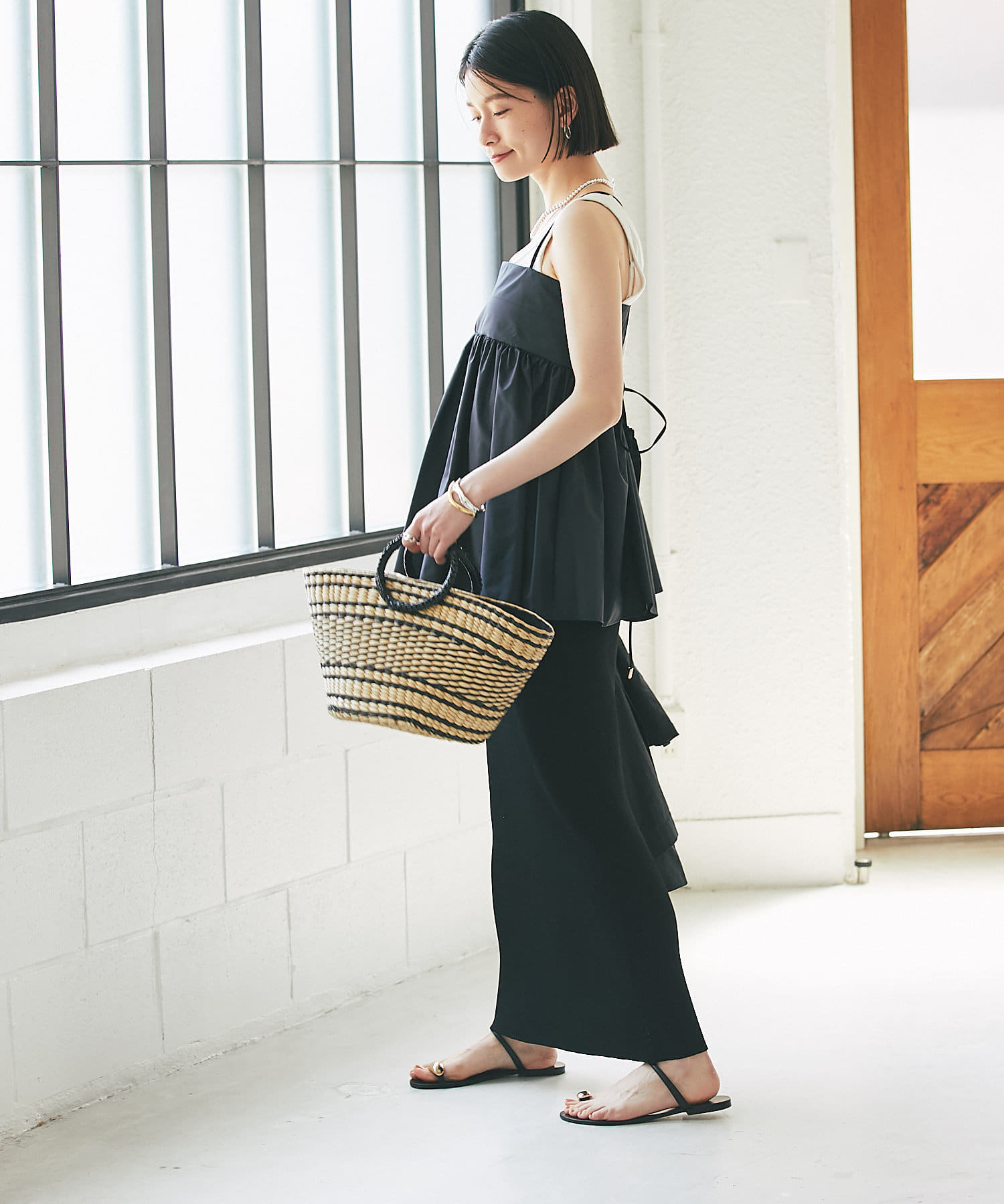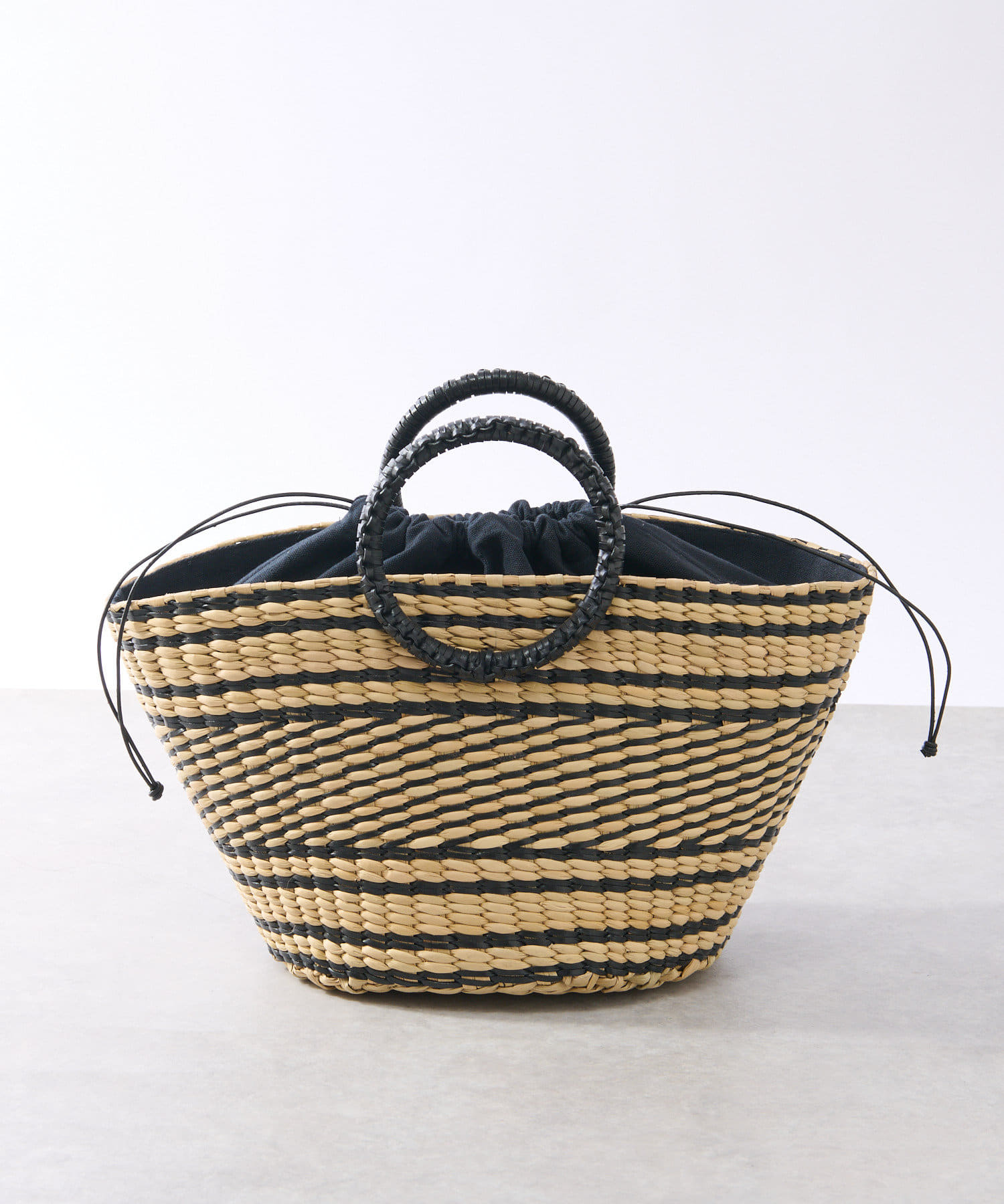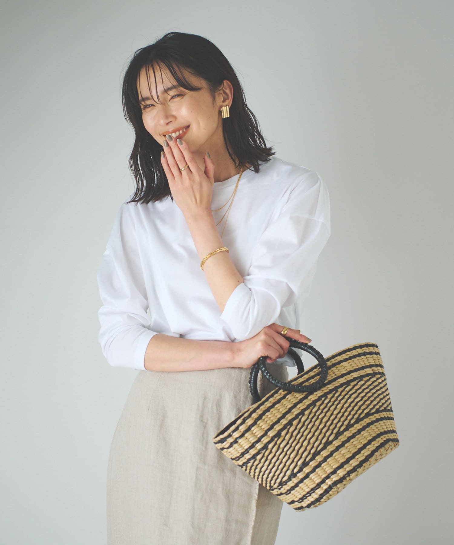 クラフトバッグらしい丸型ハンドルもポイントで、シンプルなコーディネートにはもちろん、柄ワンピースなどにも見事にマッチする一品です。