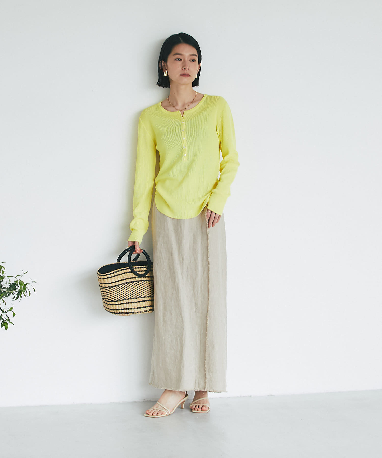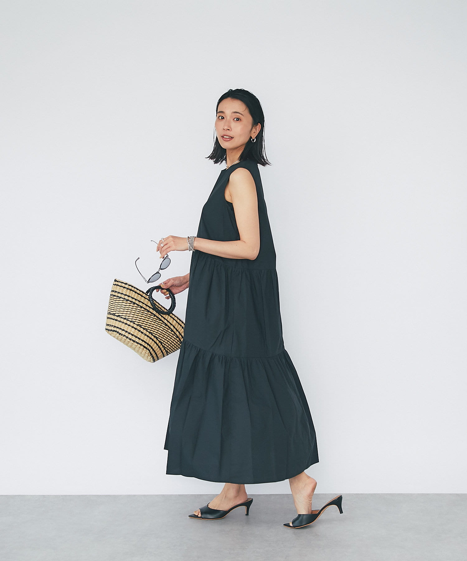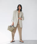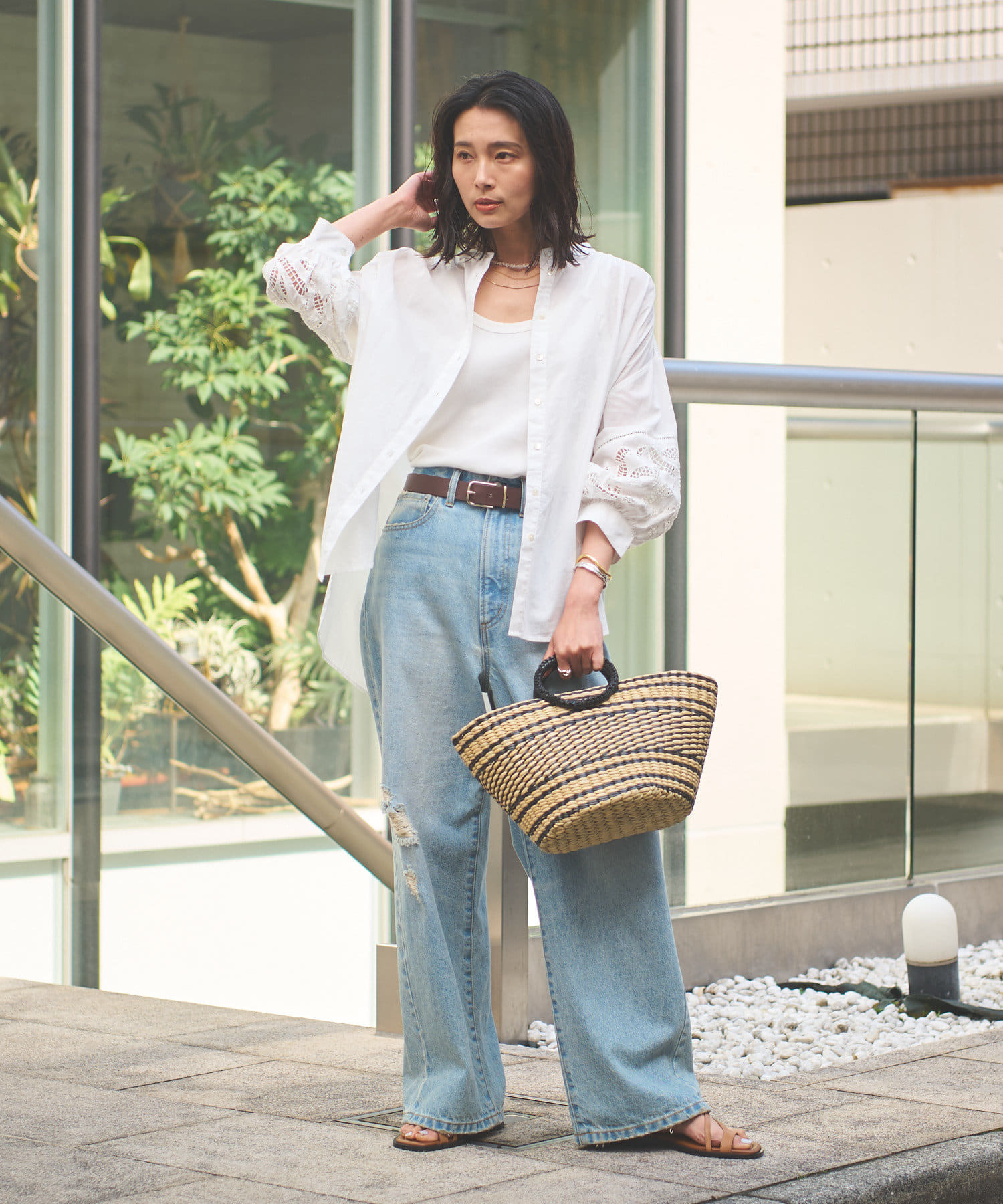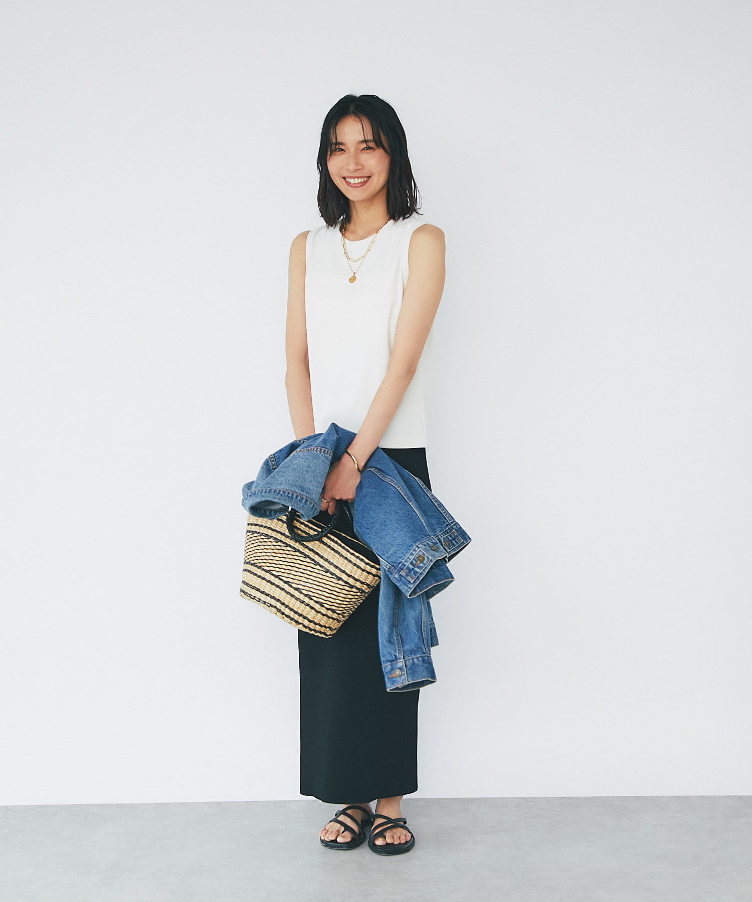 クラフトバッグらしい丸型ハンドルもポイントで、シンプルなコーディネートにはもちろん、柄ワンピースなどにも見事にマッチする一品です。