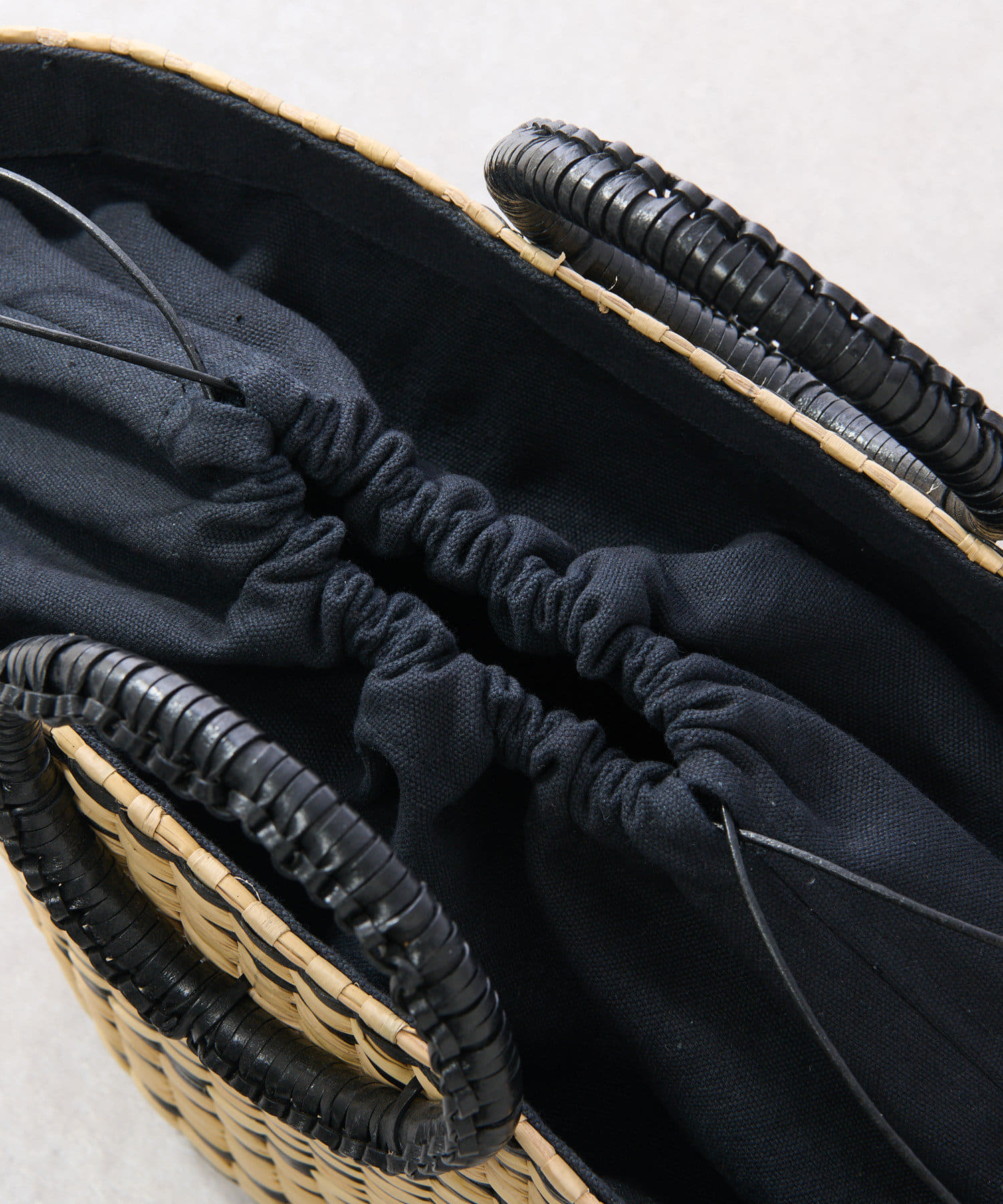 持ち運びしやすいサイズ感のデザインかごバッグ。