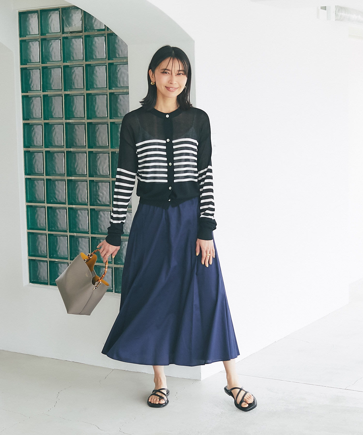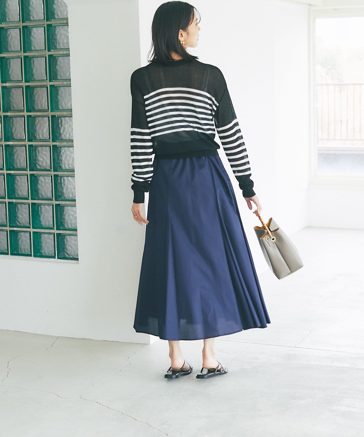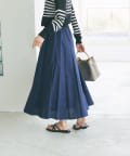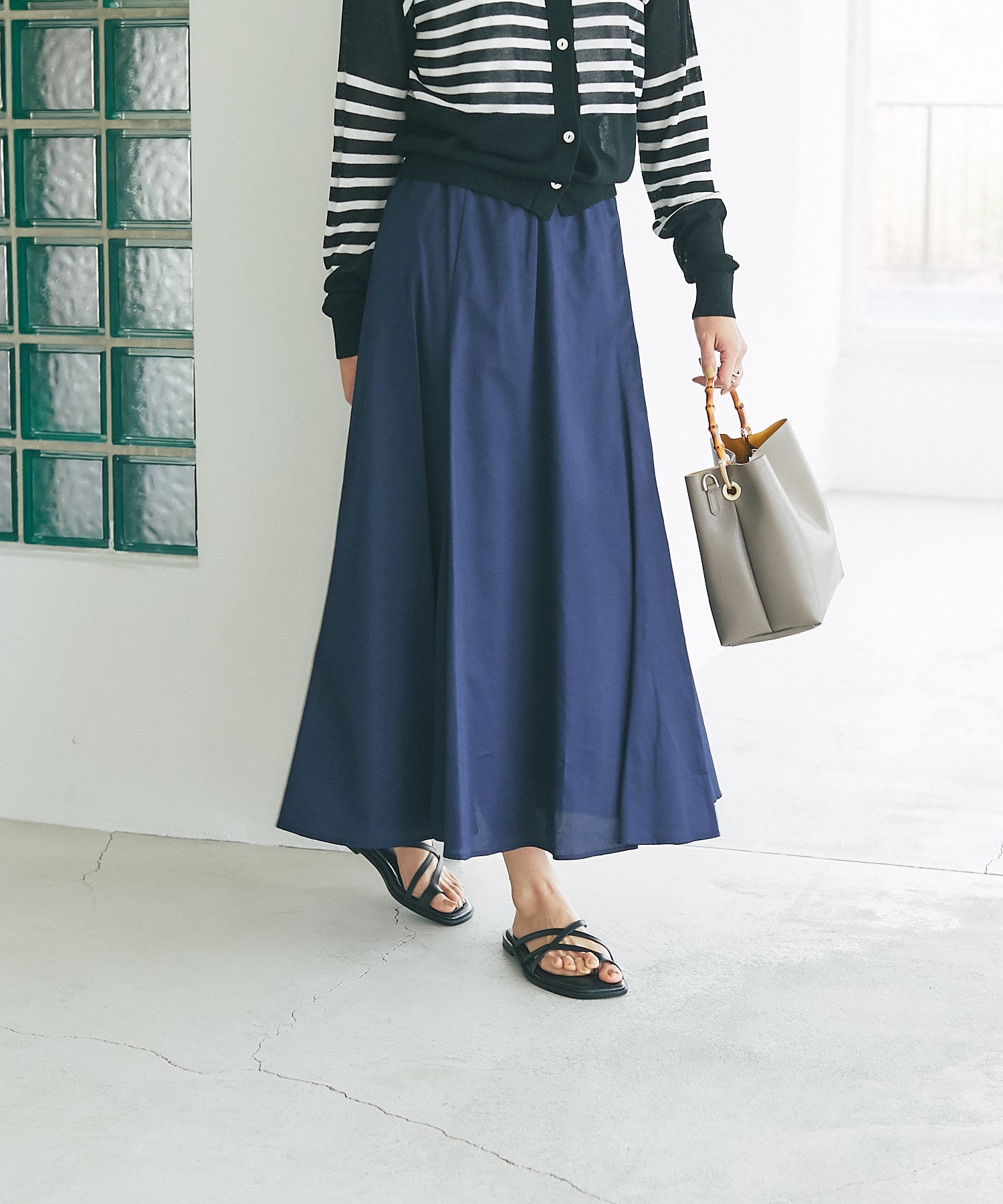 ヘムラインのボリューム感がコーデに映えるフレアスカート。