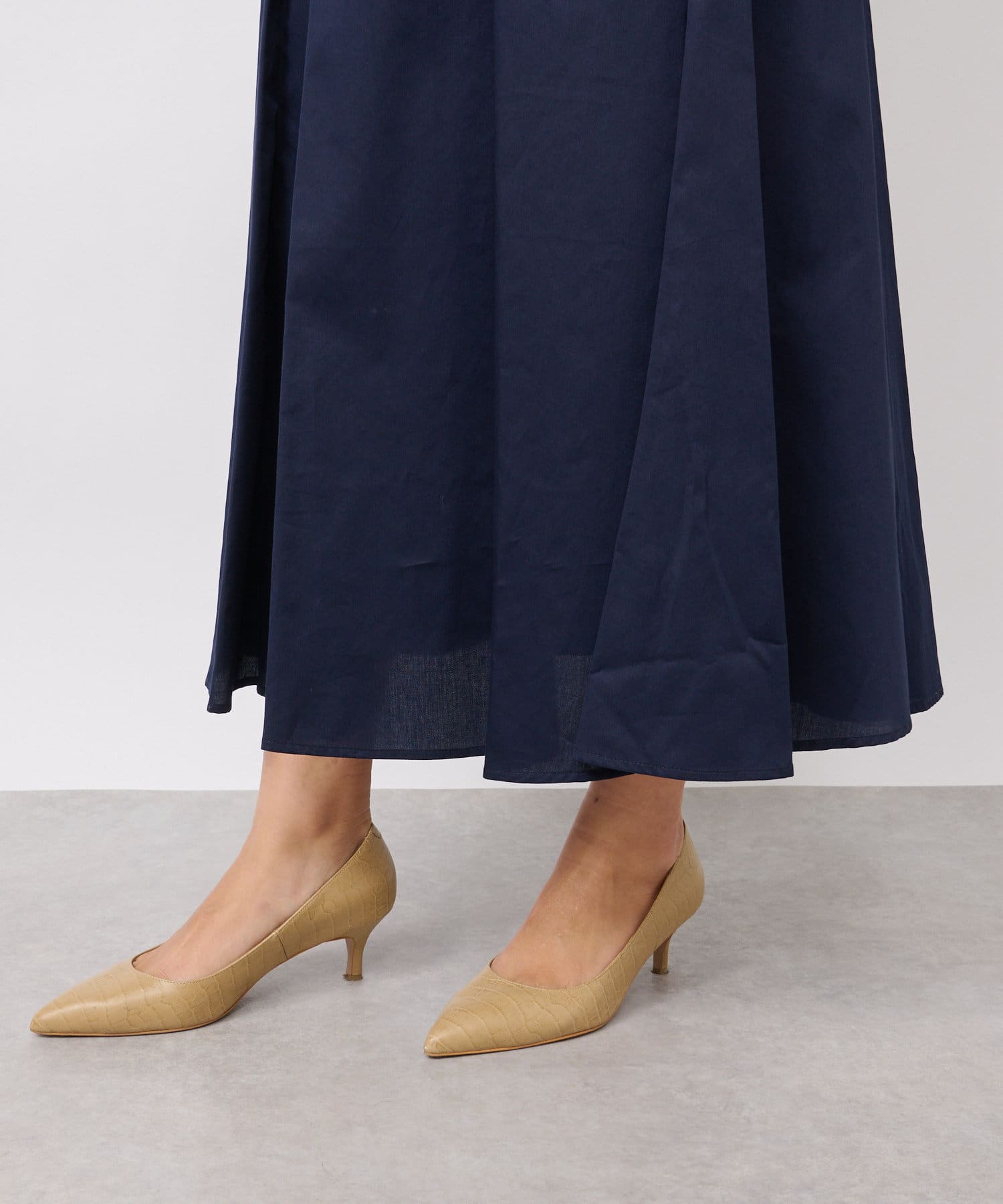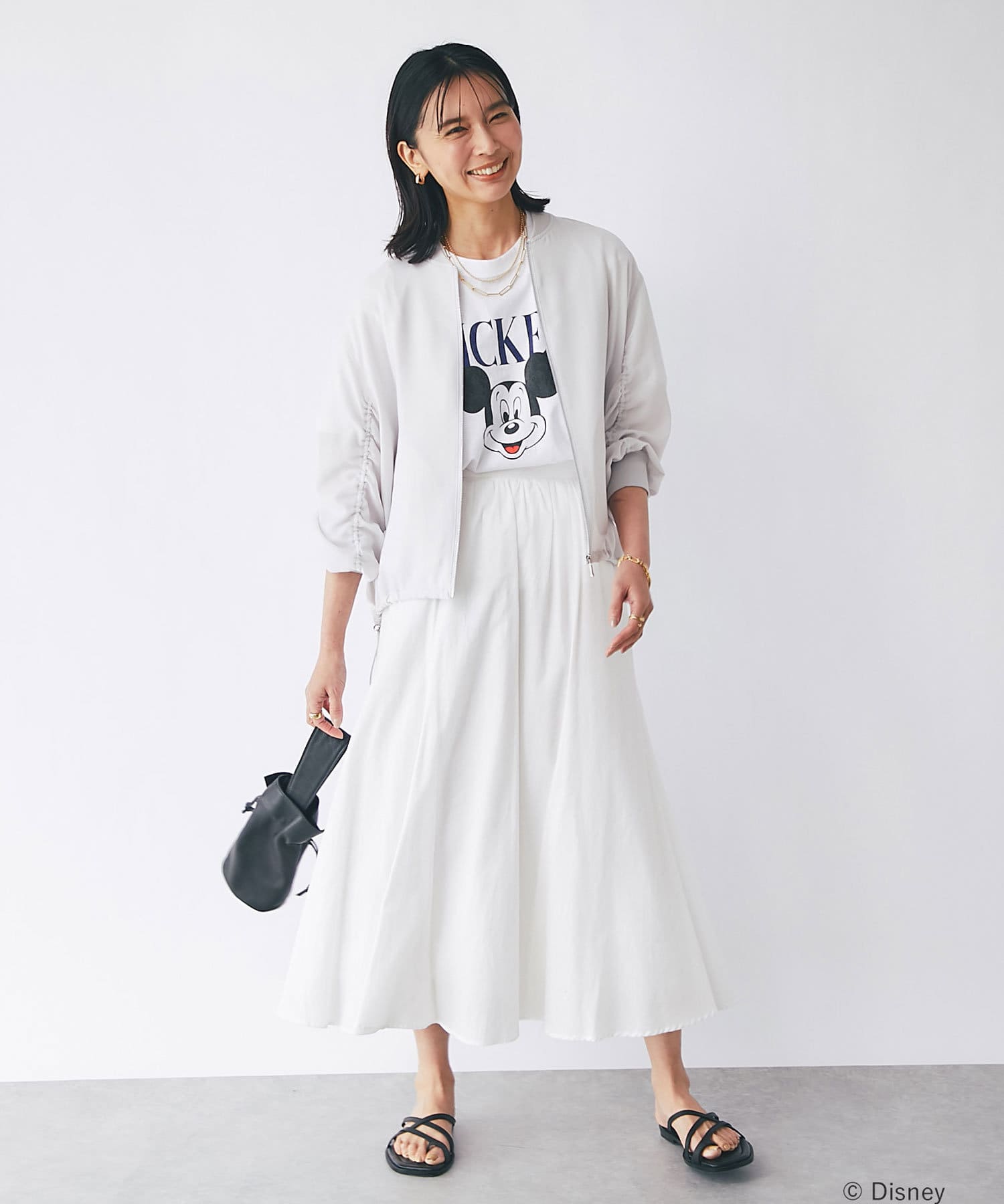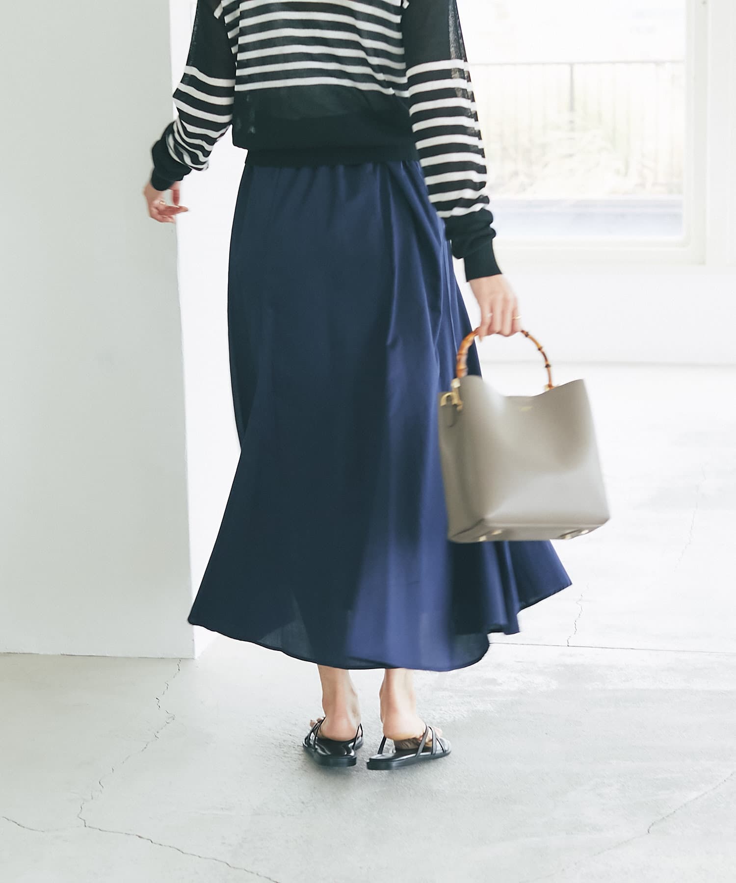 やや長めのスカート丈はローヒール・スニーカーとの相性も良く、リラックスして着たい日にもピッタリのアイテムです。