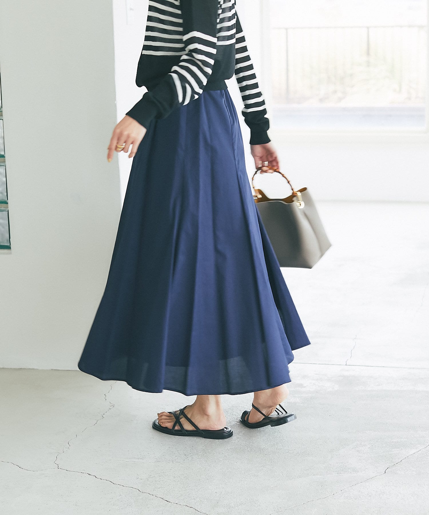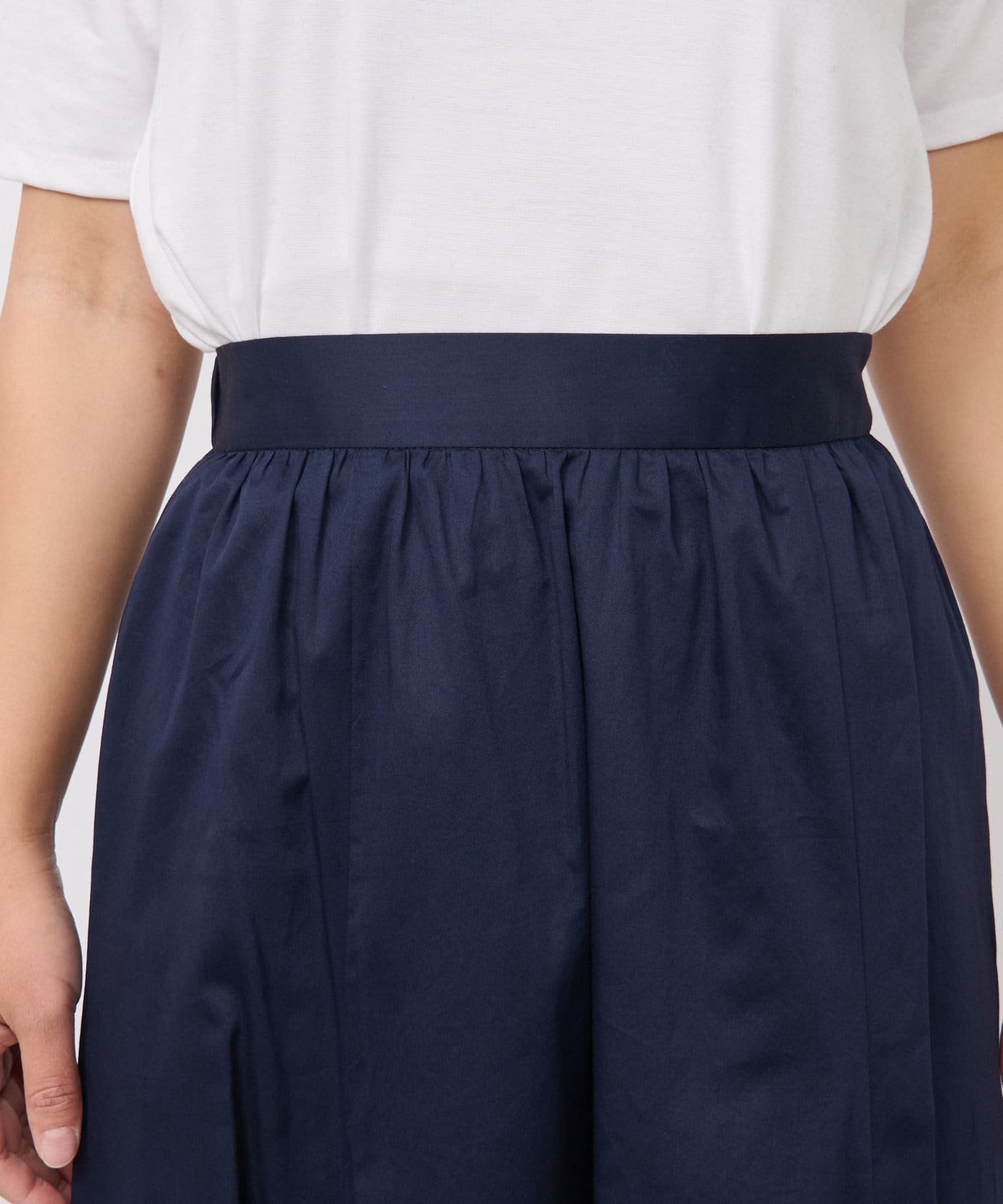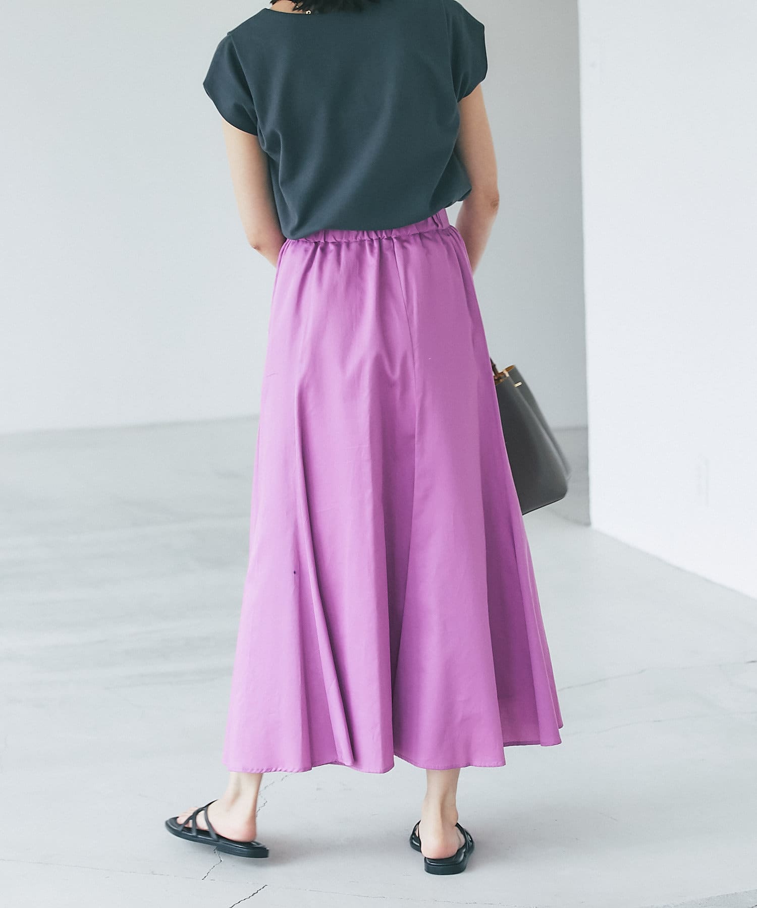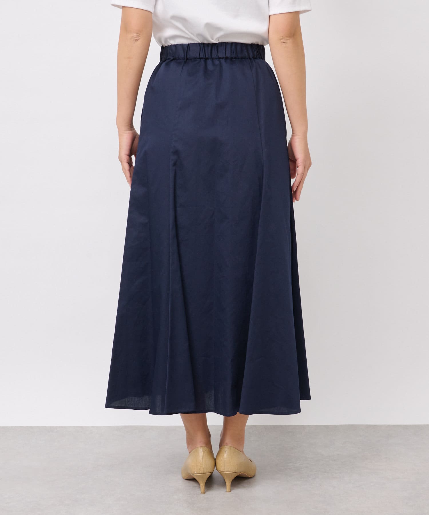 【ボリューム感が映える主役級アイテム】コットンサテンロングフレアスカート