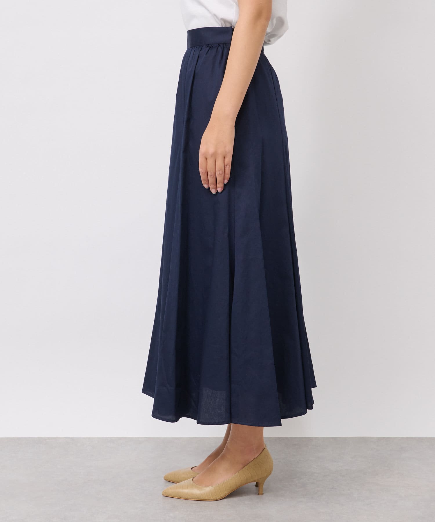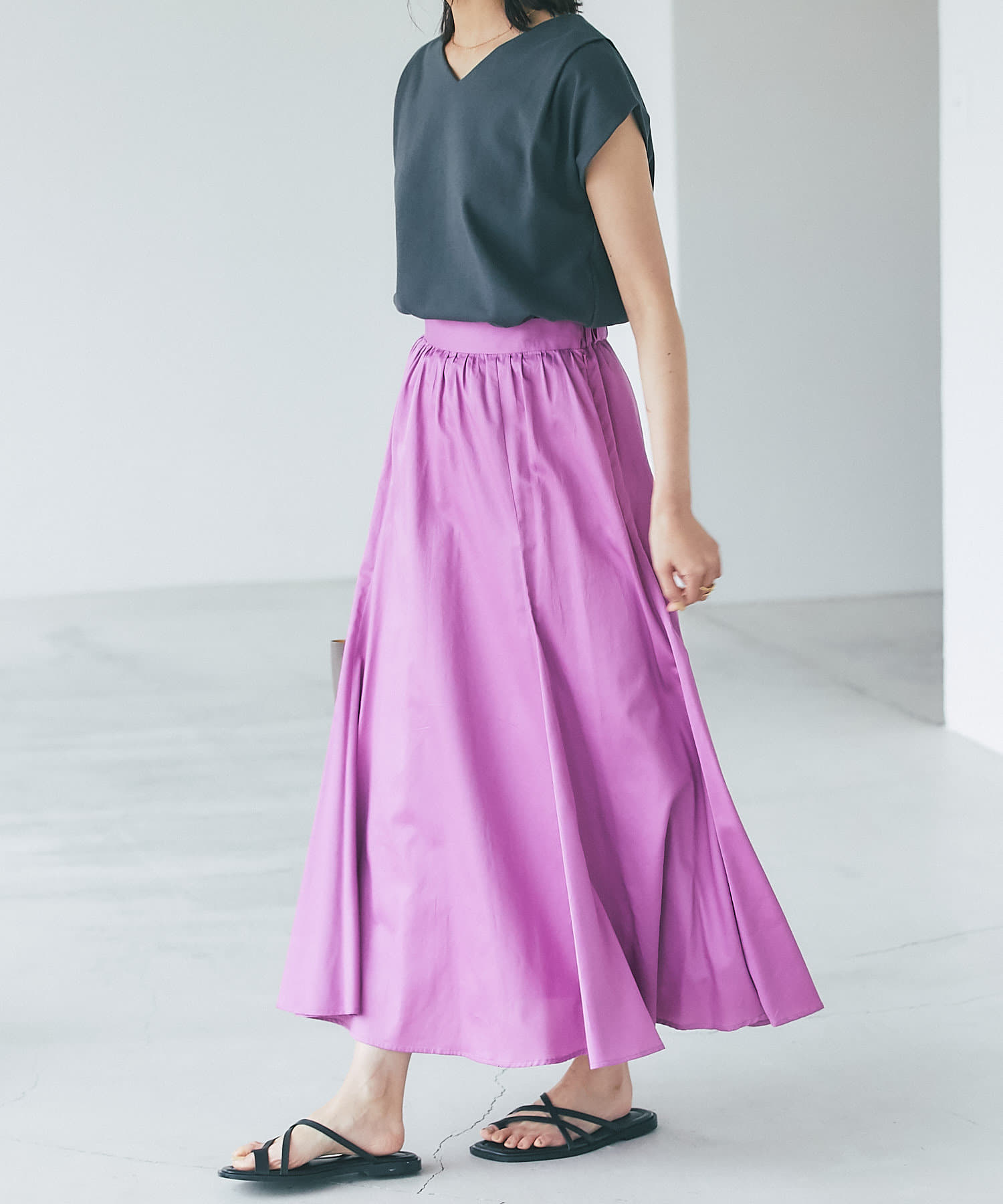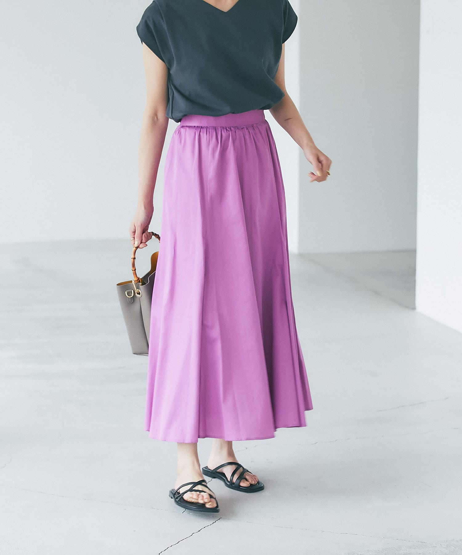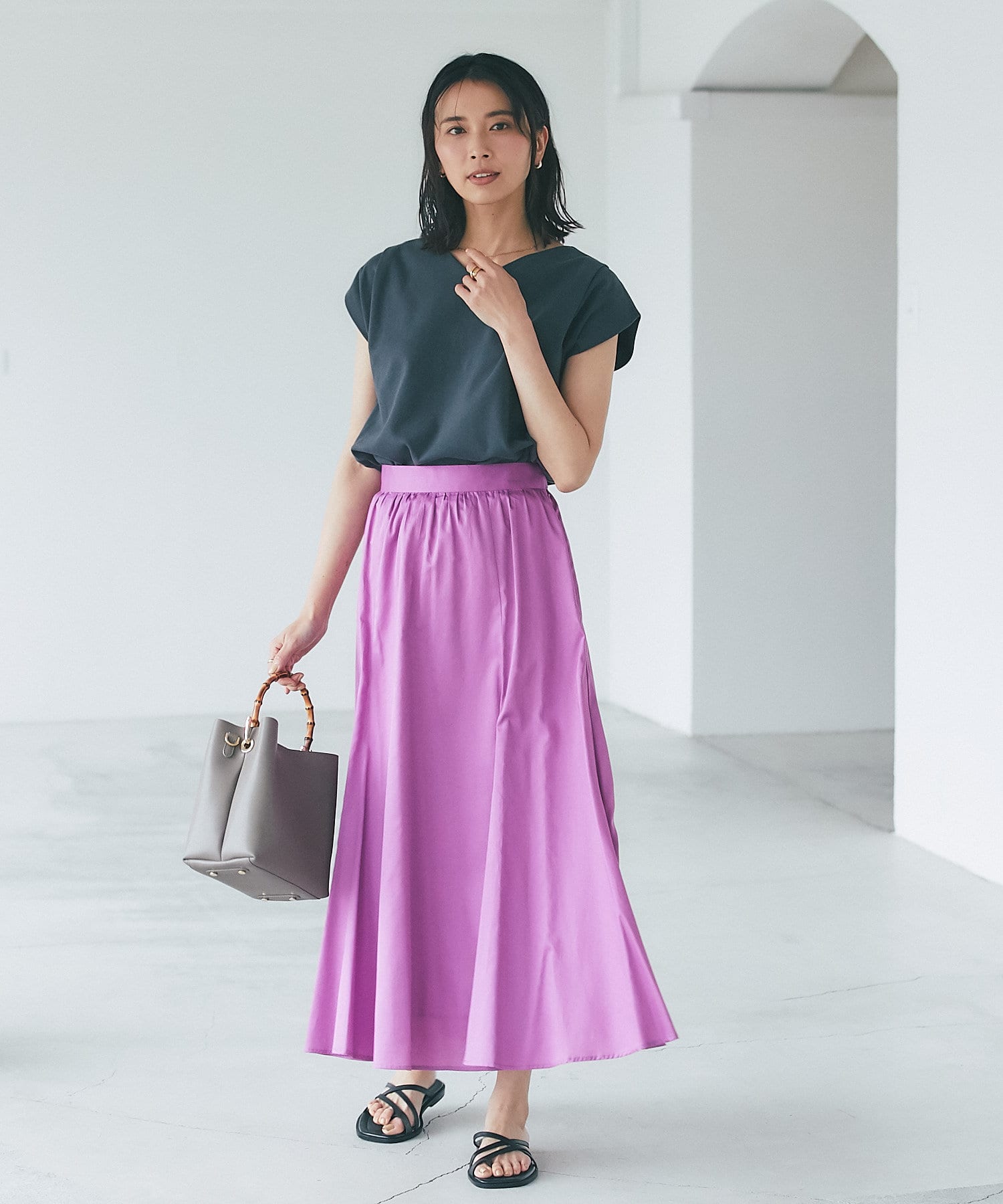 【ボリューム感が映える主役級アイテム】コットンサテンロングフレアスカート