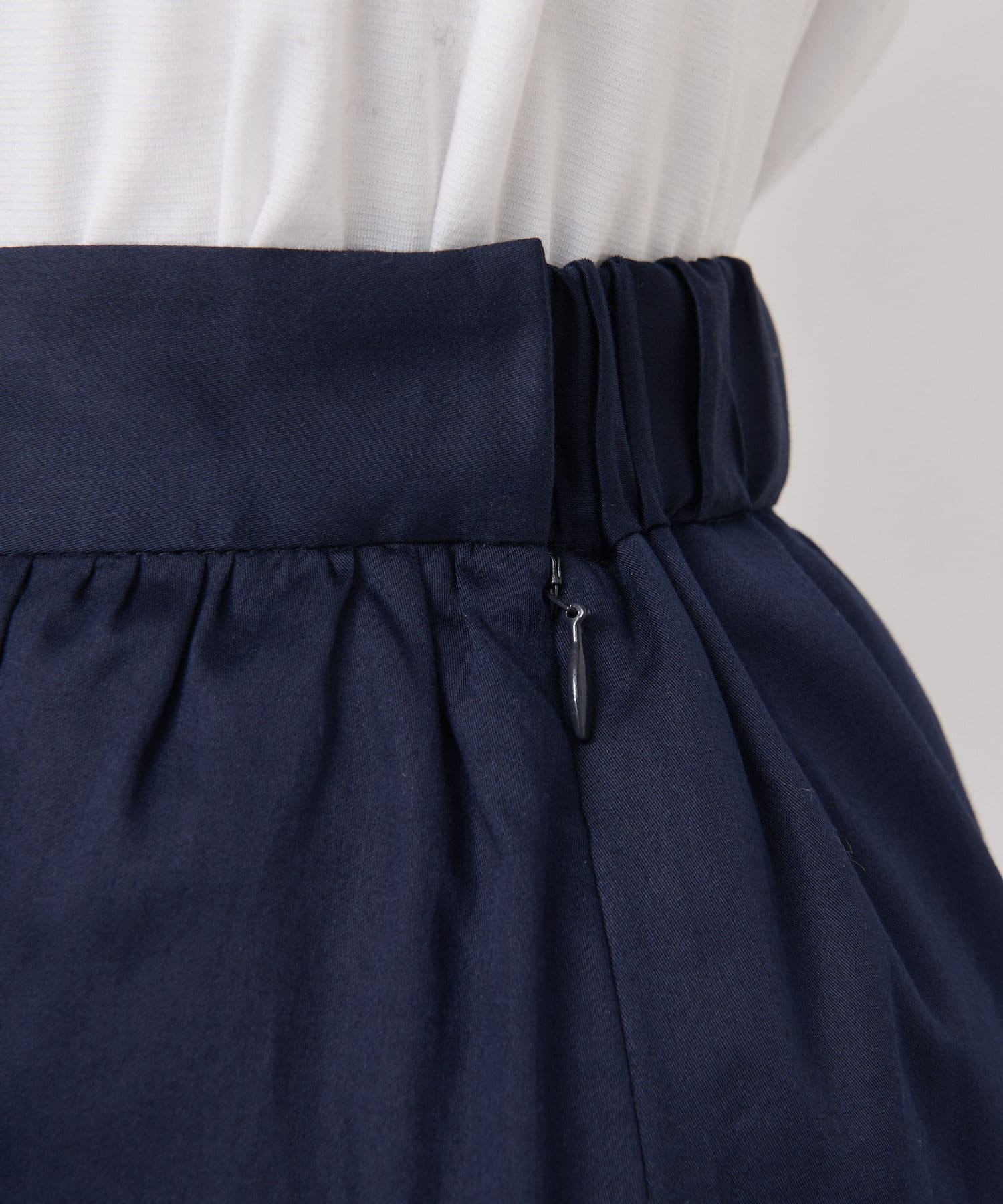 ウエスト部分は後ろ身をゴム仕様にすることで楽ちんキレイを実現。トップスをINしたスタイルもすっきりキマります。
