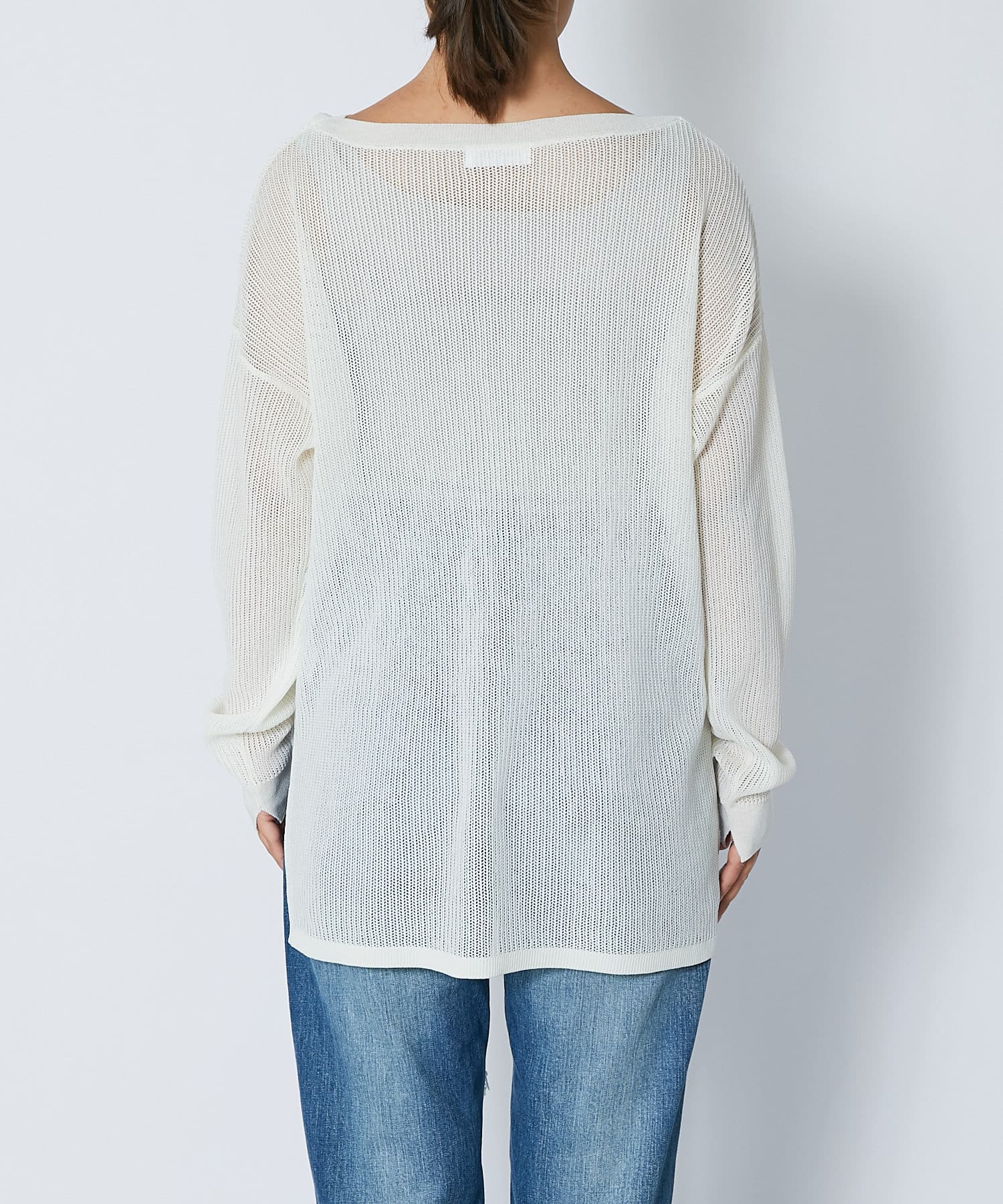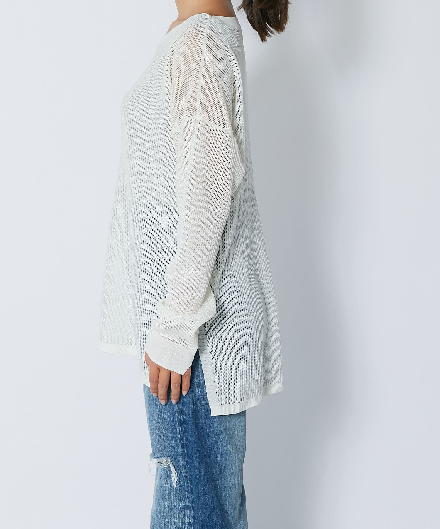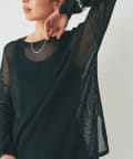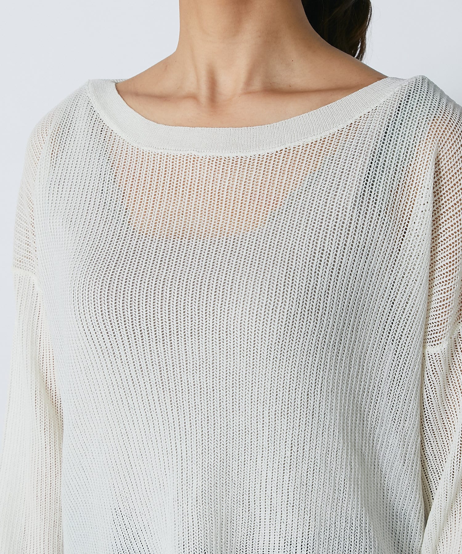 【ナチュラルな透け感】メッシュボートネックニット