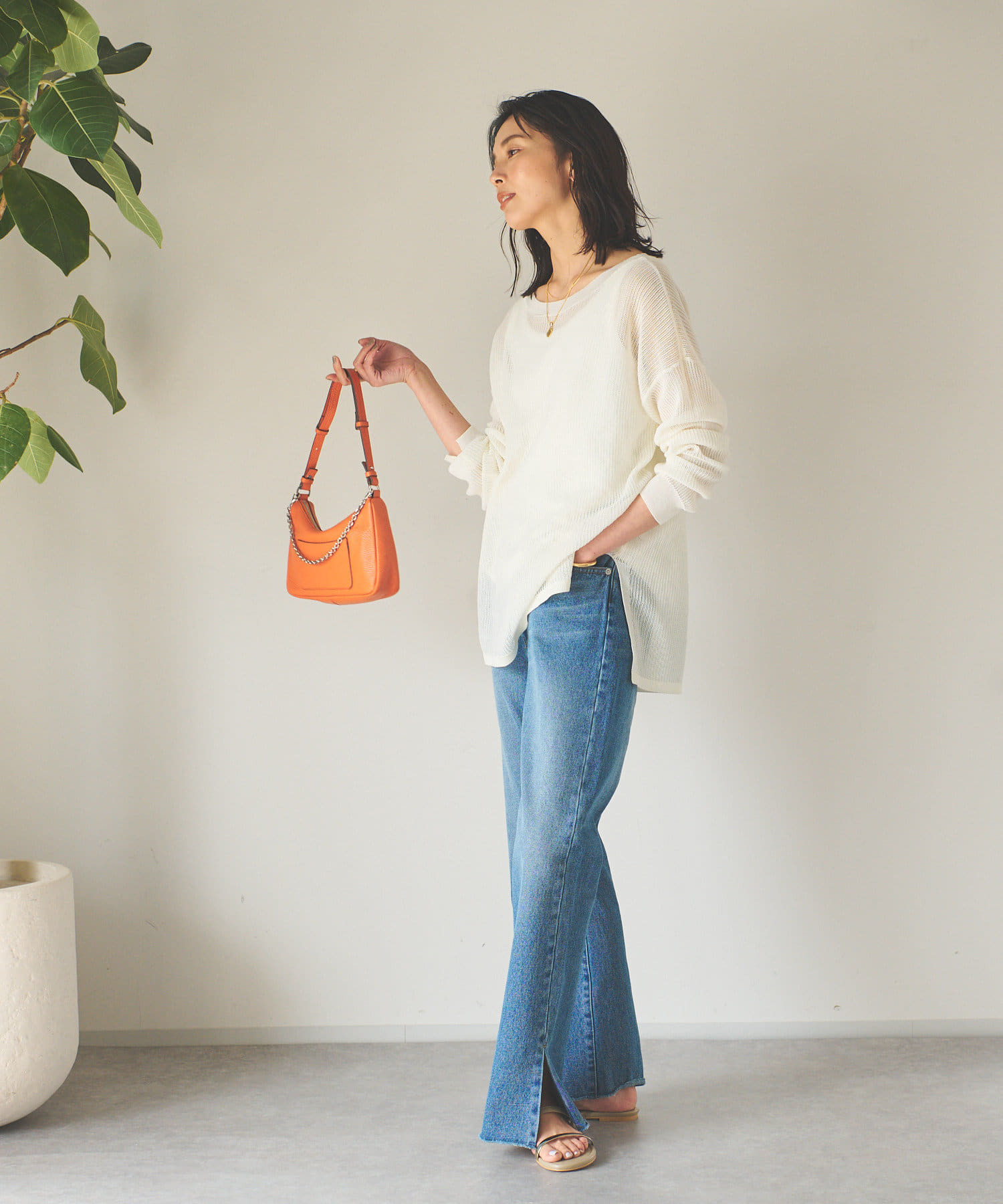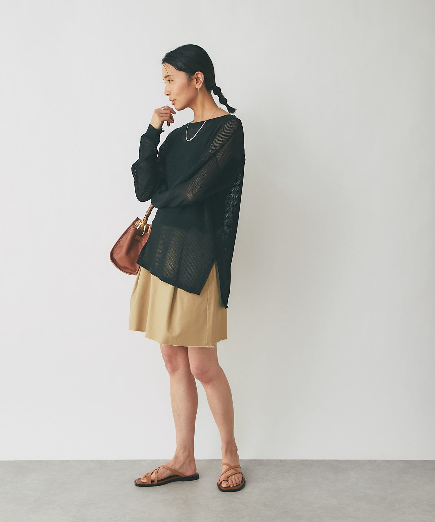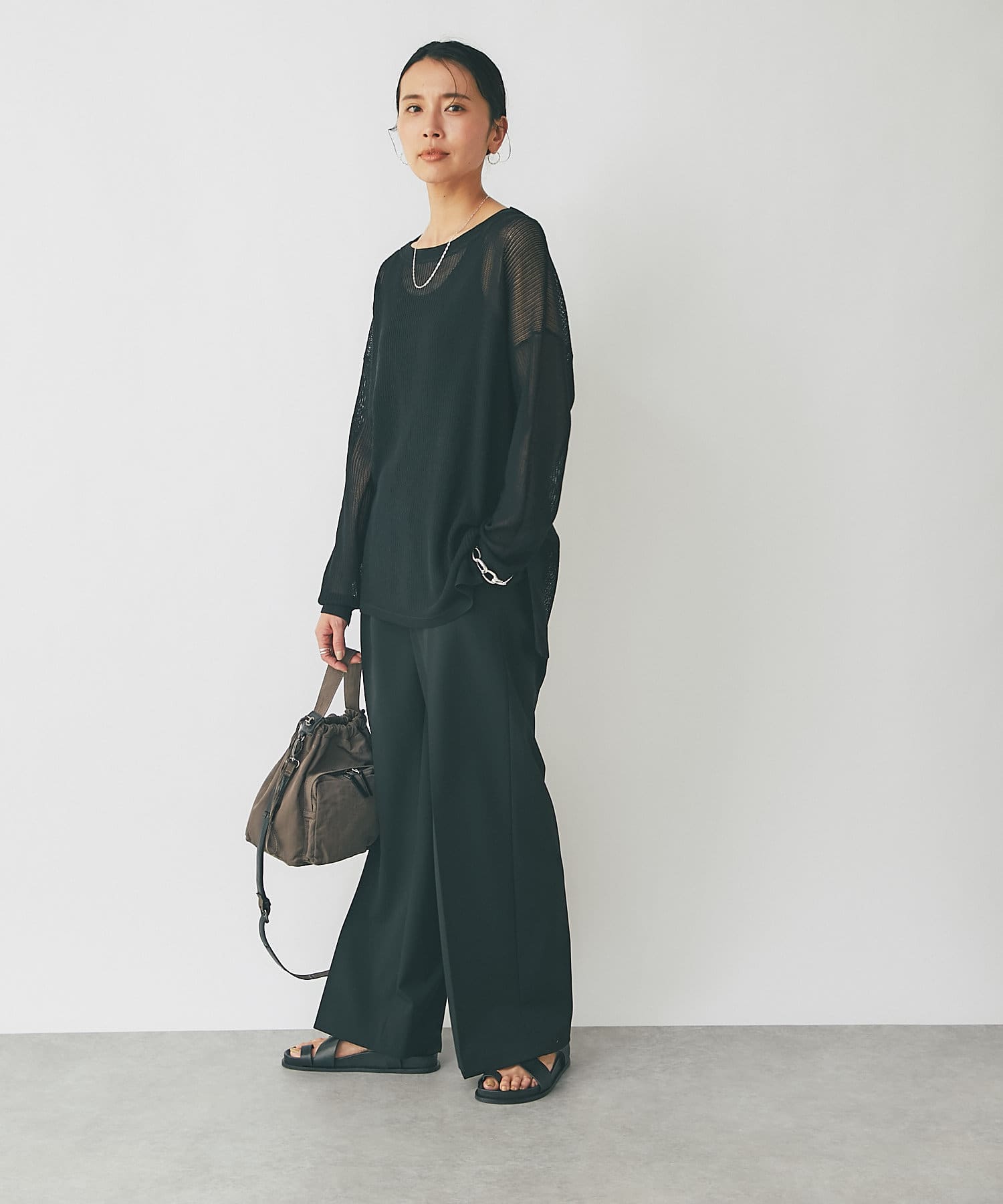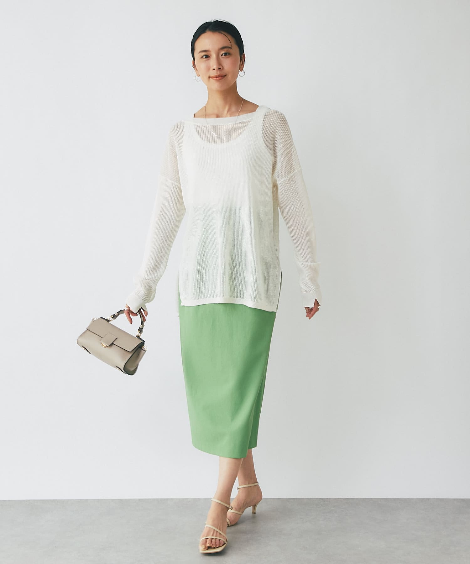 春先はロンTee、夏にはタンクトップやブラトップをレイヤードすればロングシーズン着回しの効くオシャレ見えするおすすめニット。