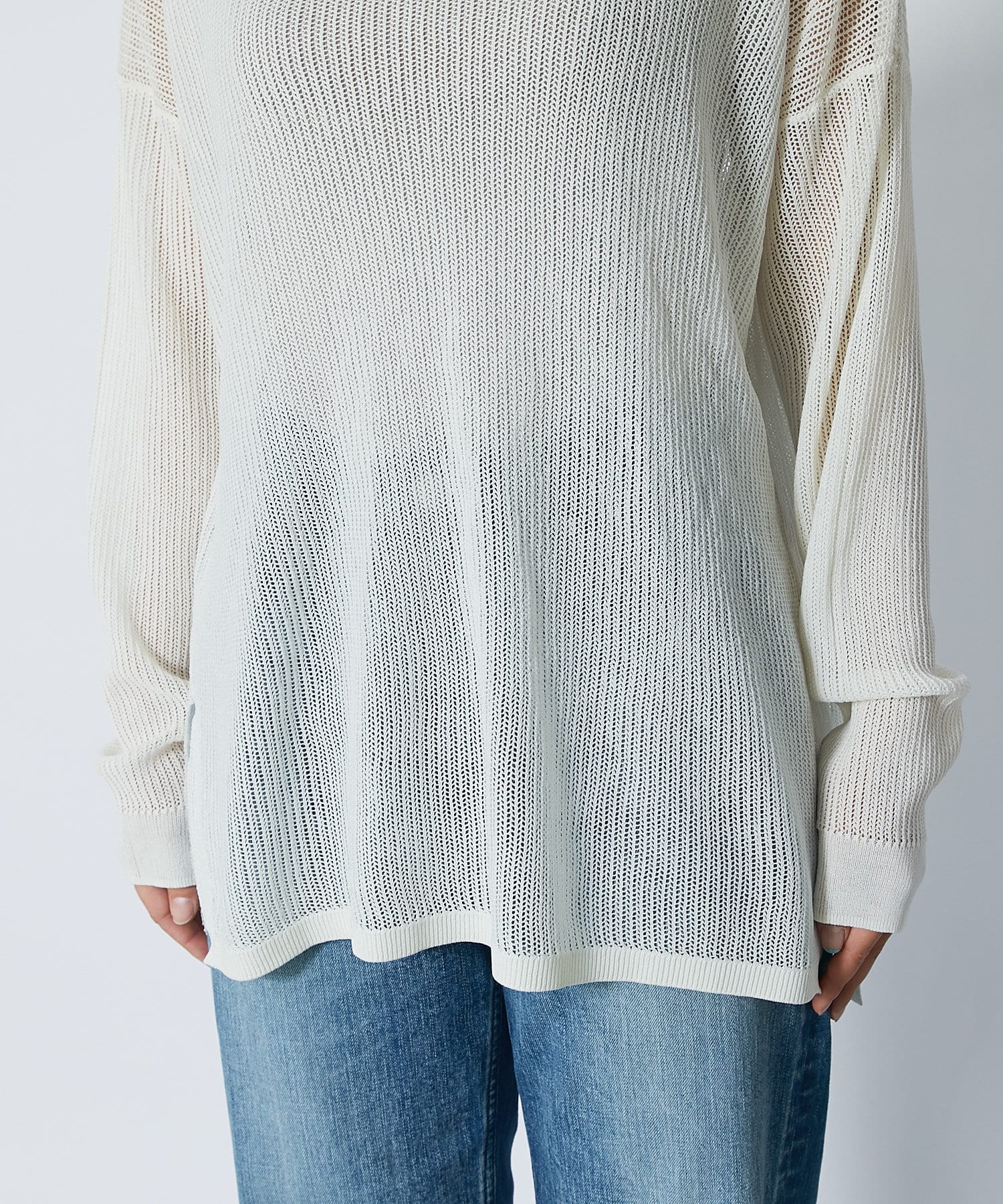 ハイゲージのメッシュ編みの透け感がオシャレなプルオーバー。