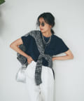 ⇒透け感を活かしてお気に入りのタンクトップやTシャツとレイヤードしていただくと、今っぽいスタイルが簡単に完成します。