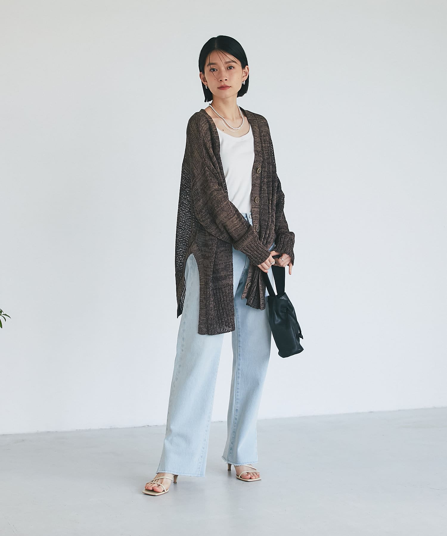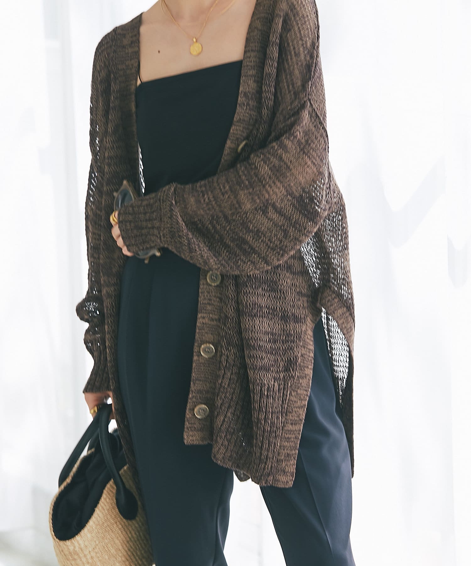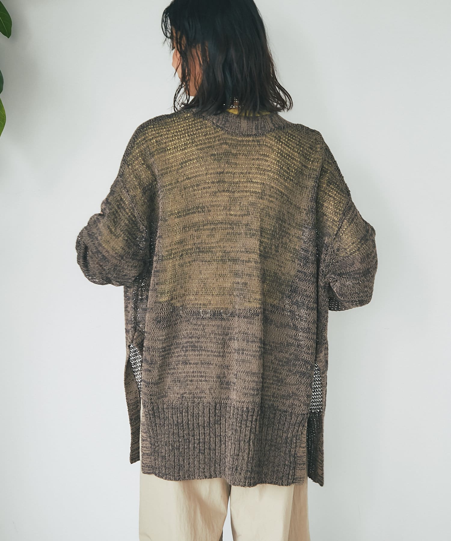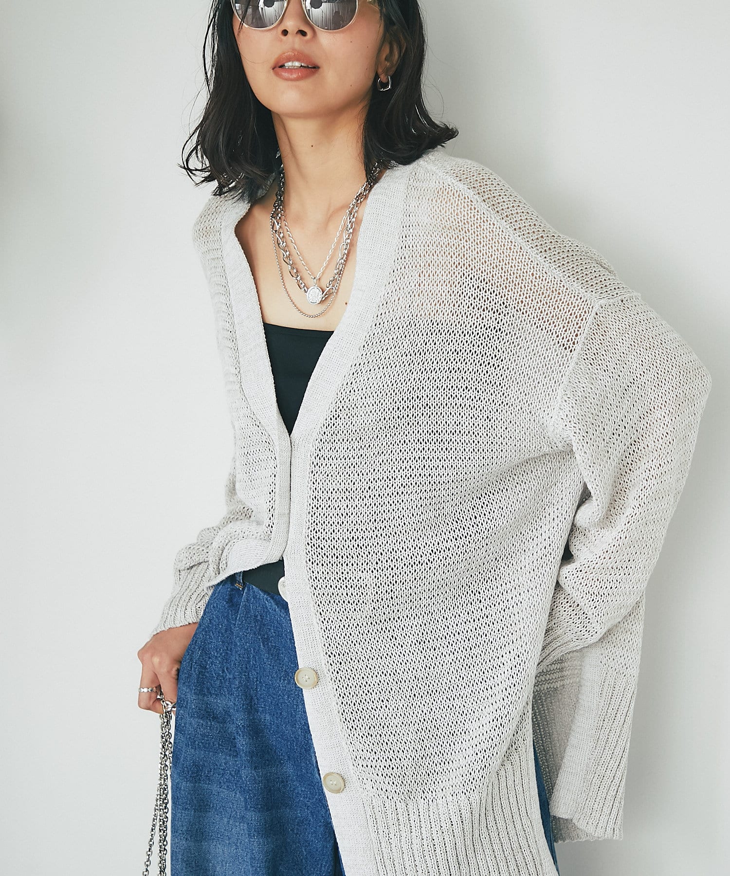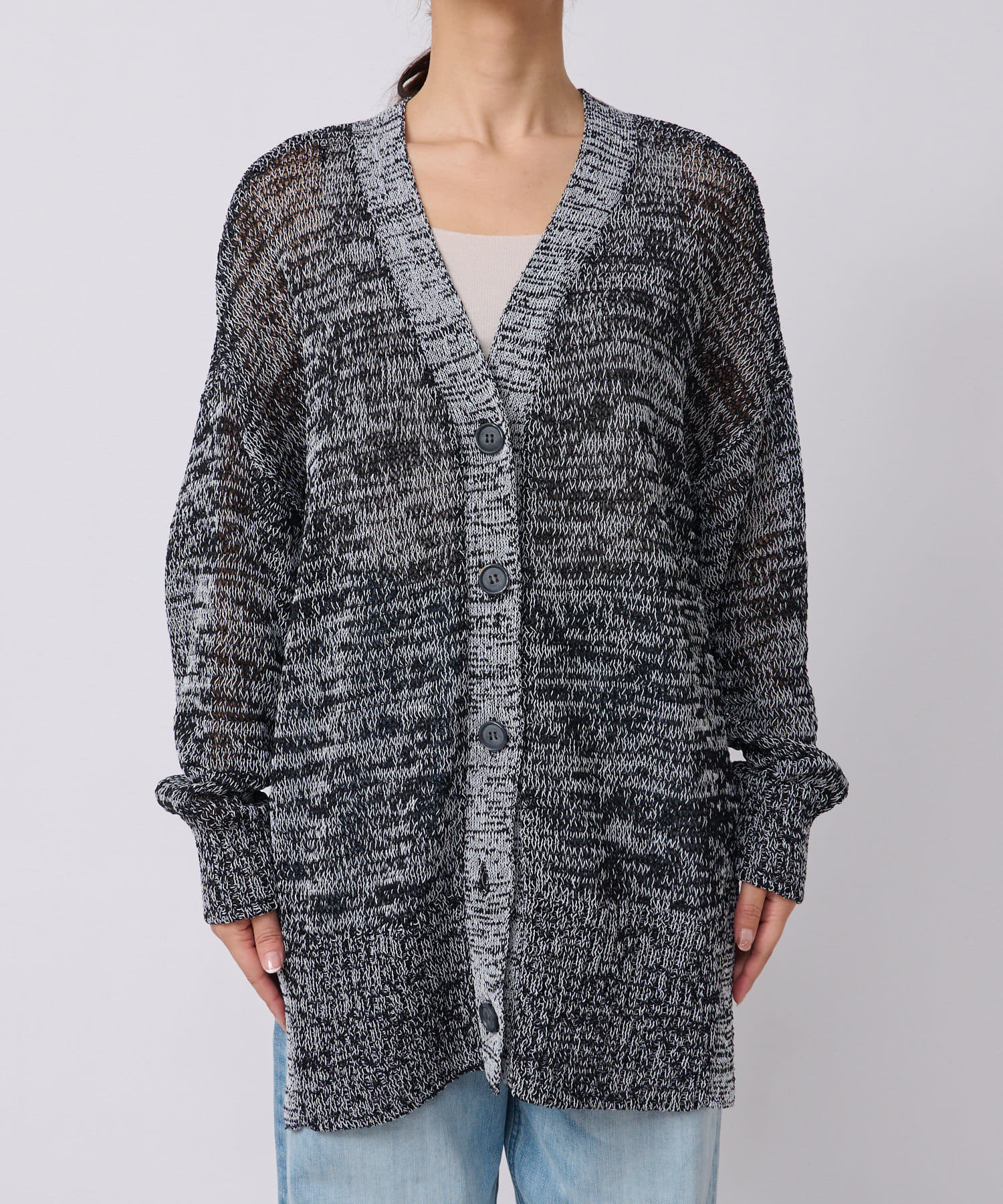 透け感を気にせず、通常のニットカーディガンを着用する際と同じようにコーディネートしていただいても素敵に着こなしていただけます。