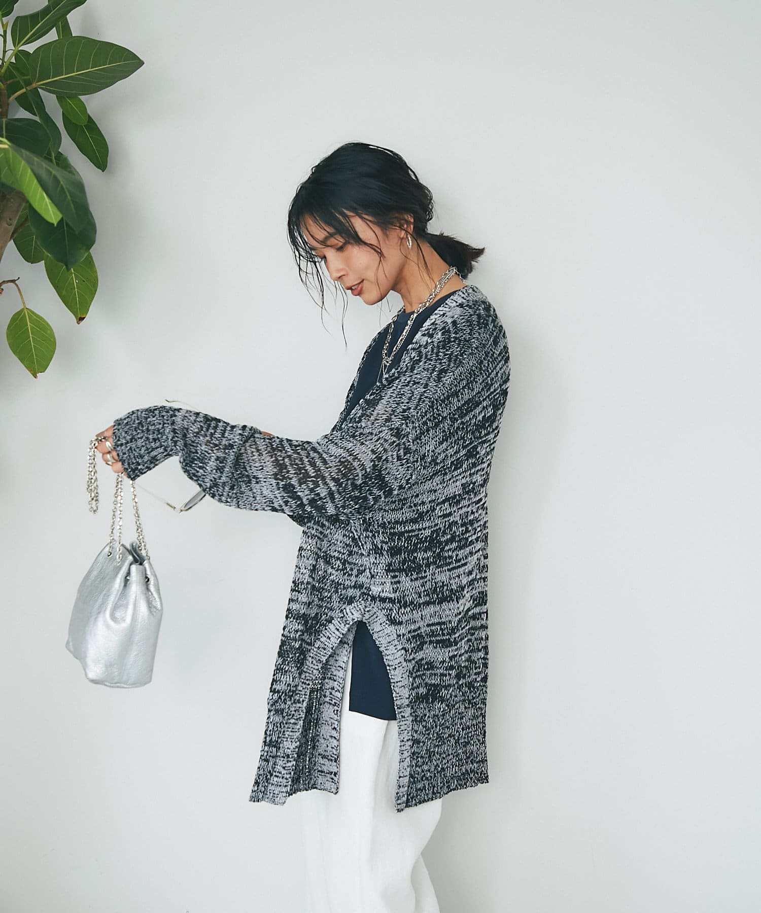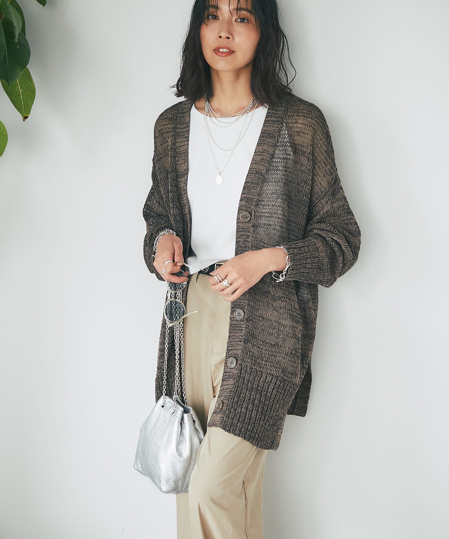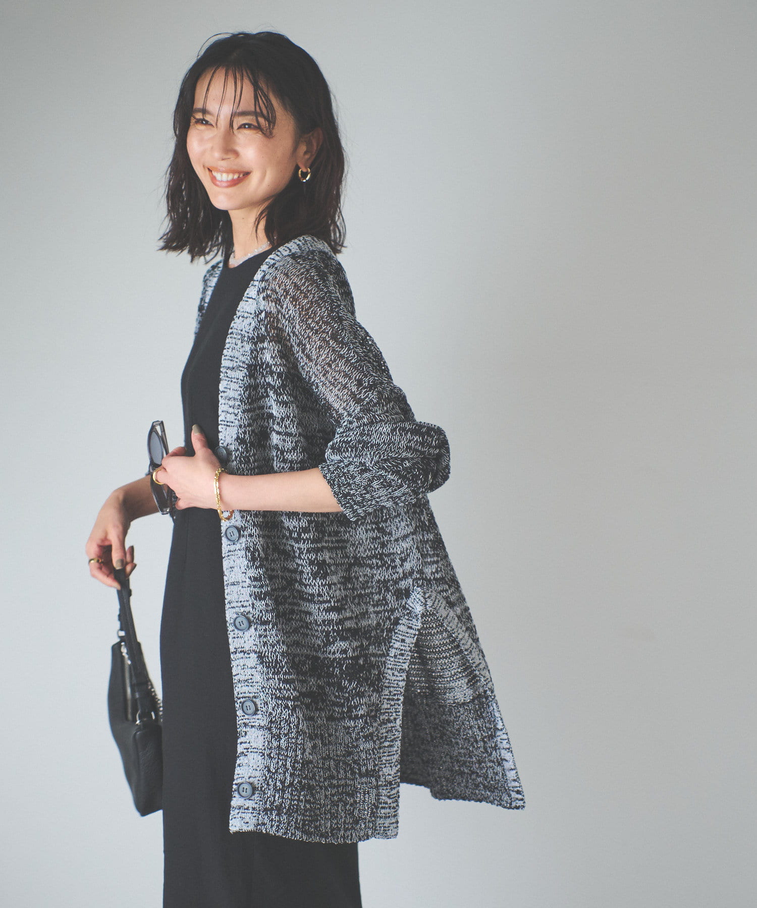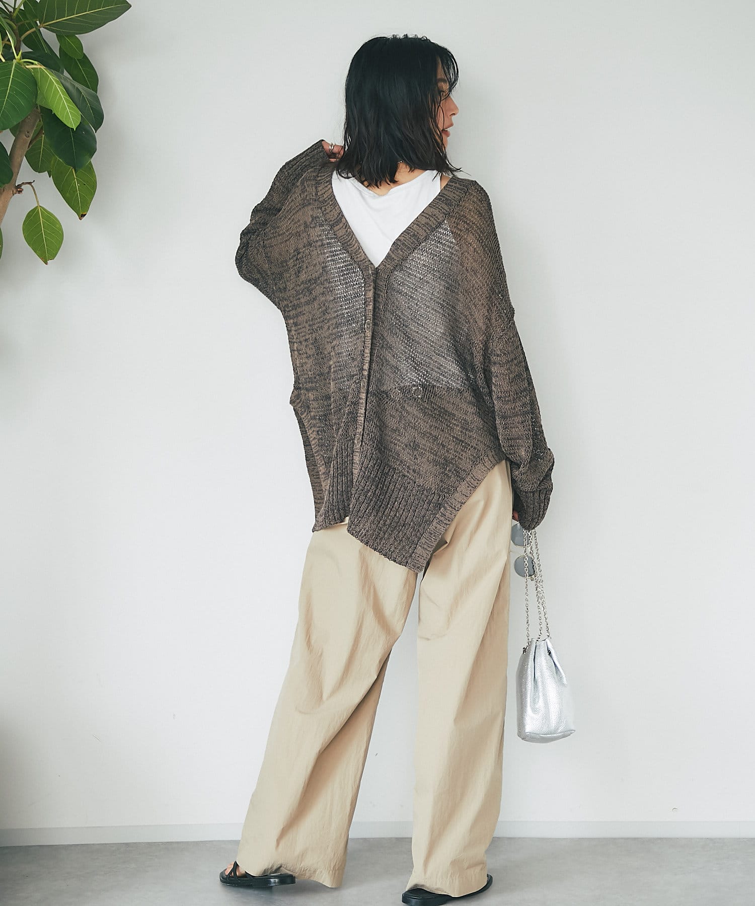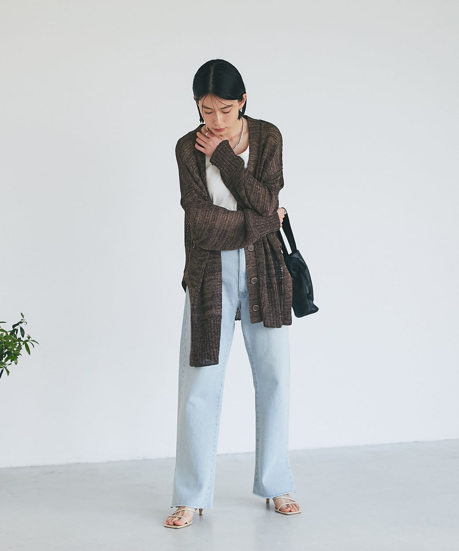 透け感を気にせず、通常のニットカーディガンを着用する際と同じようにコーディネートしていただいても素敵に着こなしていただけます。