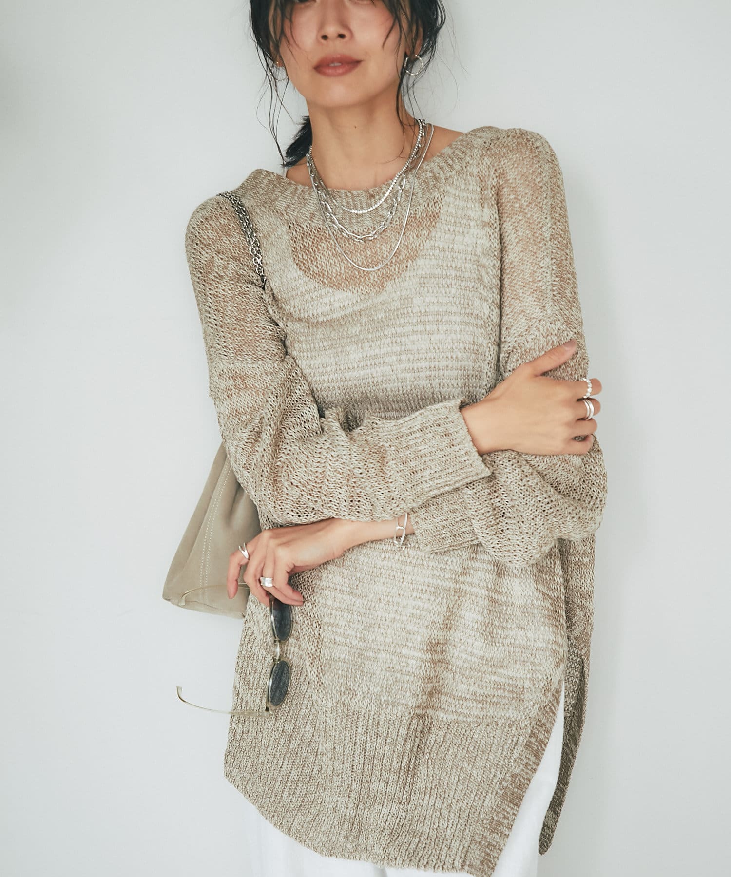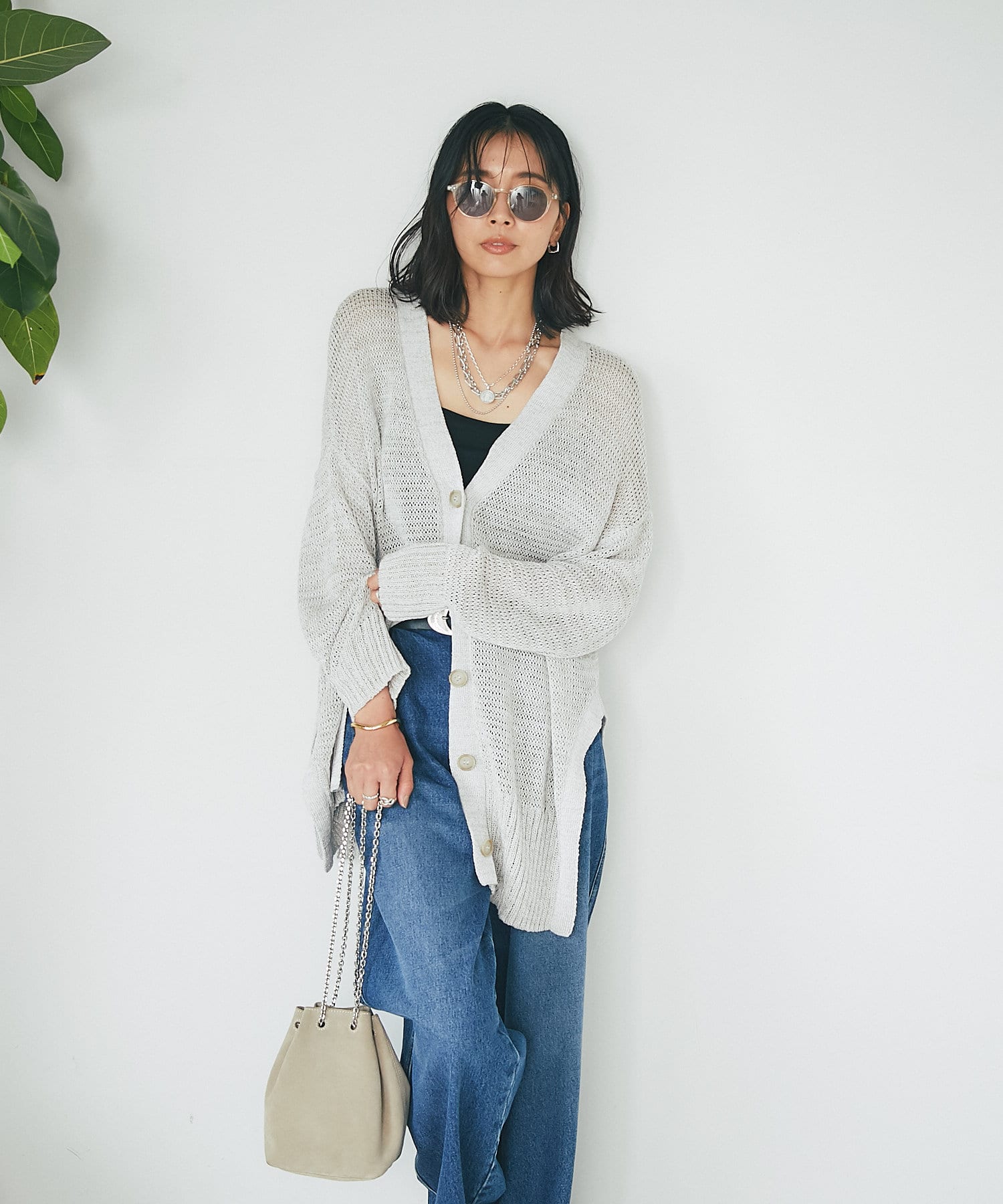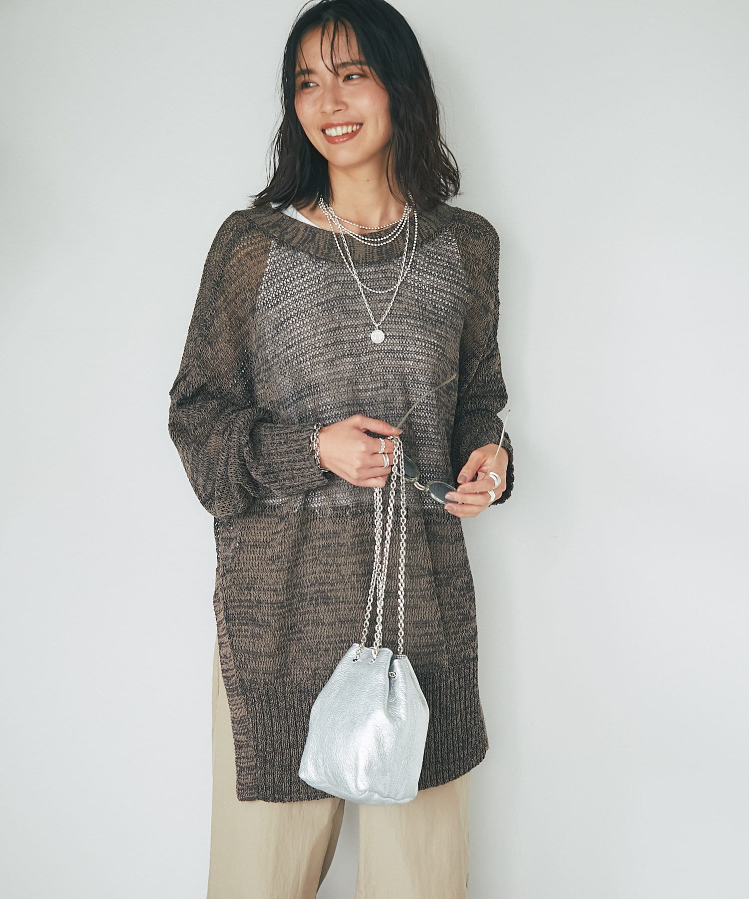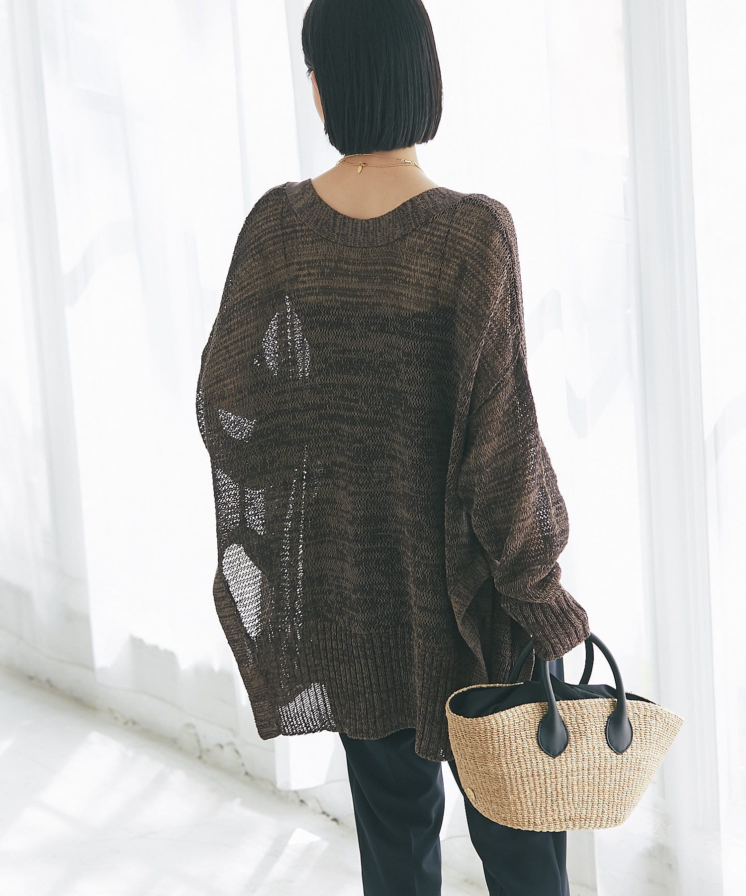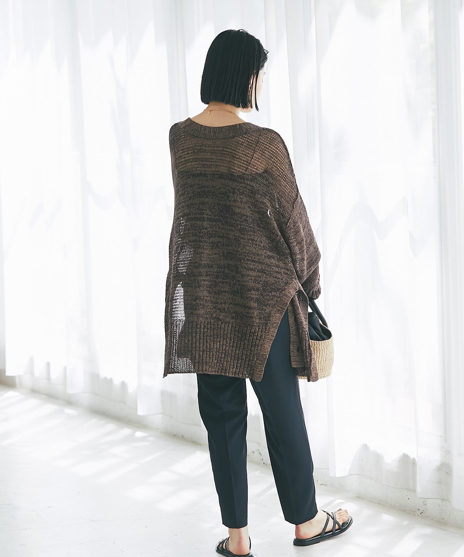 透け感を気にせず、通常のニットカーディガンを着用する際と同じようにコーディネートしていただいても素敵に着こなしていただけます。