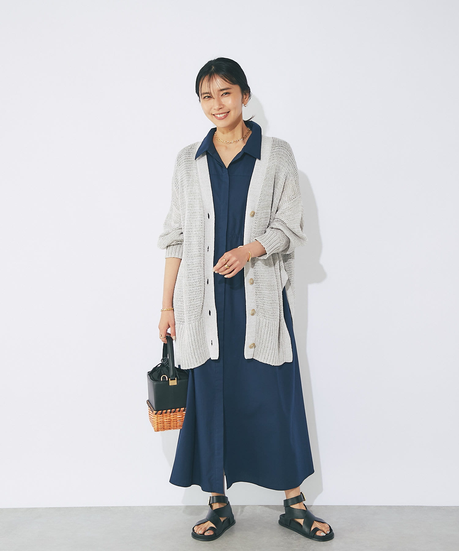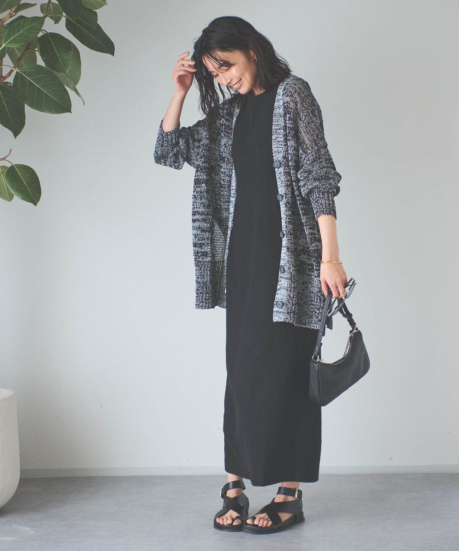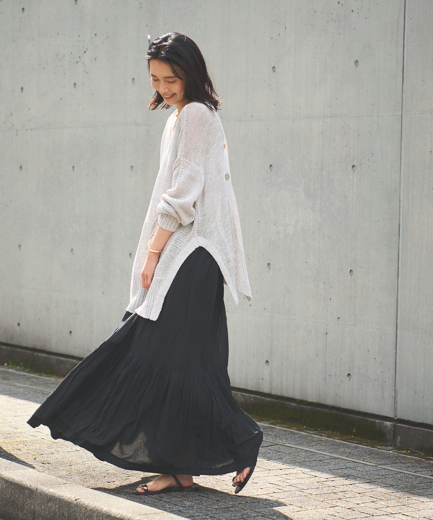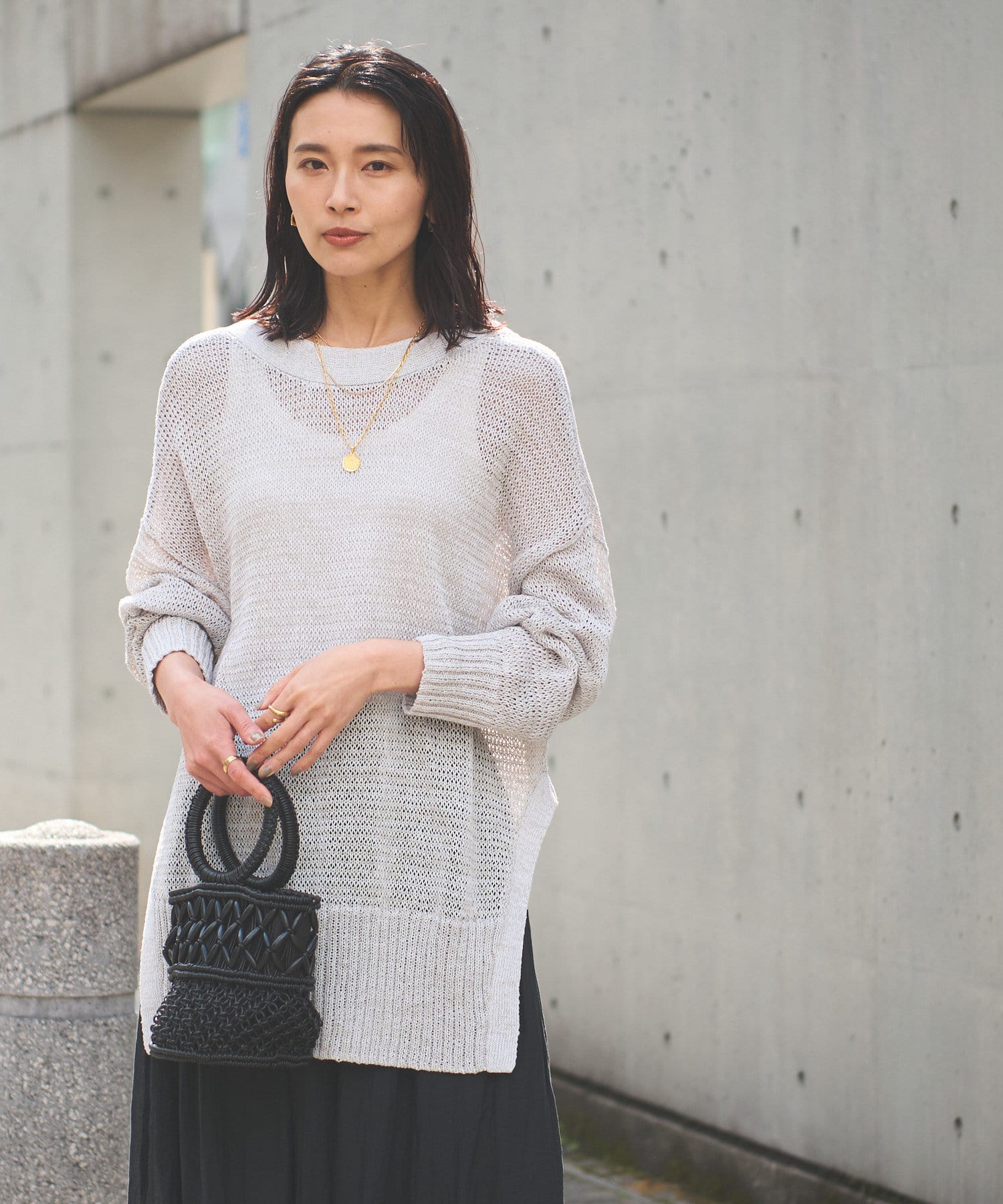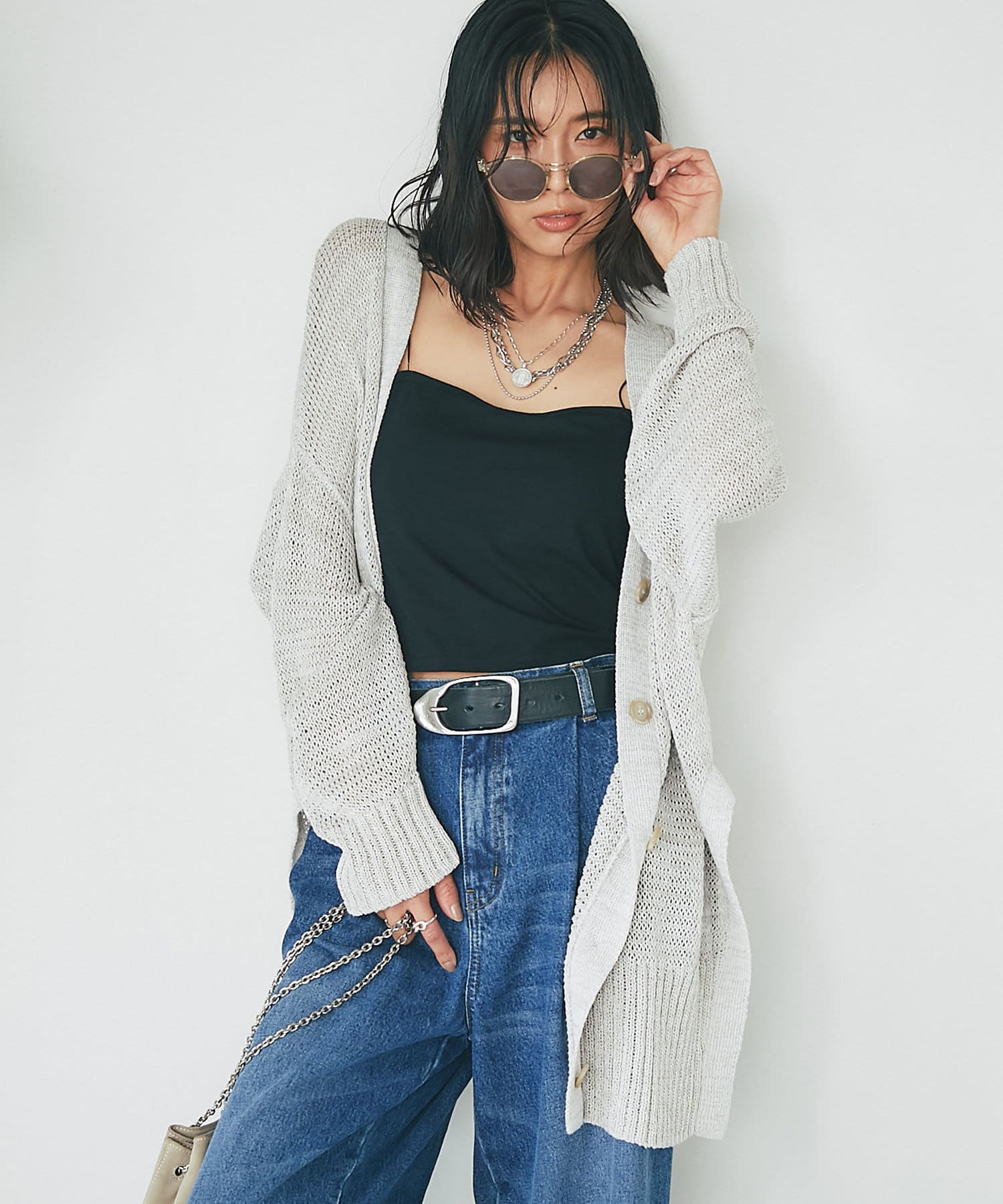 透け感を気にせず、通常のニットカーディガンを着用する際と同じようにコーディネートしていただいても素敵に着こなしていただけます。