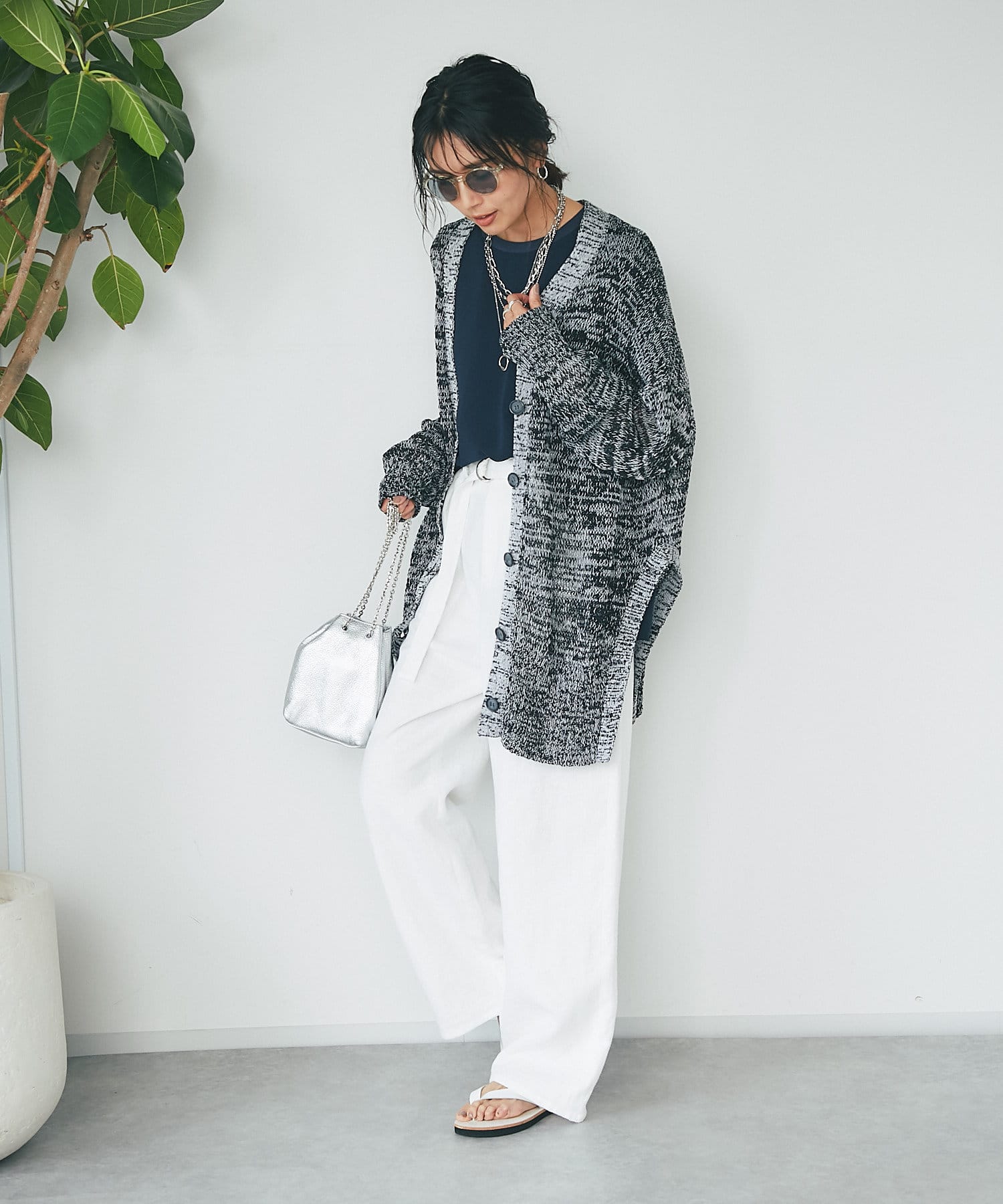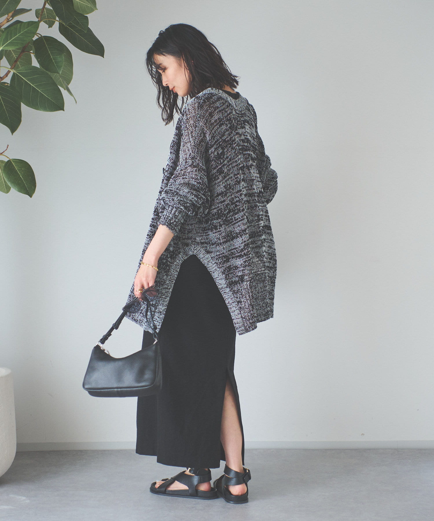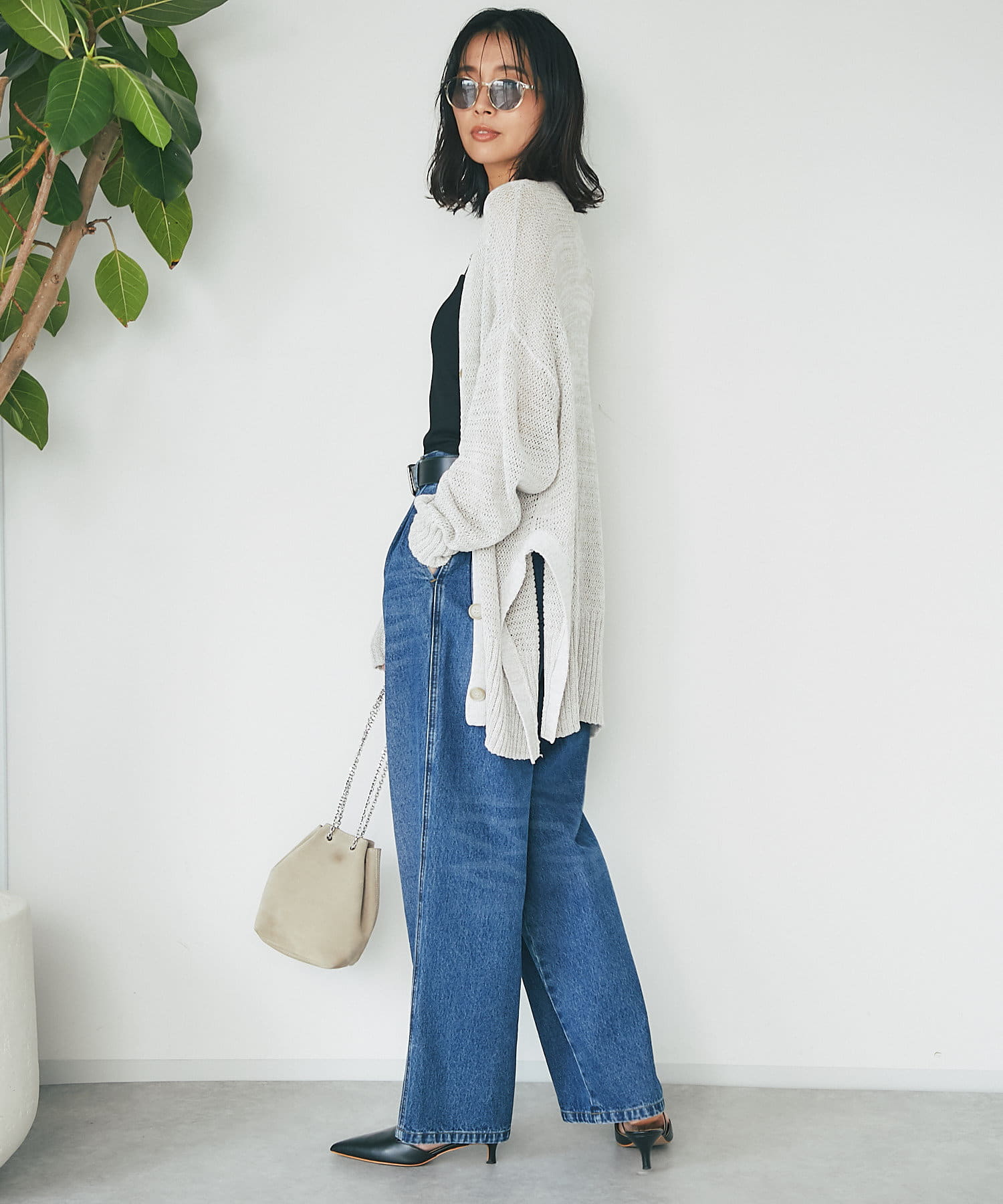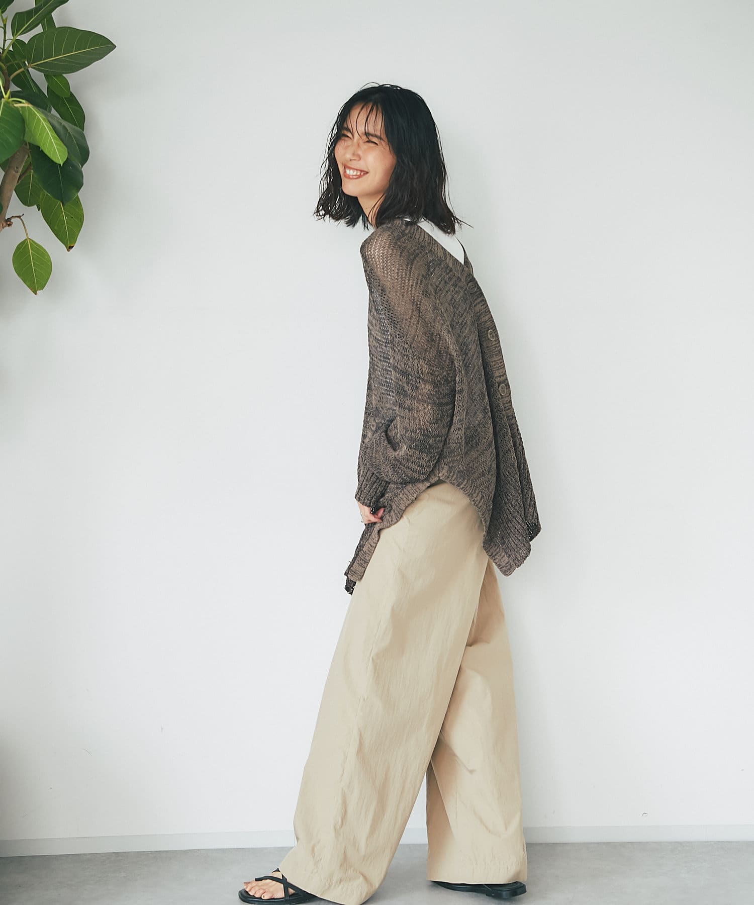 透け感を気にせず、通常のニットカーディガンを着用する際と同じようにコーディネートしていただいても素敵に着こなしていただけます。