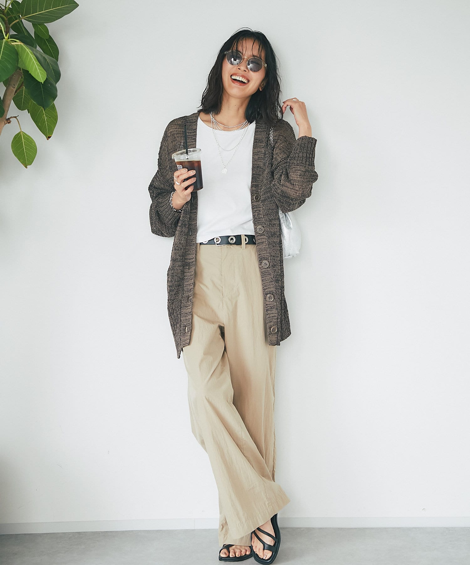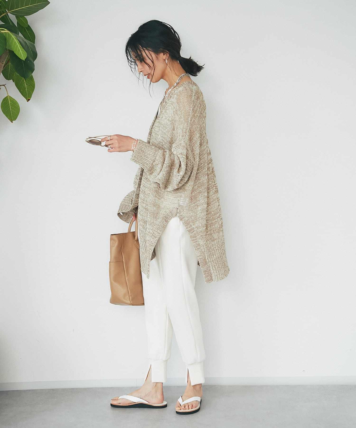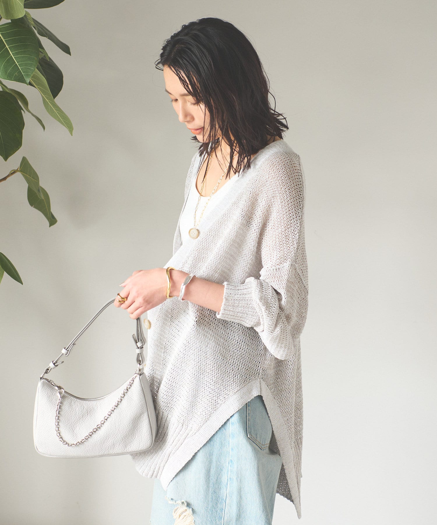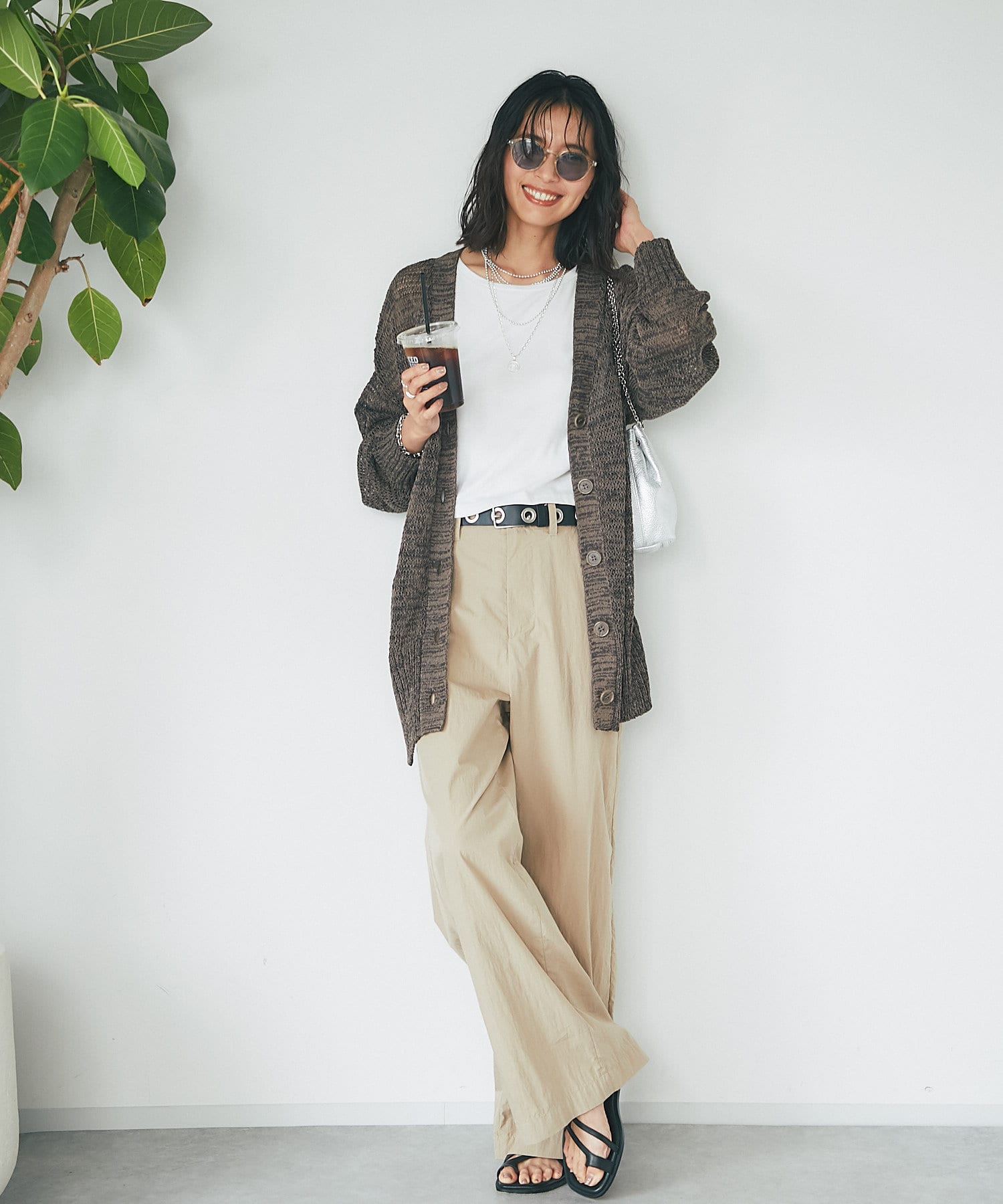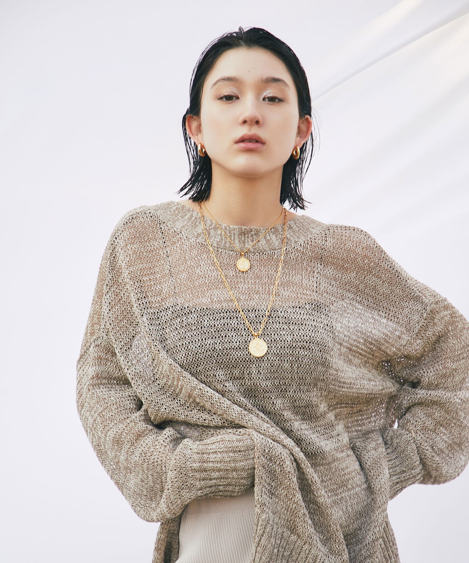 透け感を気にせず、通常のニットカーディガンを着用する際と同じようにコーディネートしていただいても素敵に着こなしていただけます。