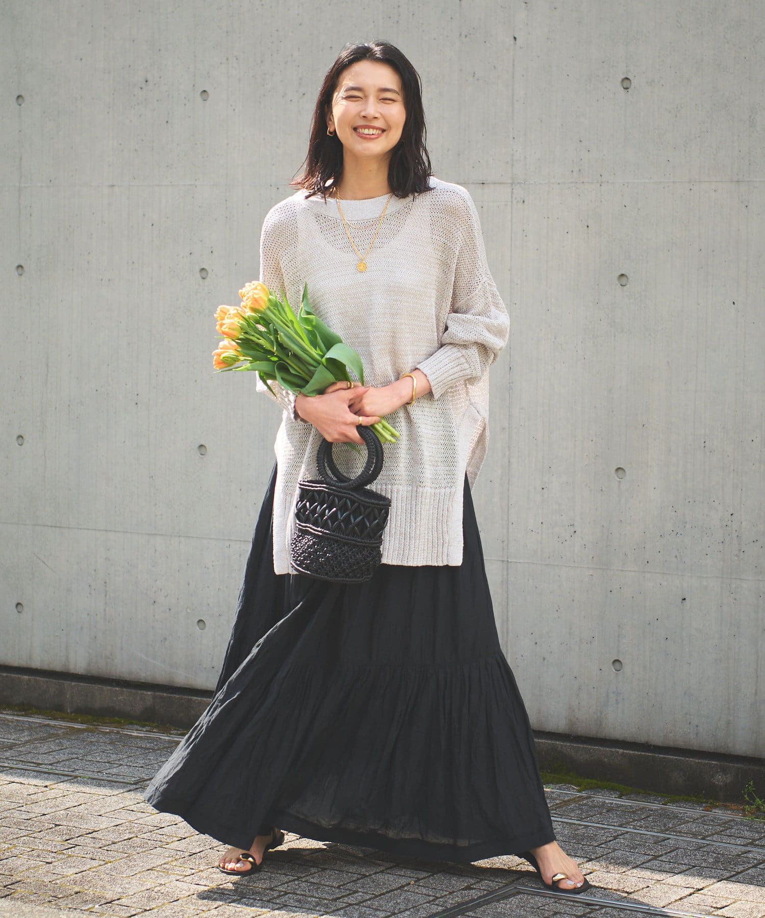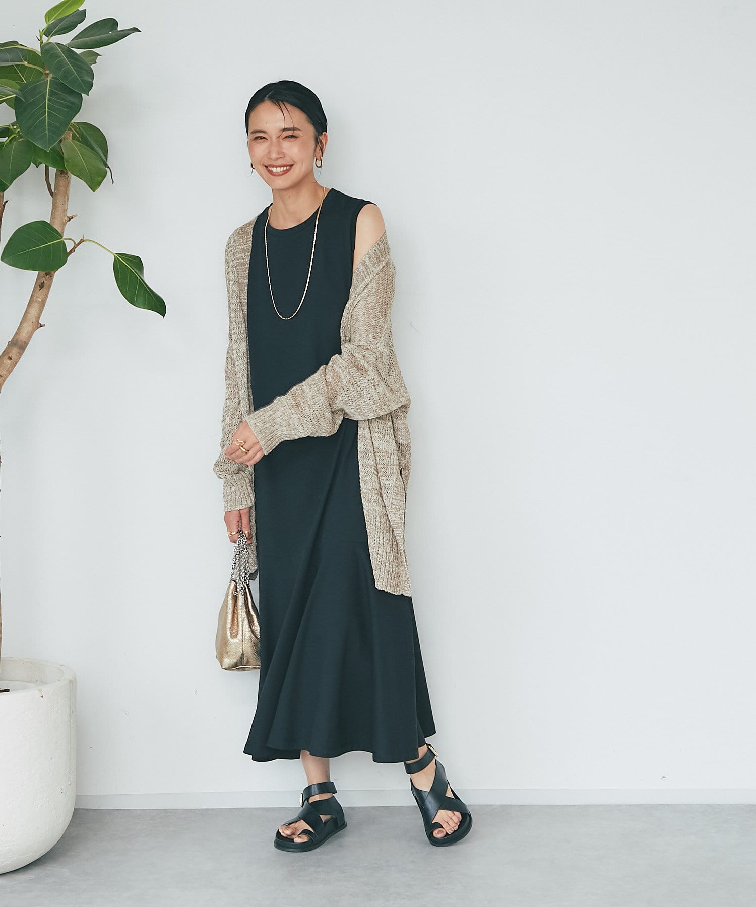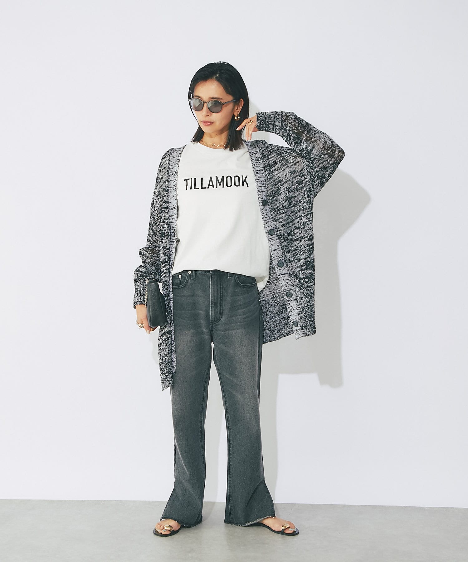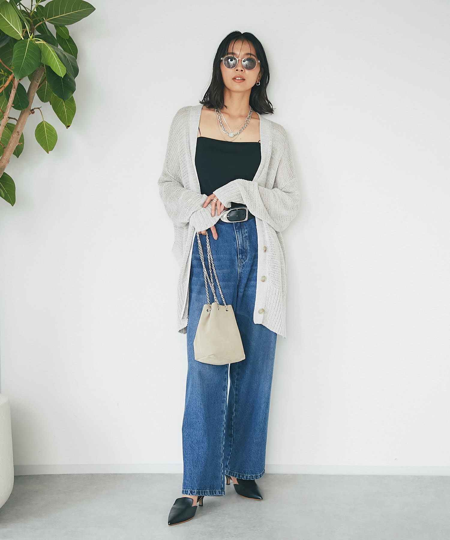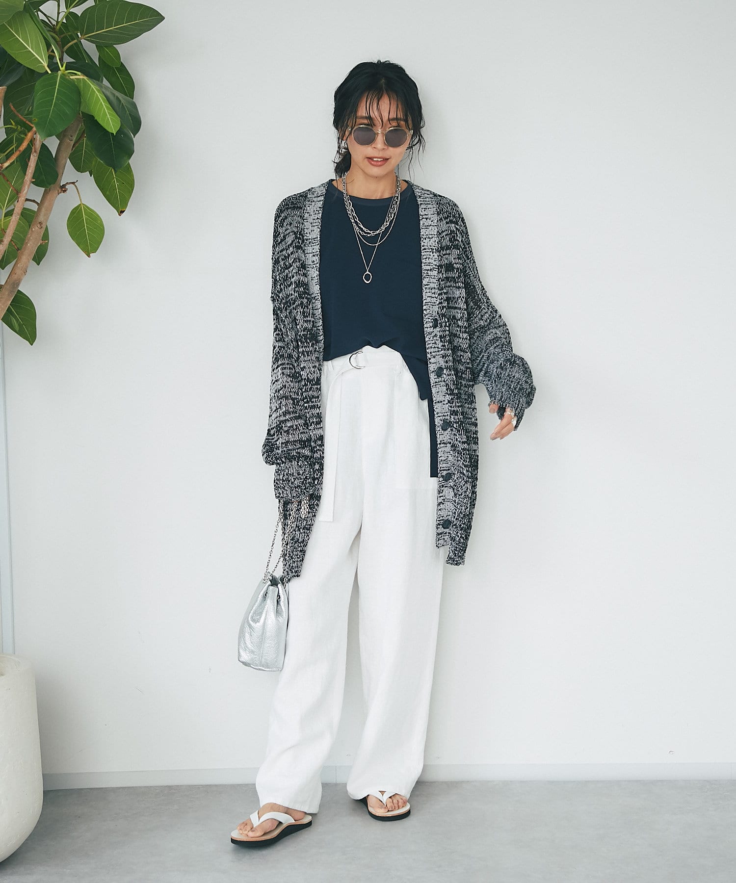 透け感を気にせず、通常のニットカーディガンを着用する際と同じようにコーディネートしていただいても素敵に着こなしていただけます。