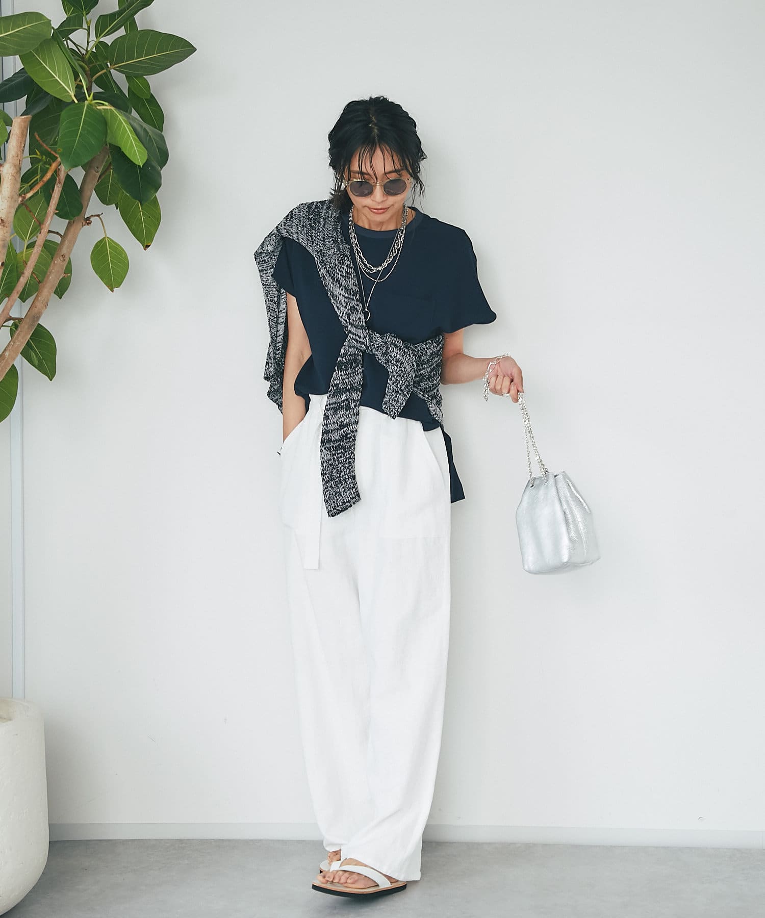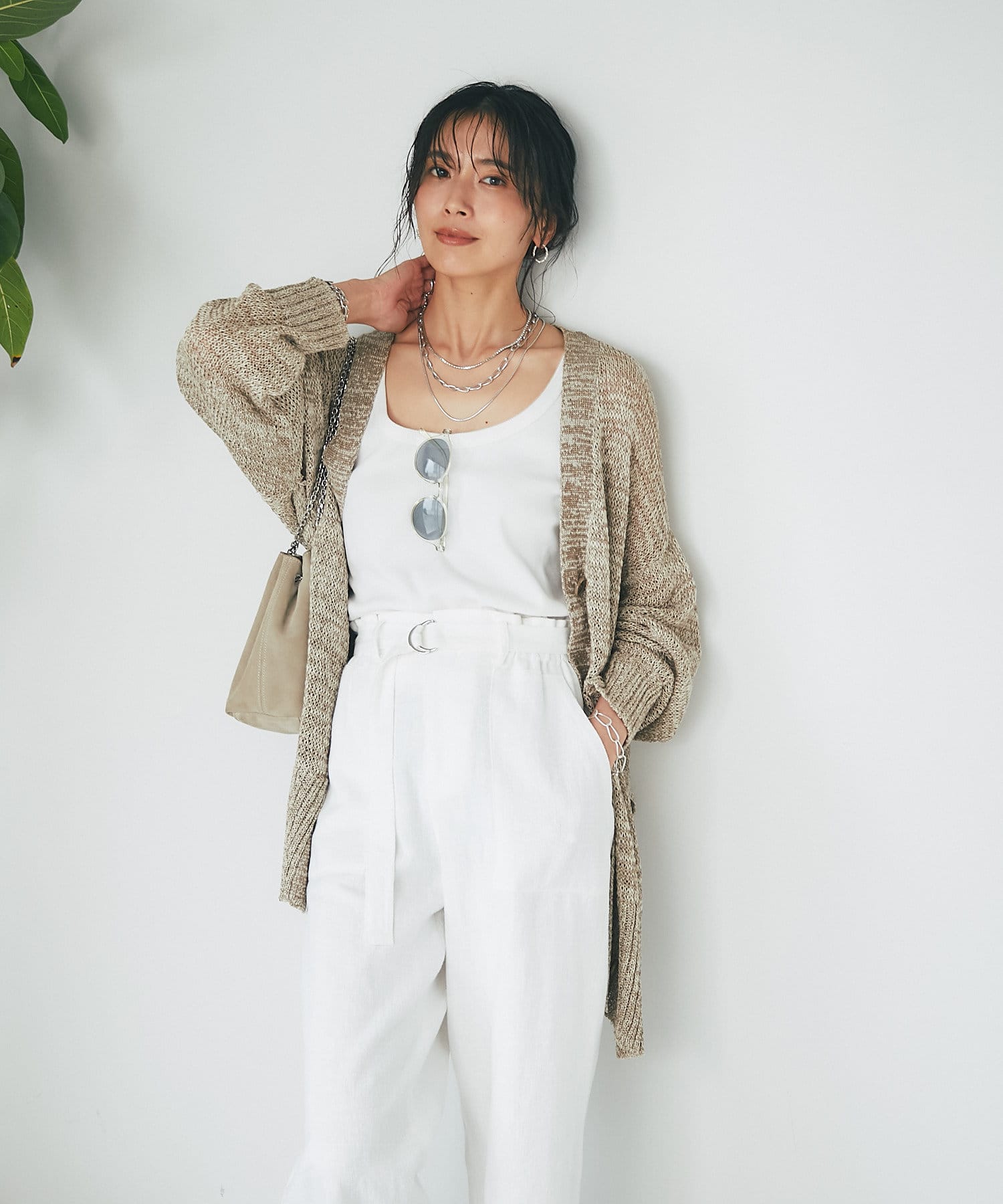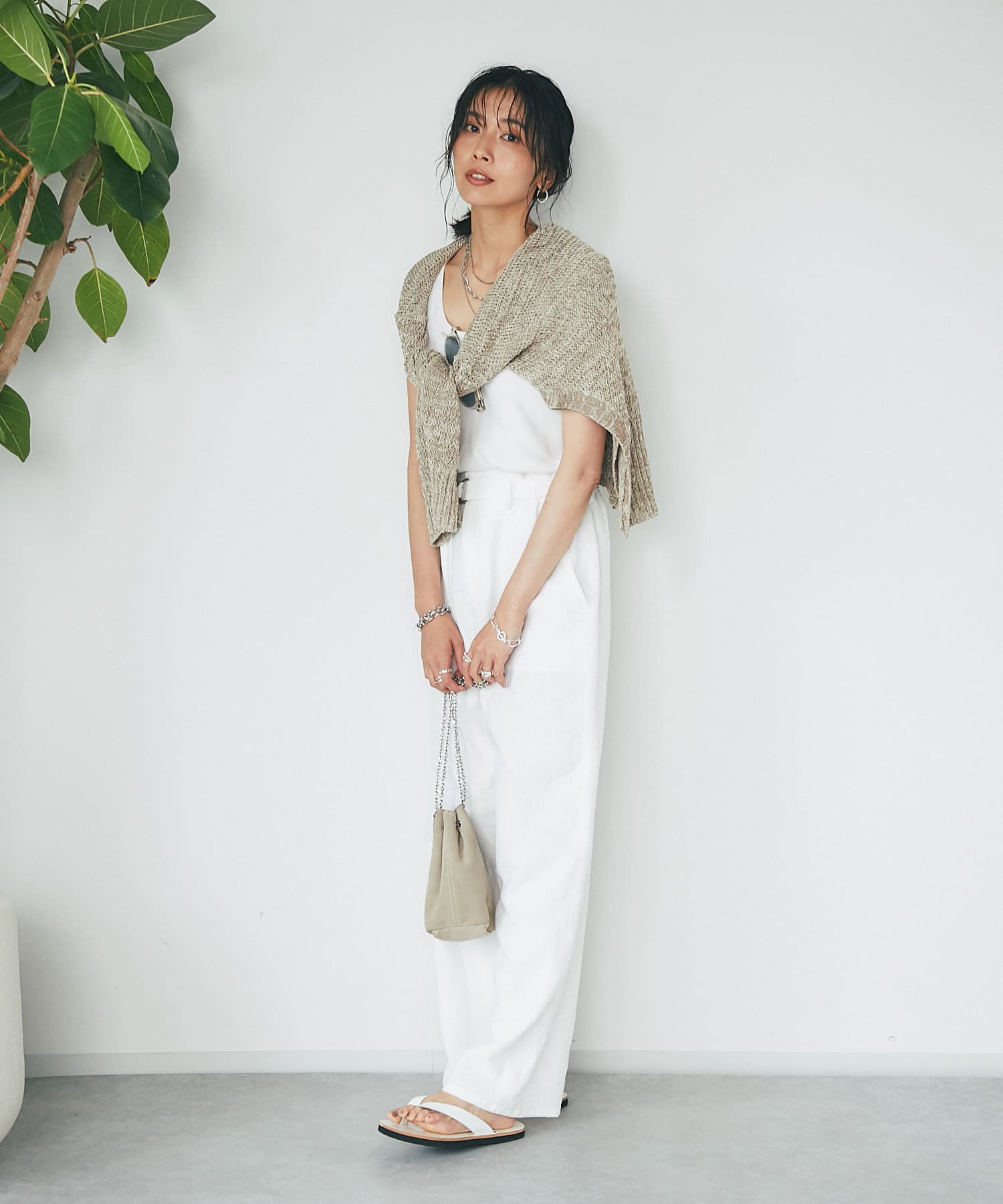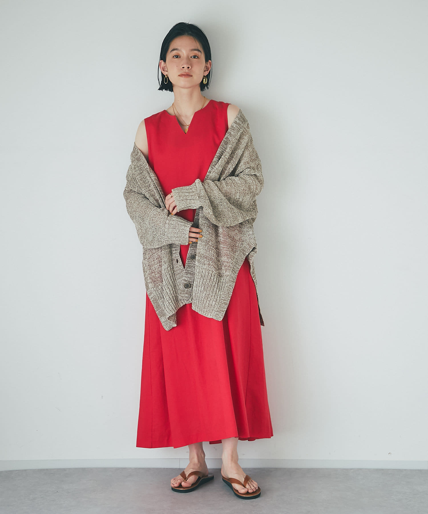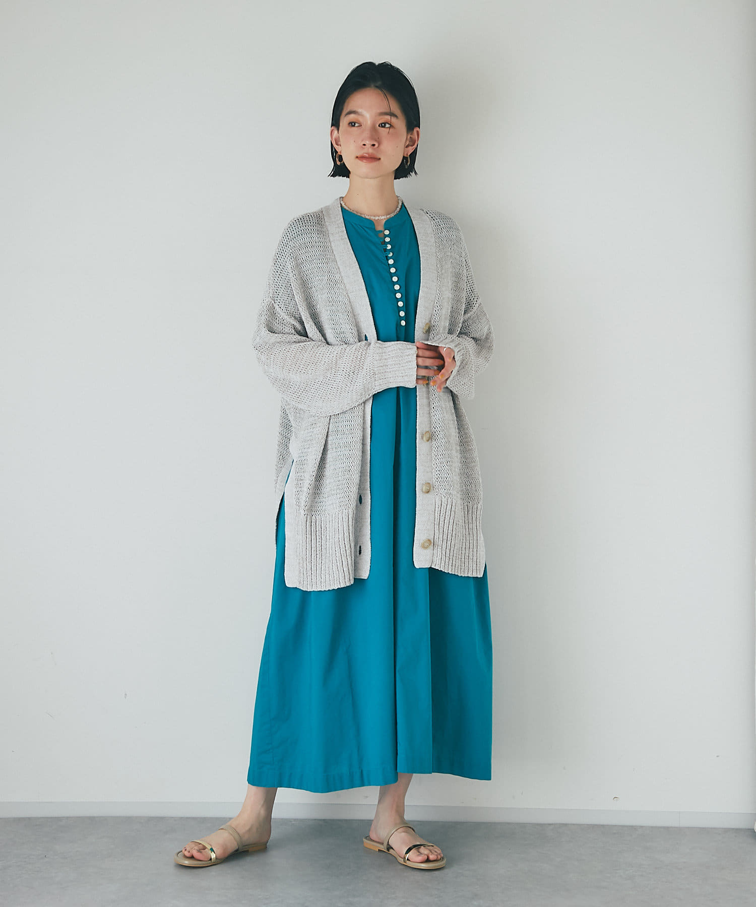 タンクトップの上からさっと羽織ったり、ワンピースに合わせるのもおすすめ。