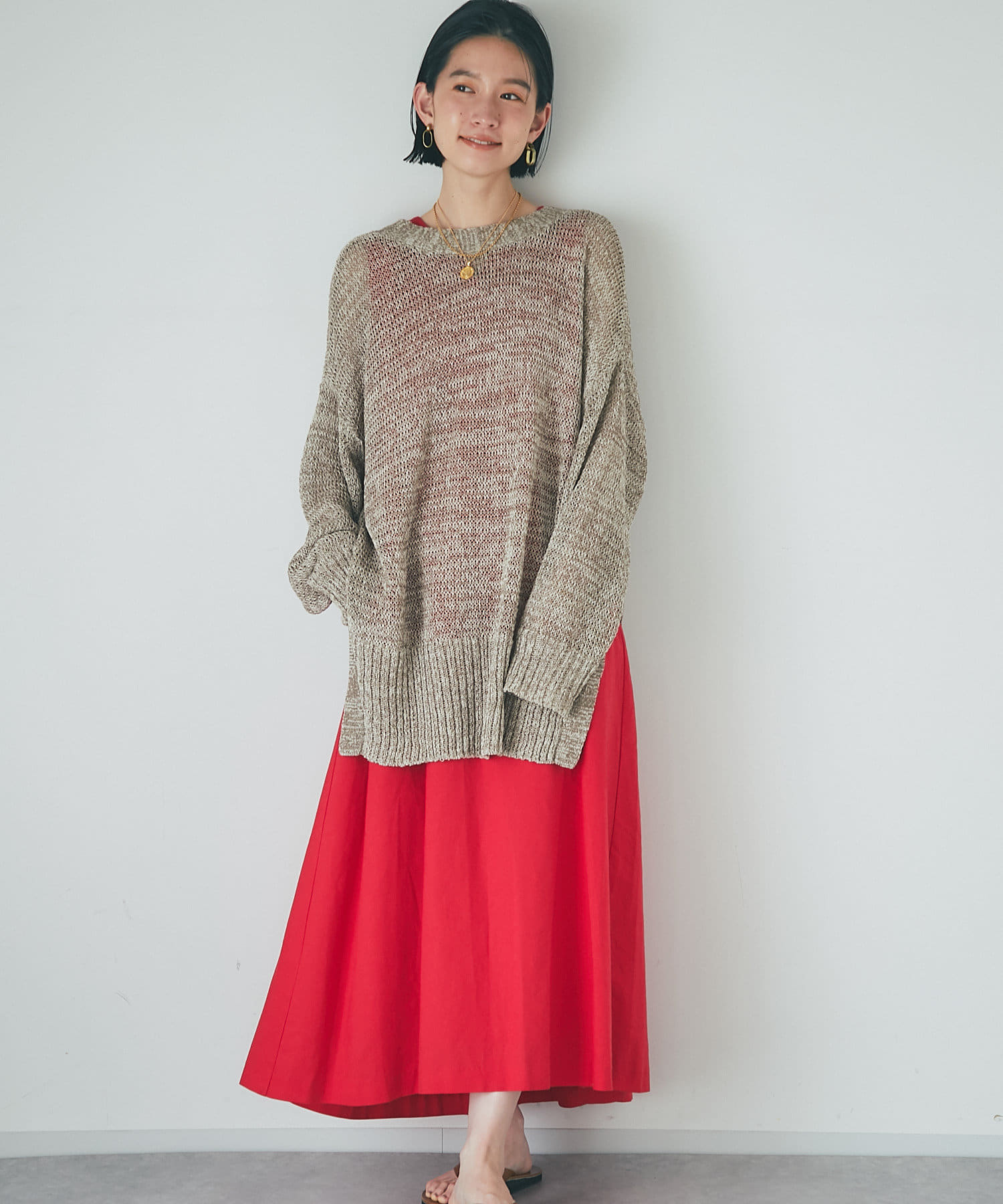 パンツにもスカートにも合わせやすい程よくルーズなシルエット。