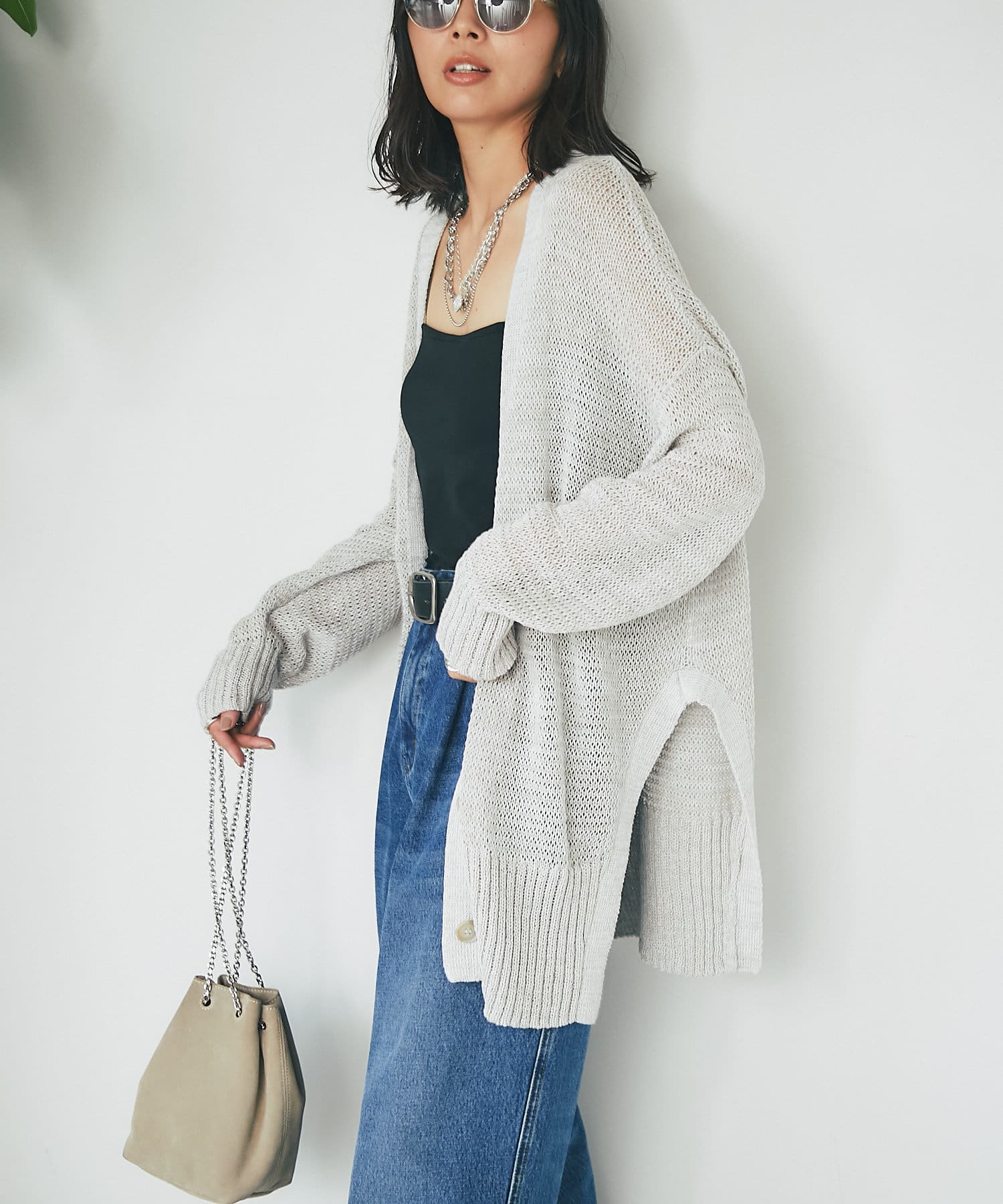 【程よい透け感】サイドスリット2WAYカーディガン