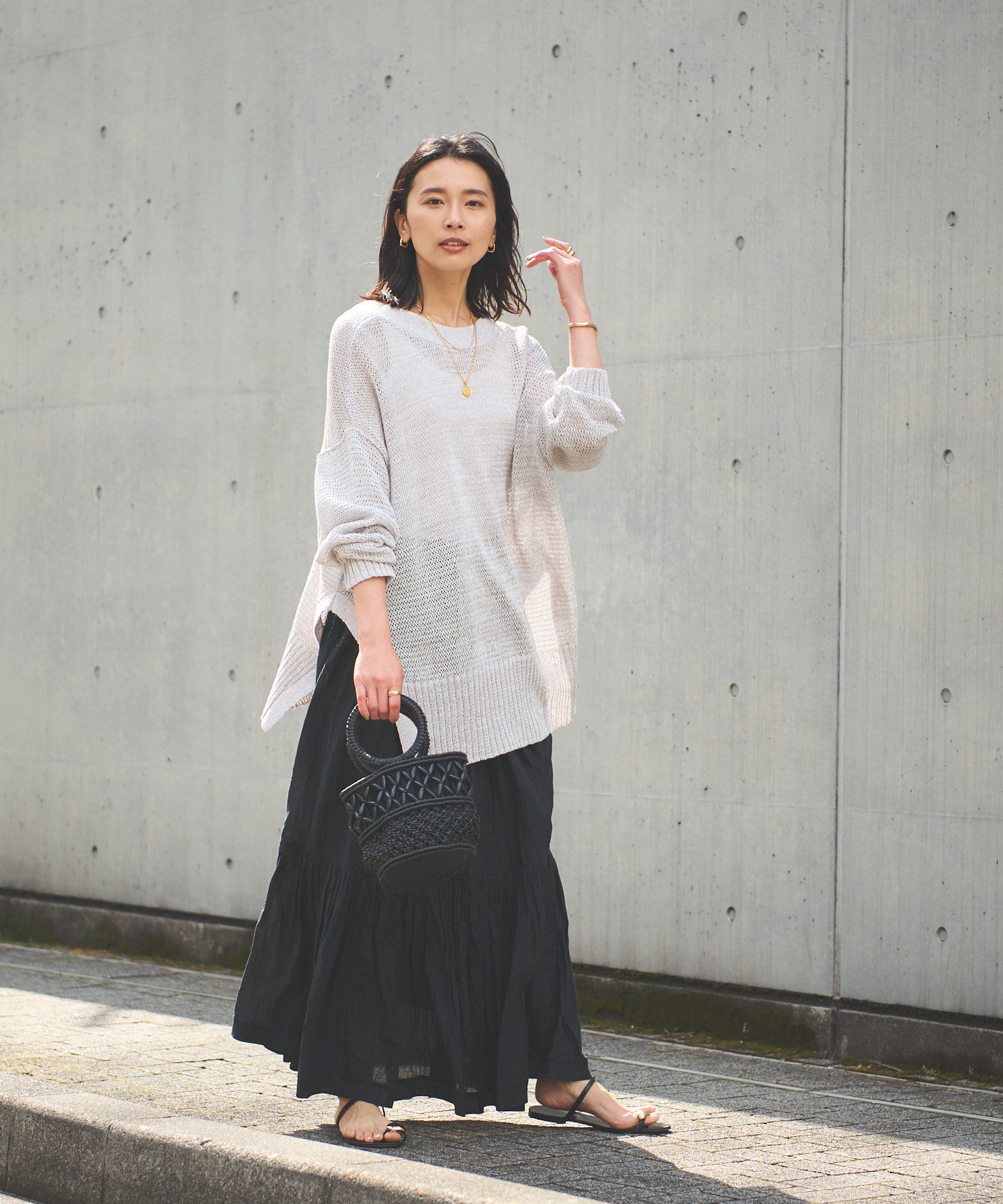 ざっくりとした編地が大人の抜け感を演出
