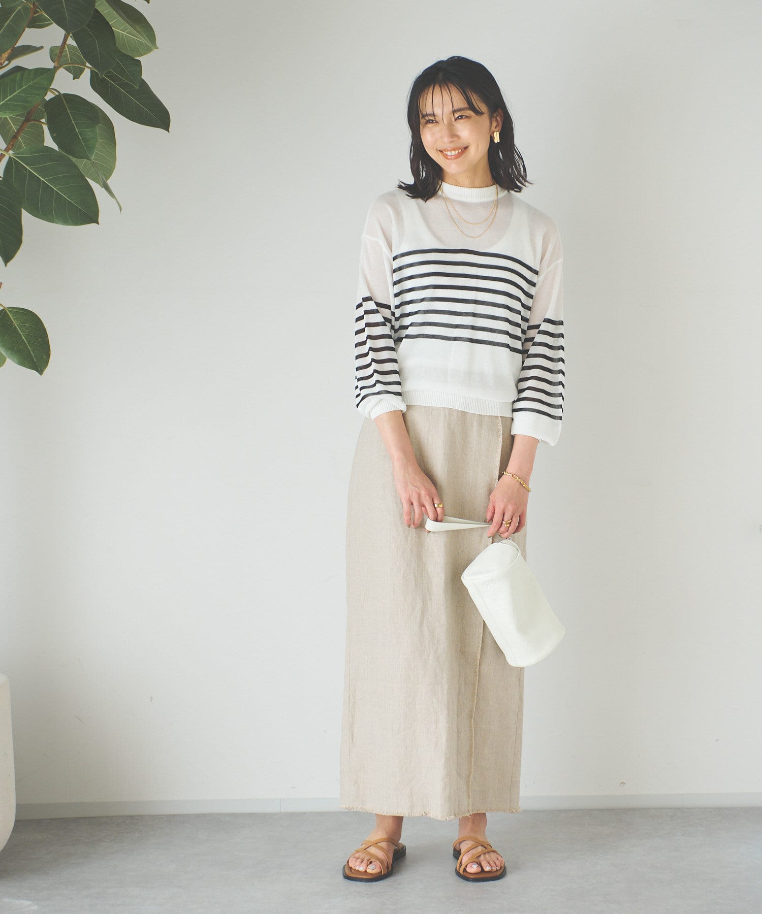 今年らしく着るならワイドパンツやIラインのロングスカートがおすすめ。程よく抜け感のある大人カジュアルスタイルに仕上がります。