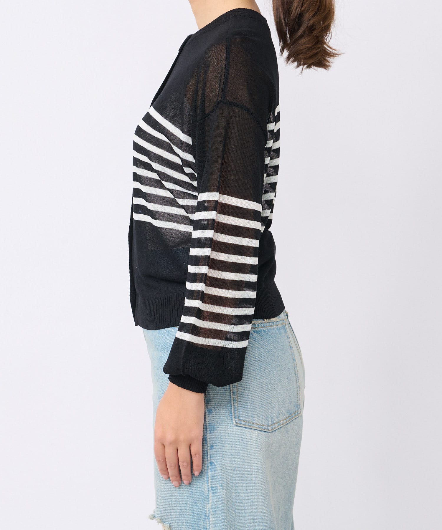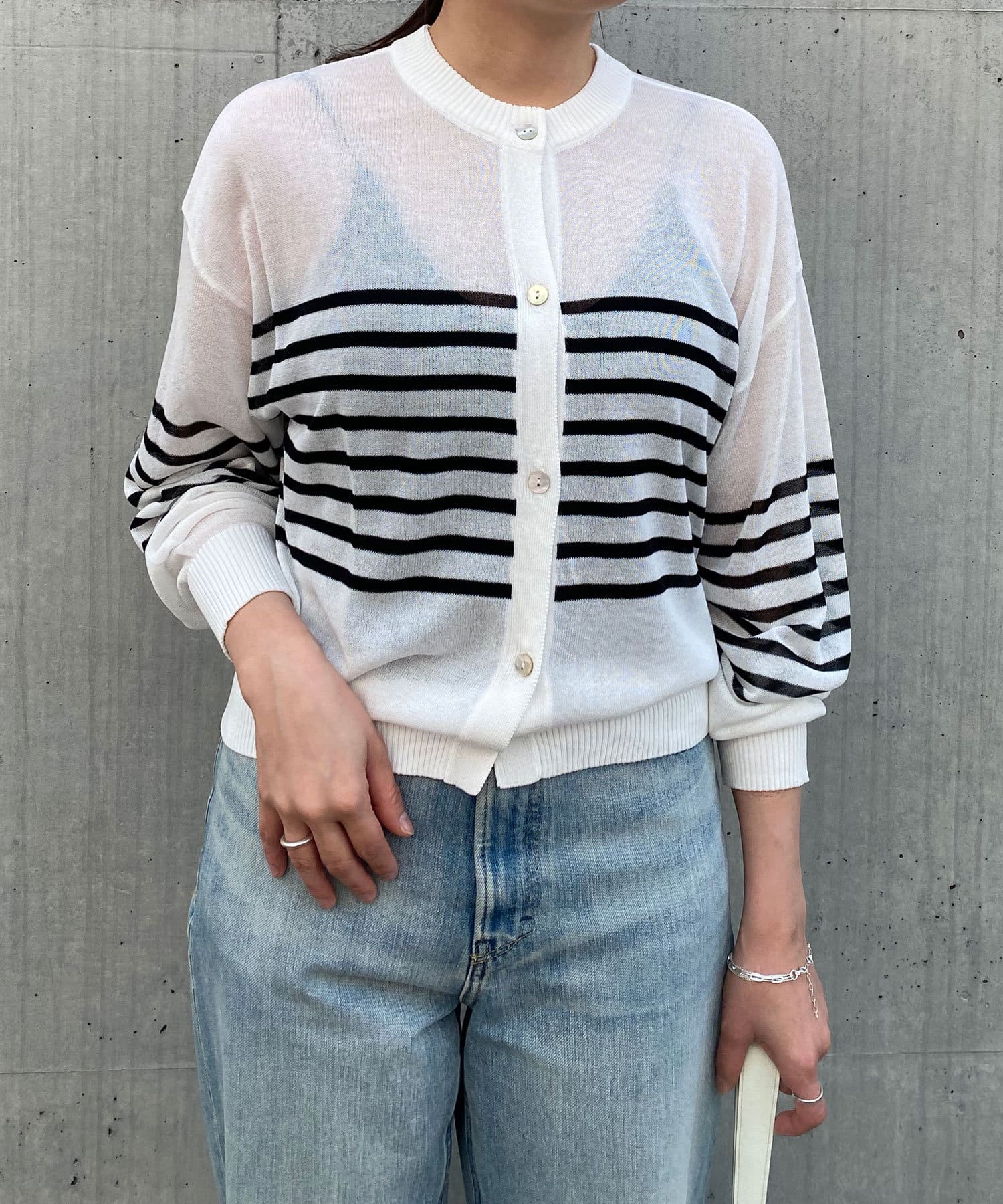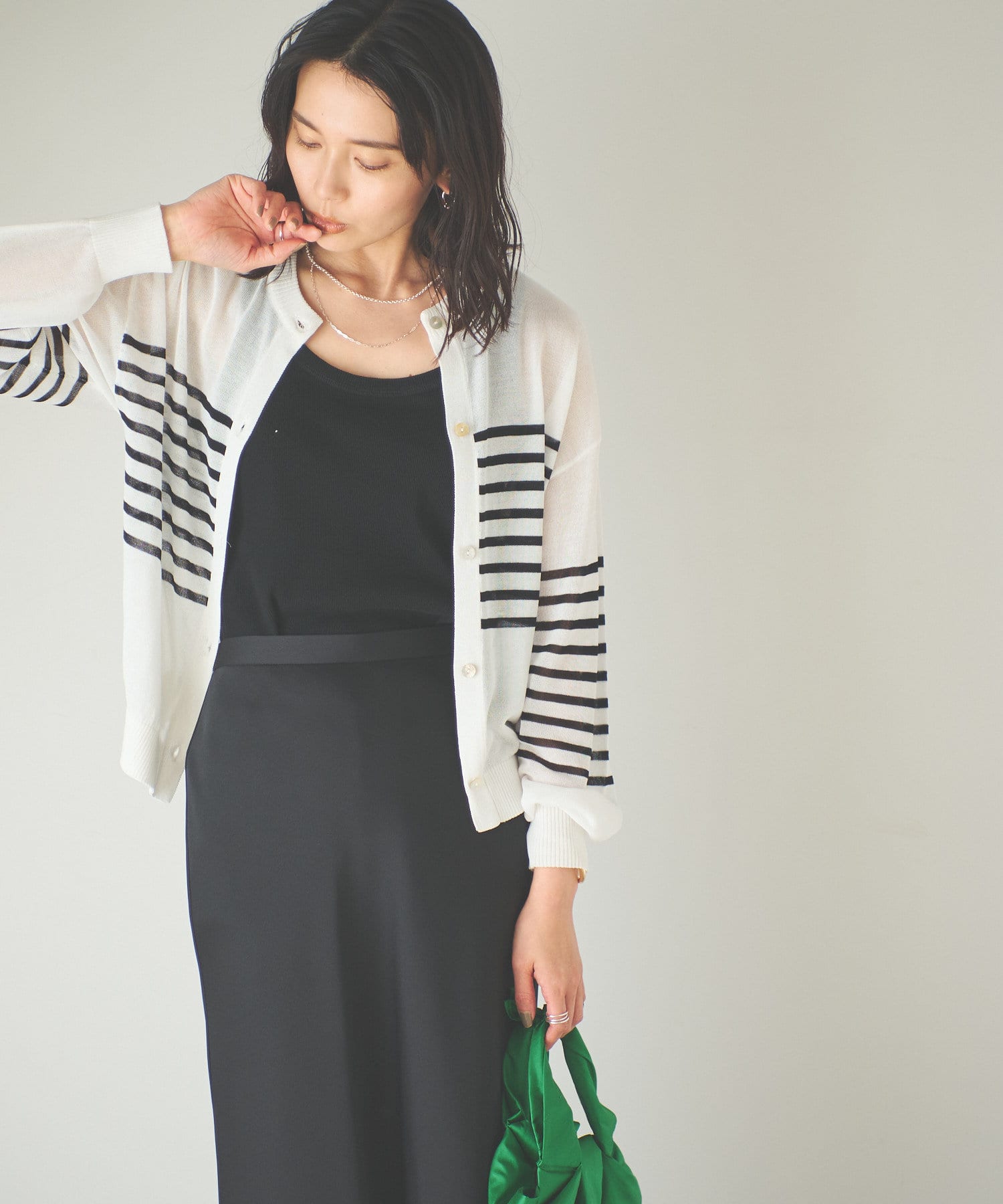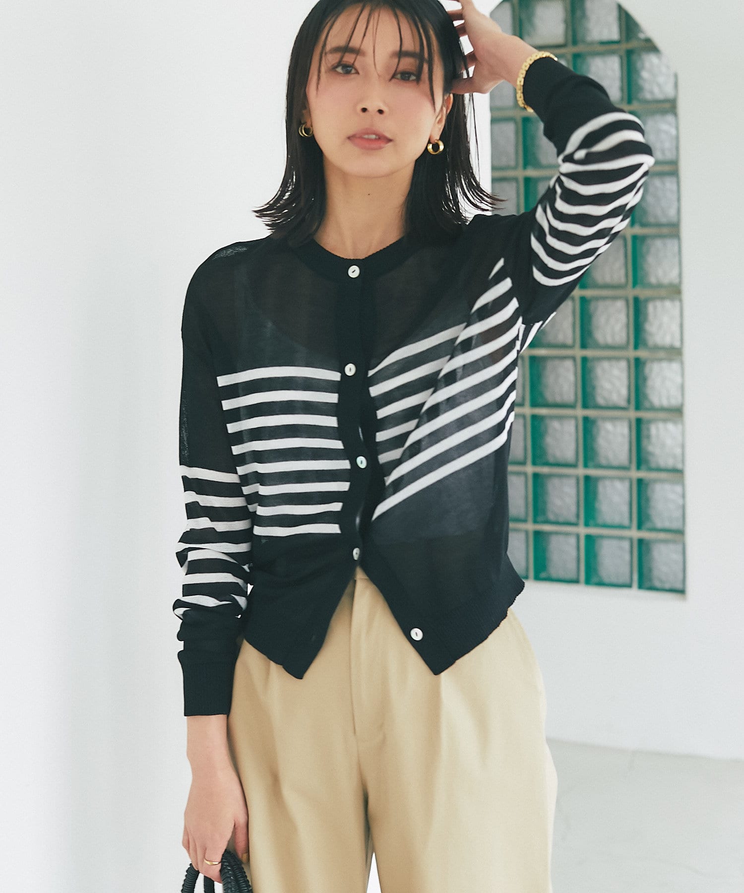 TOP > RIVE DROITE > レディース > トップス > カーディガン/ボレロ > 【トレンドの素材で差をつける】2WAYシアーボーダーカーディガン