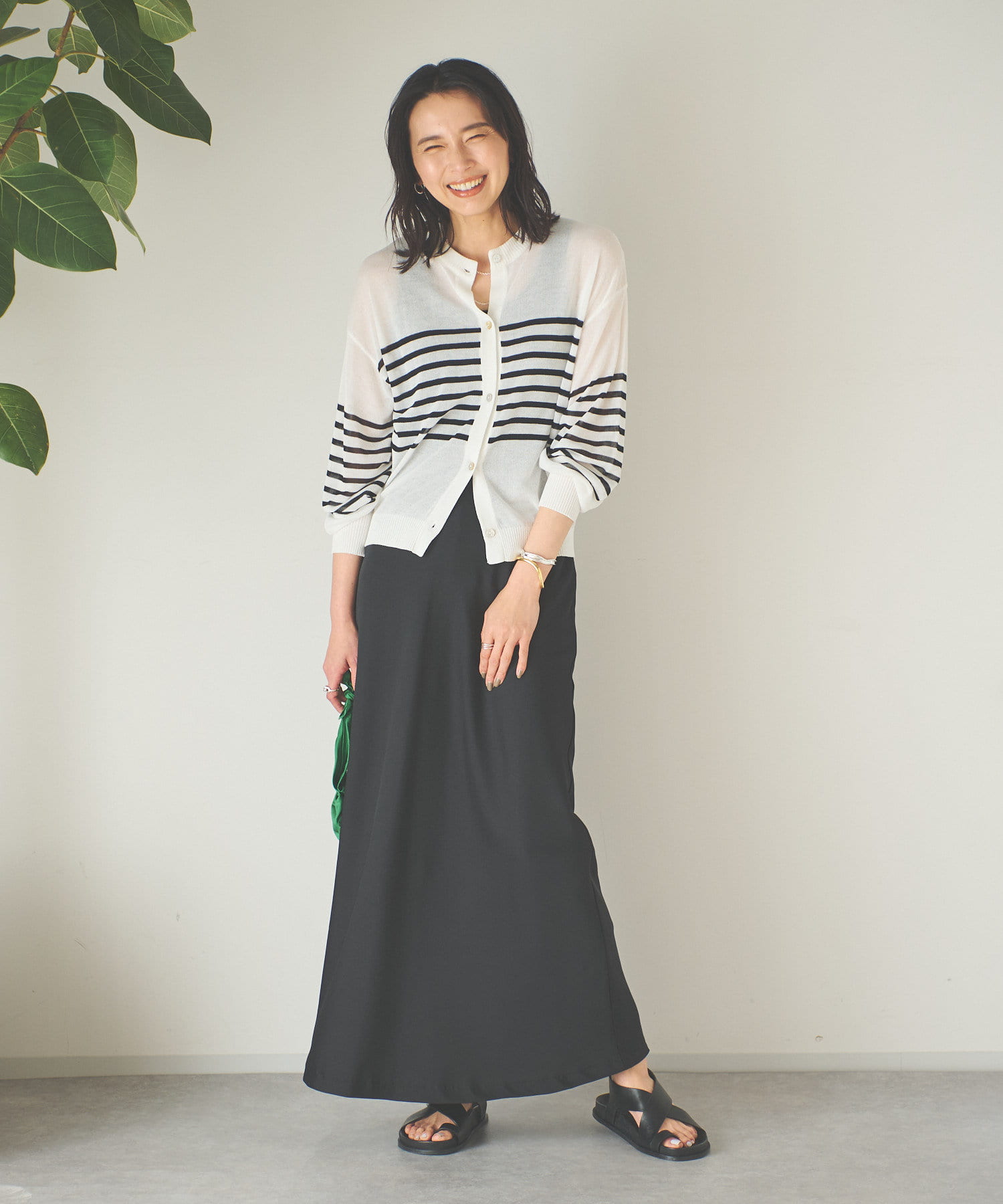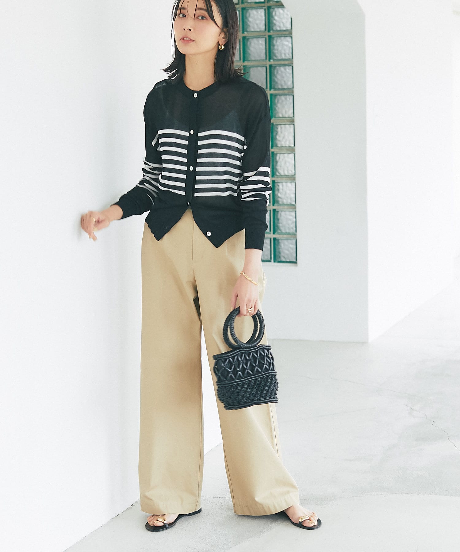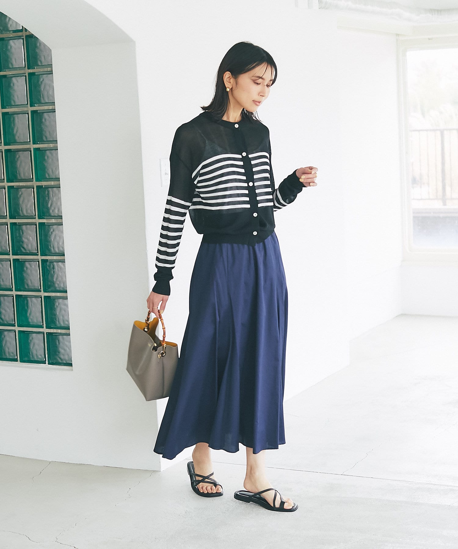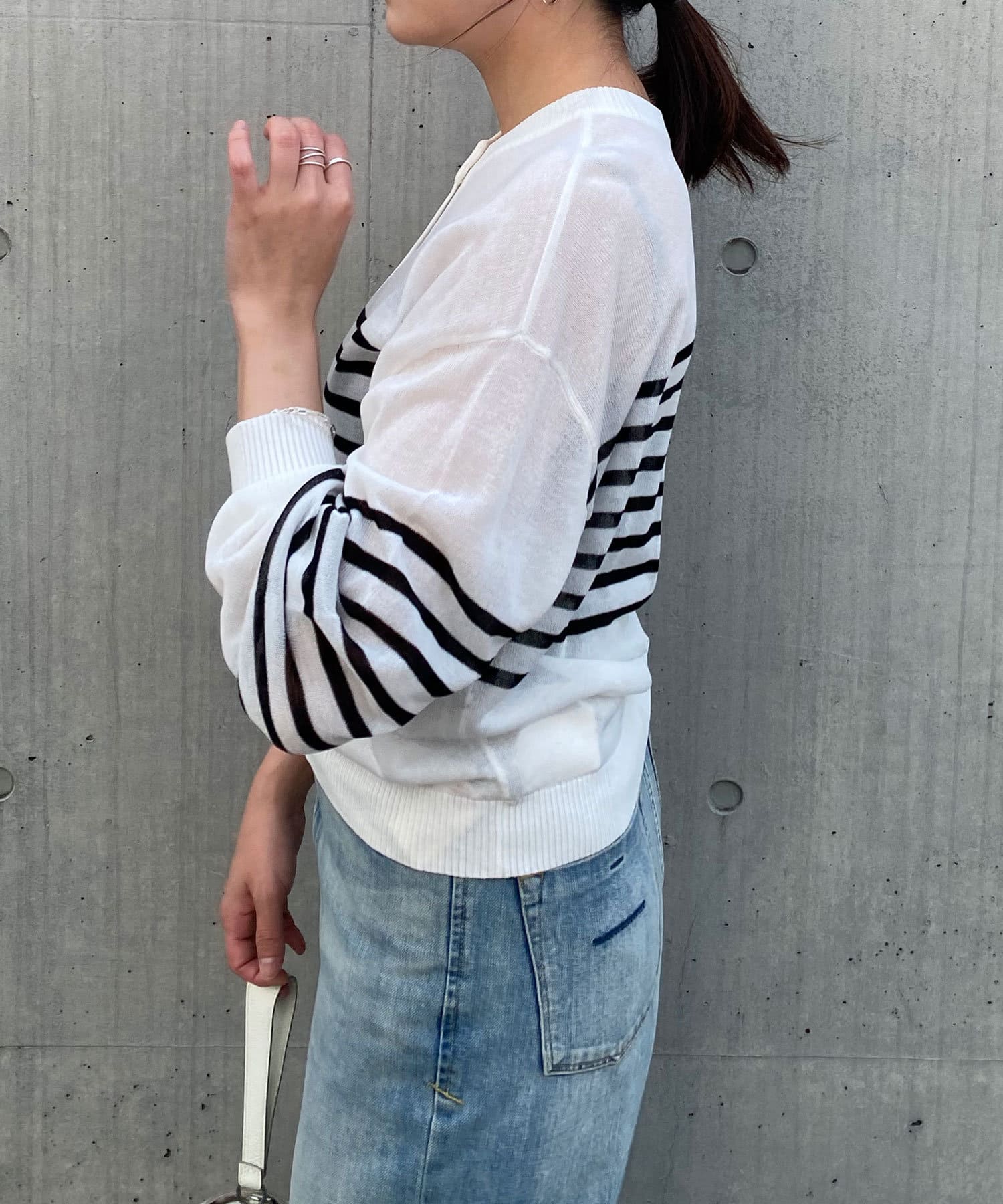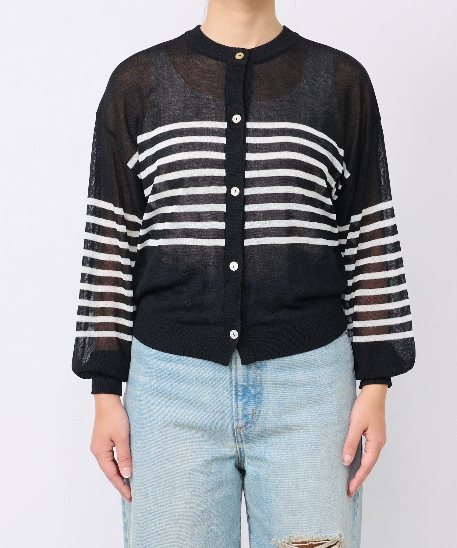 TOP > RIVE DROITE > レディース > トップス > カーディガン/ボレロ > 【トレンドの素材で差をつける】2WAYシアーボーダーカーディガン