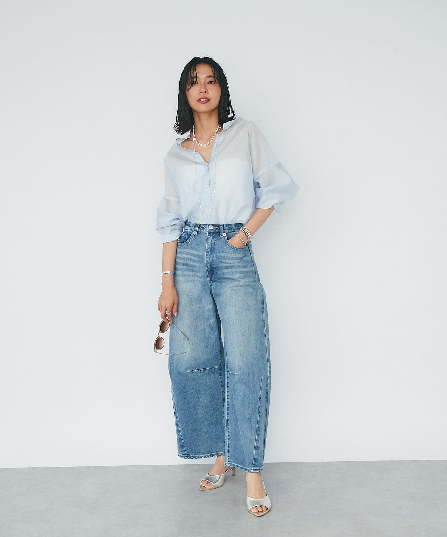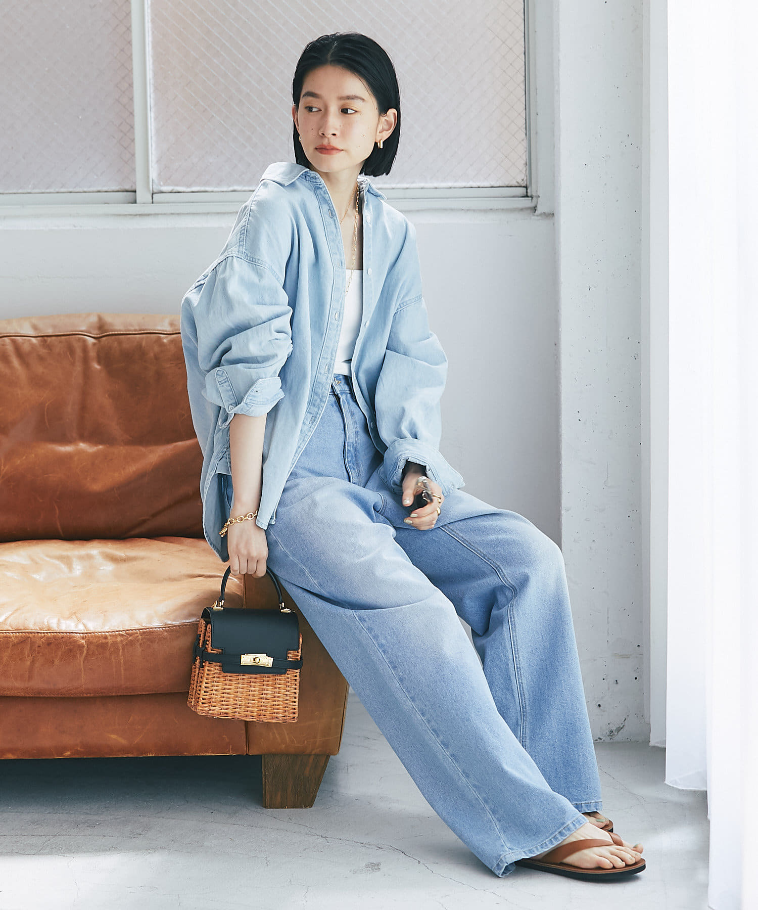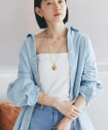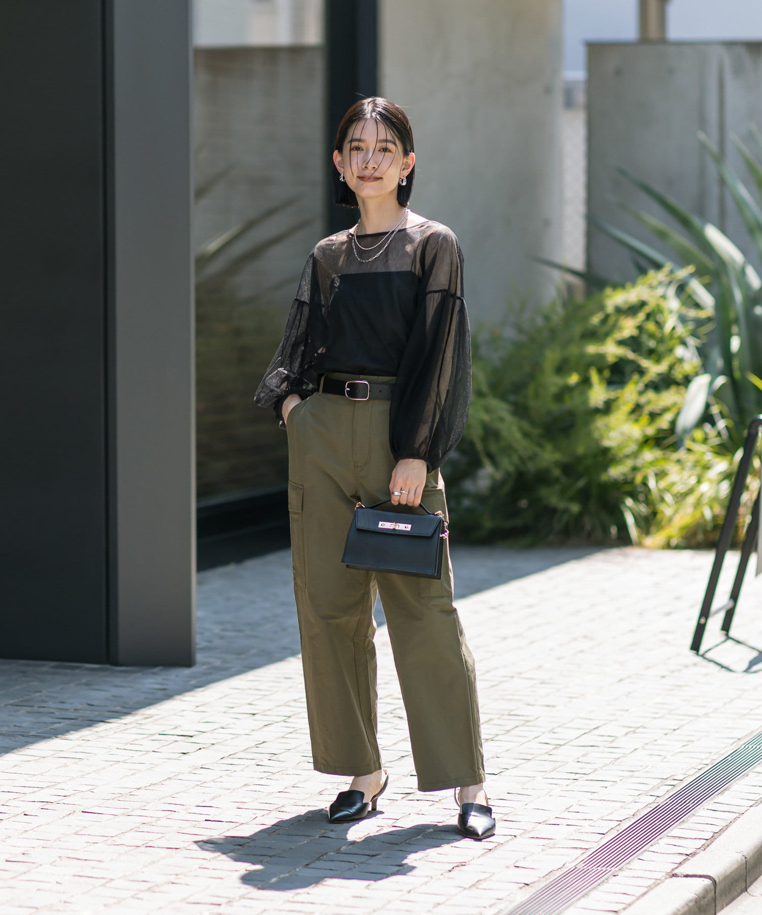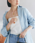 トレンドのシアーアイテムと合わせたコーディネートがおすすめ。華奢なストラップで主張が強すぎないため、透け感のあるアイテムのインに着ても目立ちにくいです。