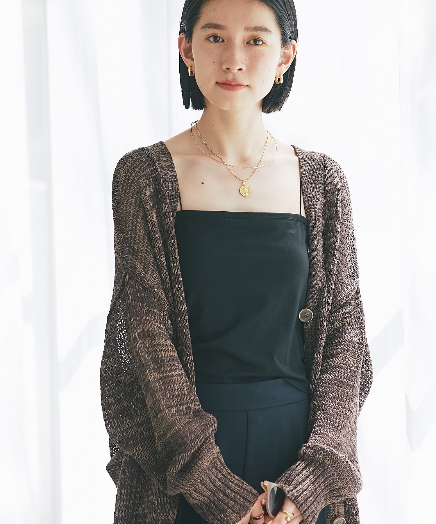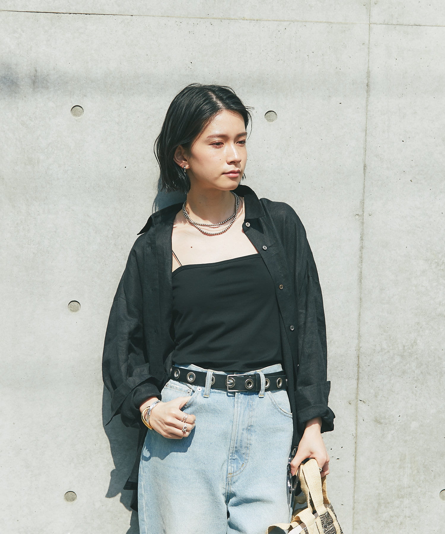 薄手のニットやシアーシャツ、薄手のアウターなどコーデの幅の広い今季マストなインナーです。