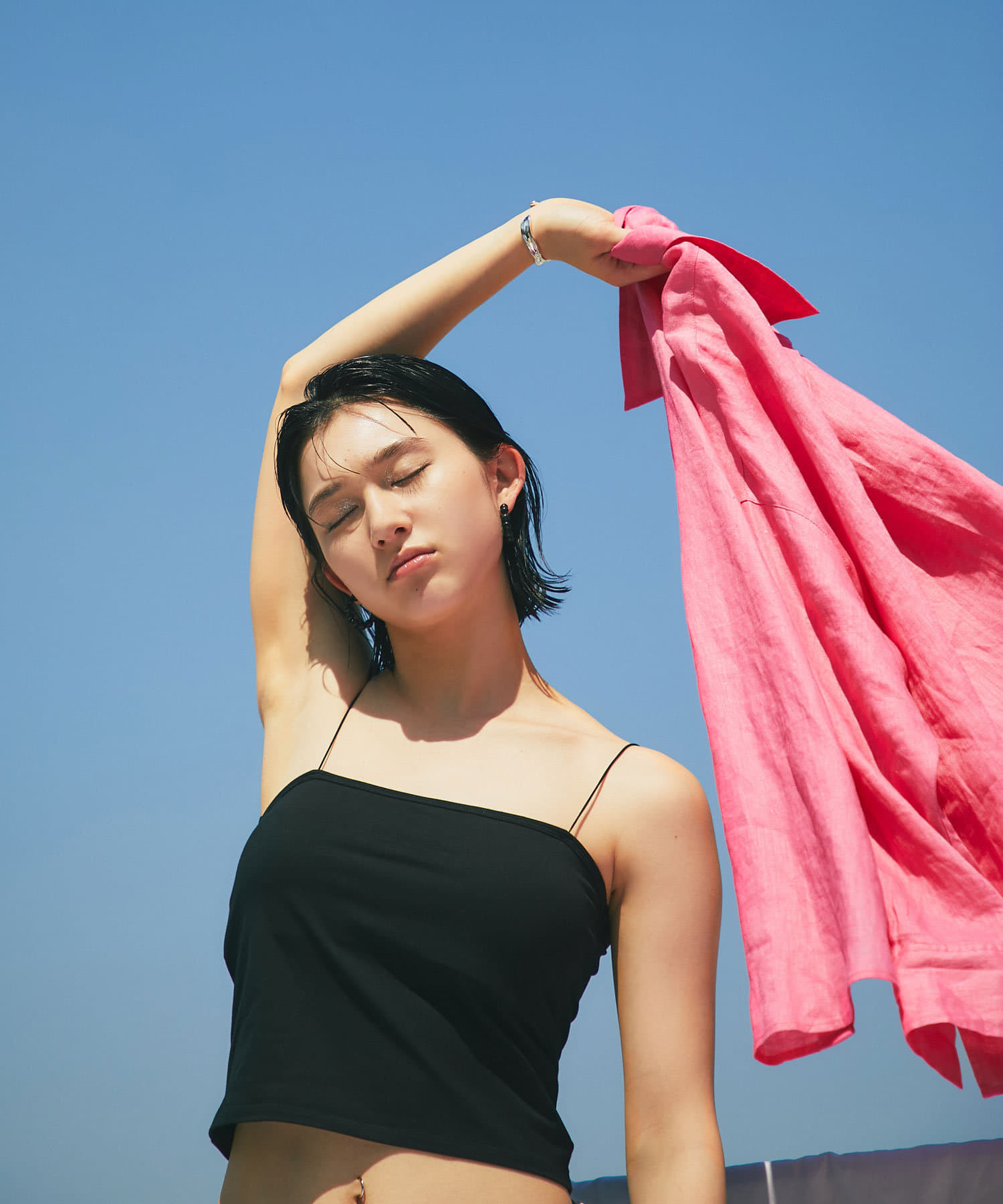 程よく肌見せできるウエストが隠れる丈感と、しなやかでなめらかな表面の素材感にこだわった『大人が着たい』ブラトップです。