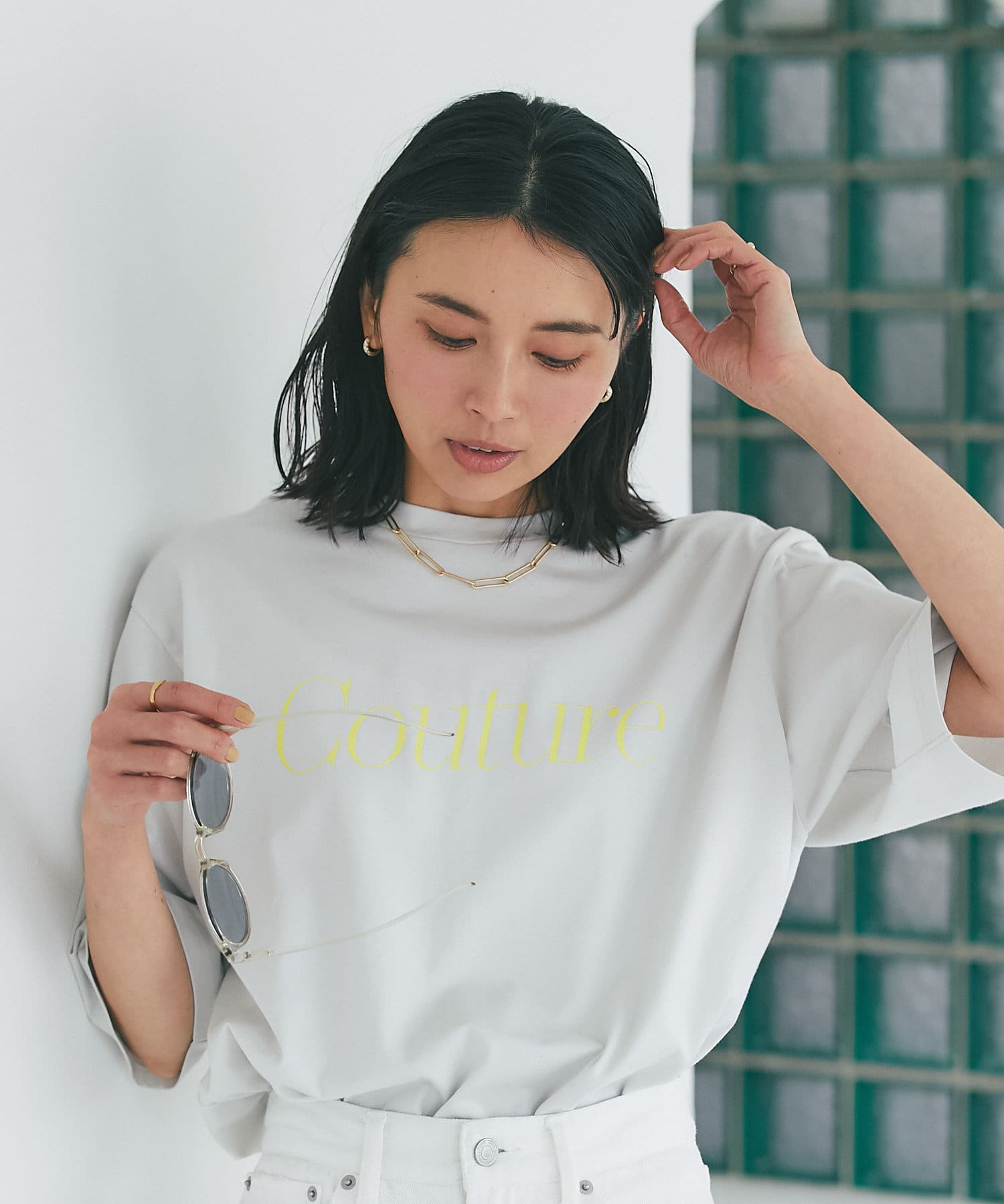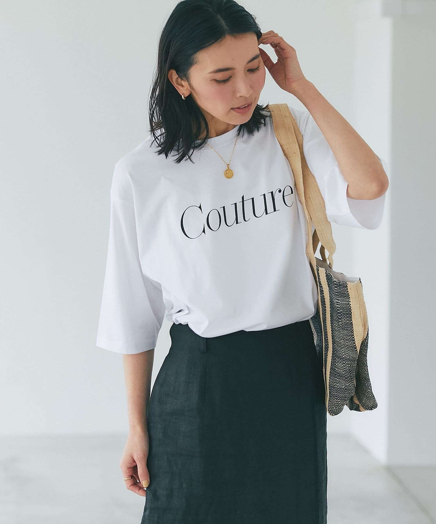 TOP > RIVE DROITE > レディース > トップス > Tシャツ/カットソー > 【肘まで隠れる袖丈】Couture オーバーTシャツ