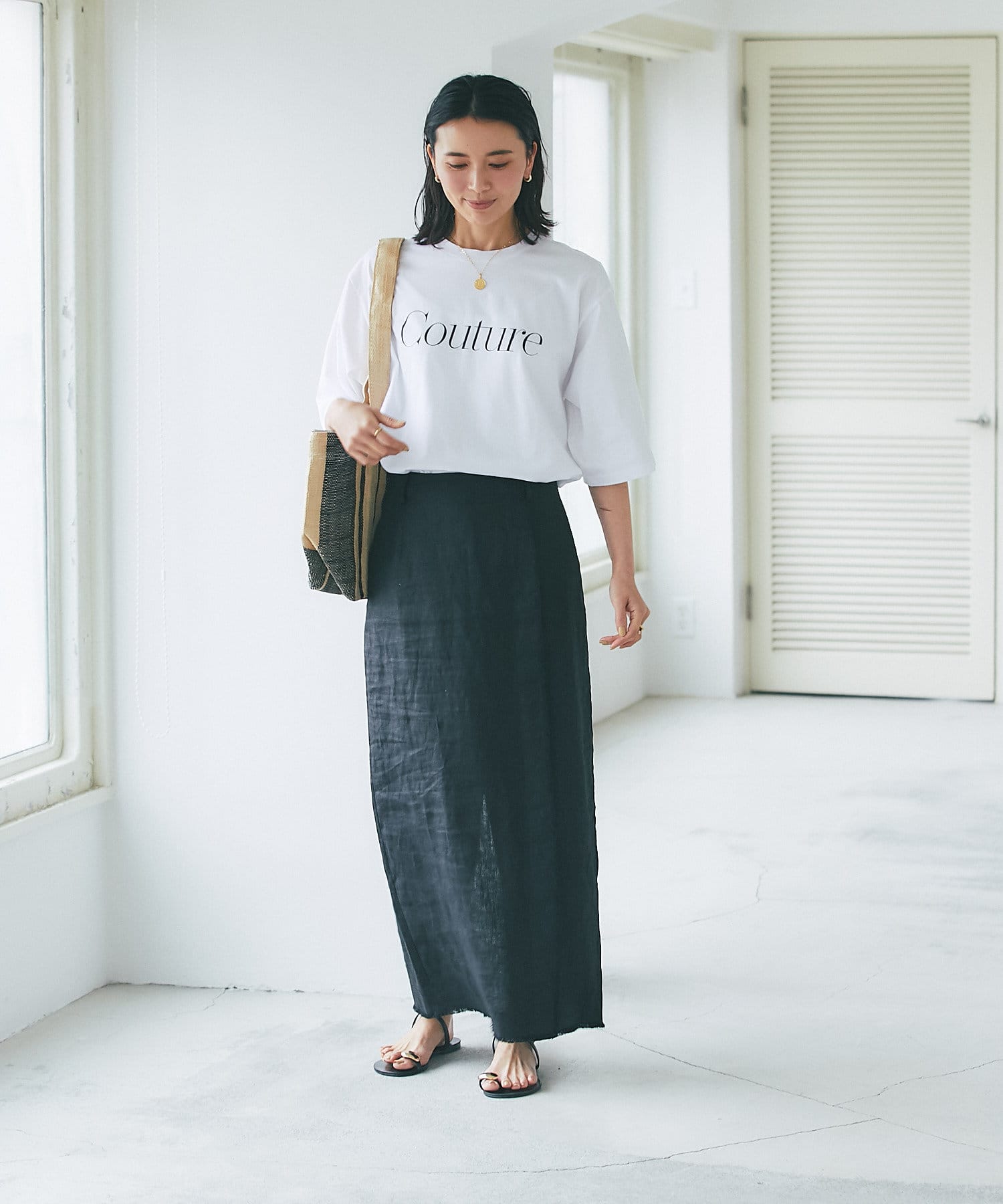 1枚でサマになる丈感と、ひじまで隠れる袖丈で高身長の方にもおすすめな1着。