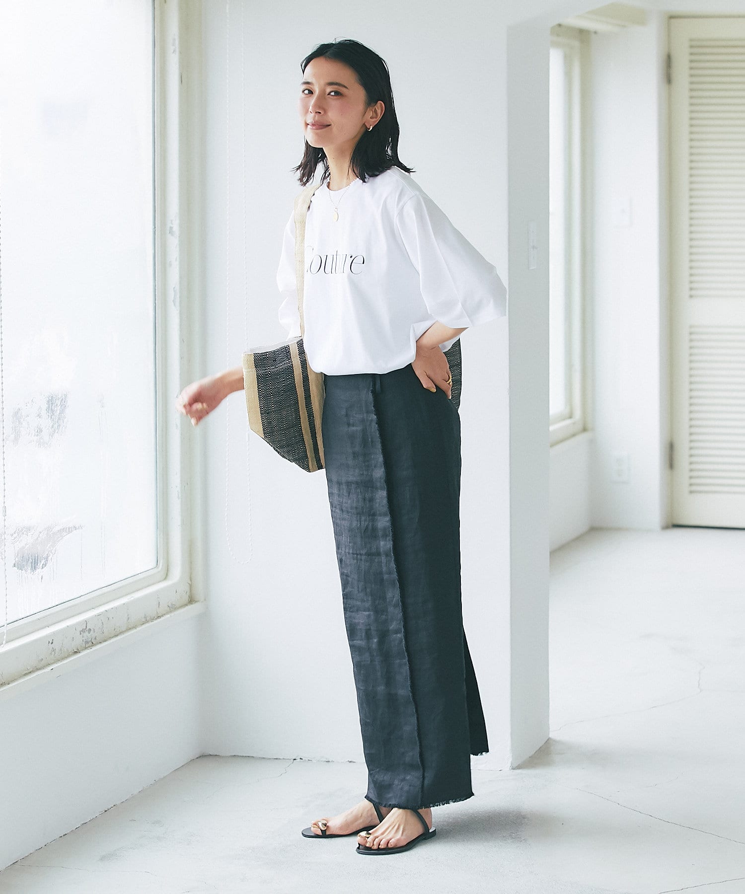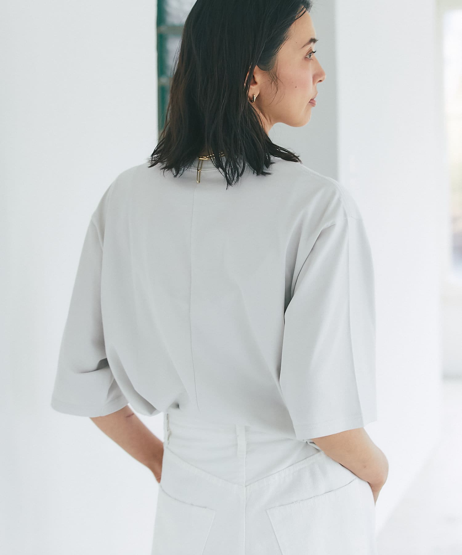 なめらかな肌触りのいい生地感で、大人カジュアルなスタイルにぴったり。