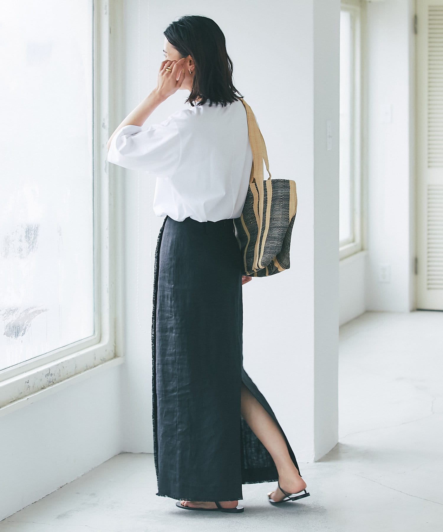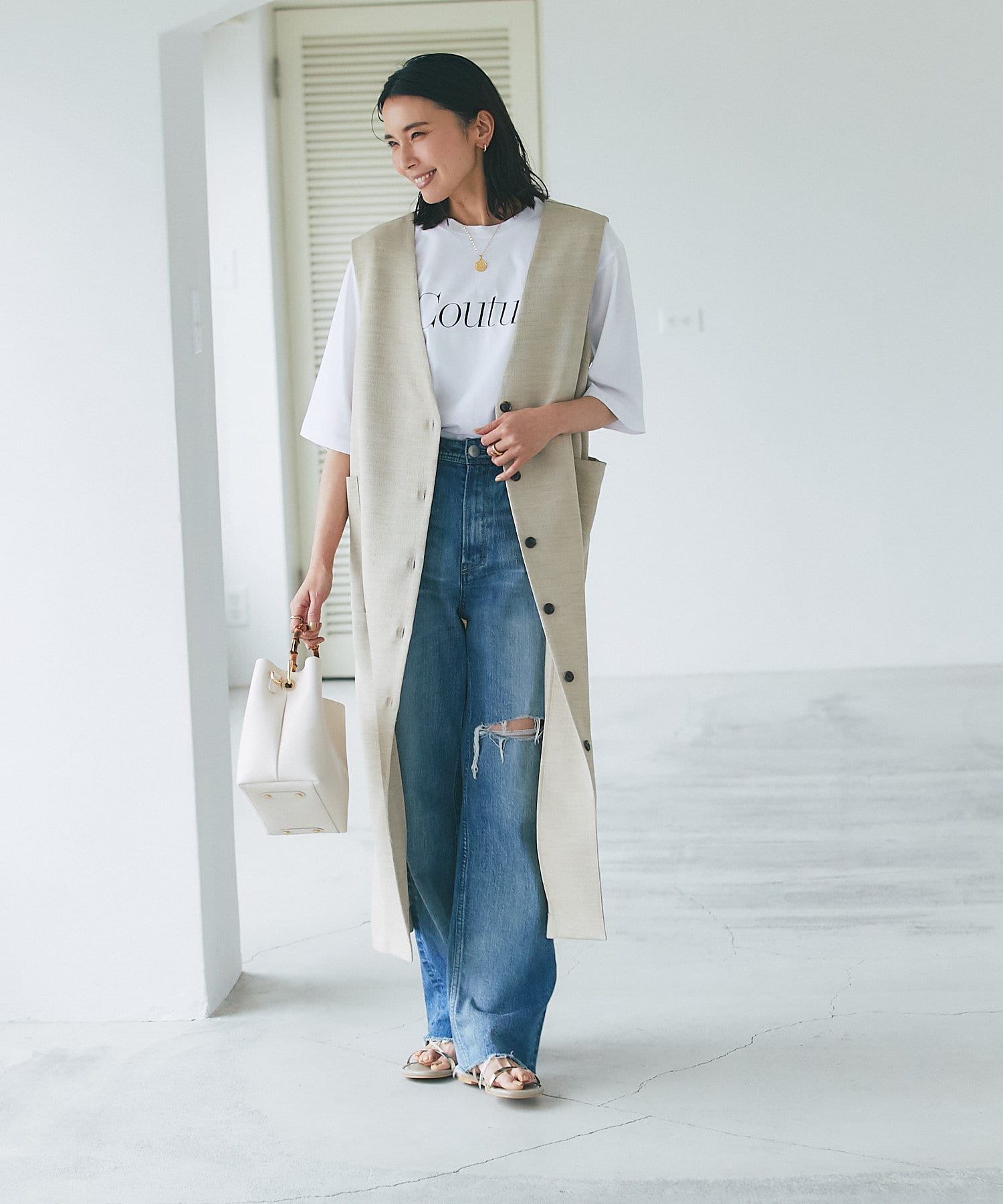 袖をロールアップして軽さを出せば、華奢で小柄な方にもバランス良く着用いただけます。