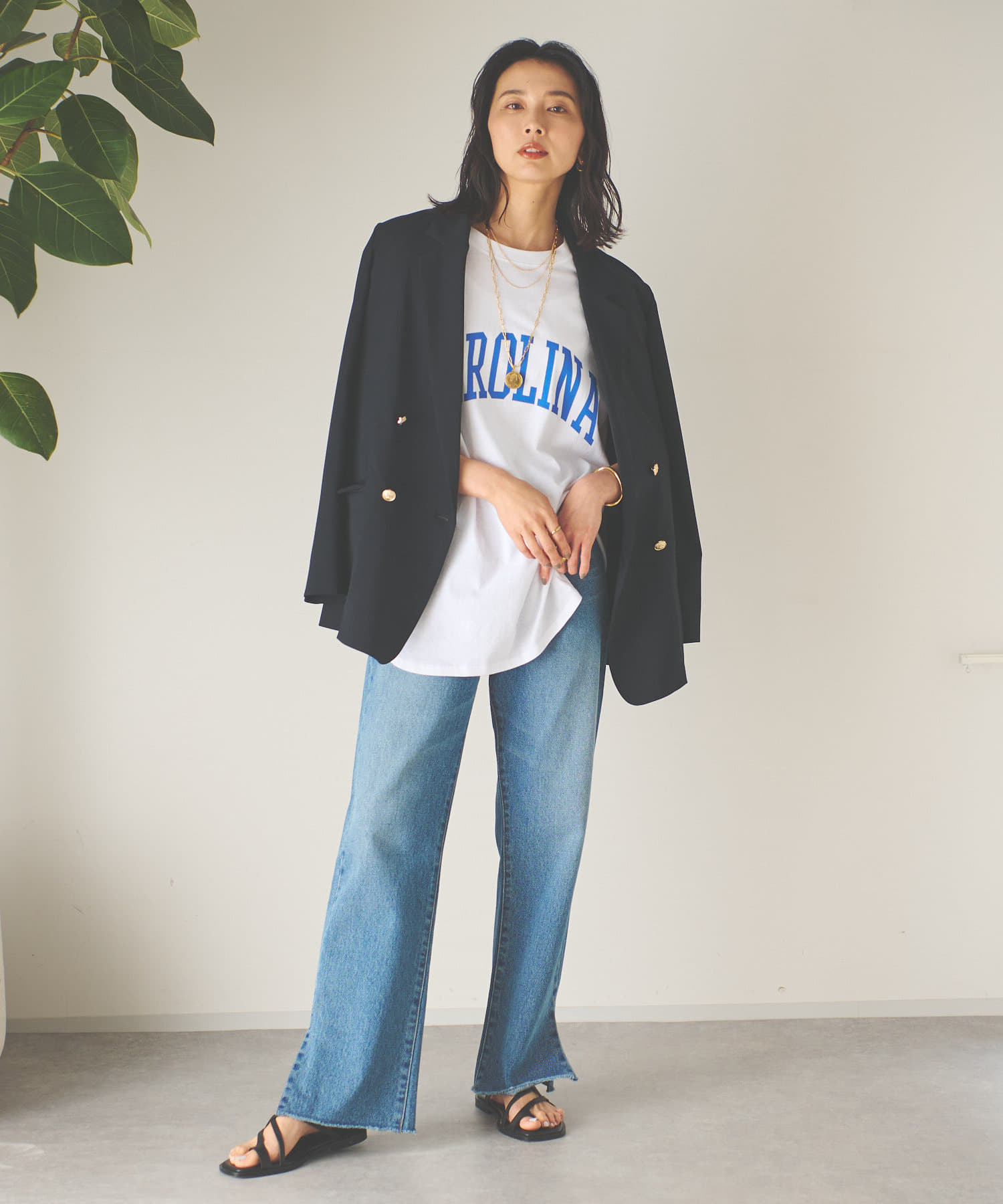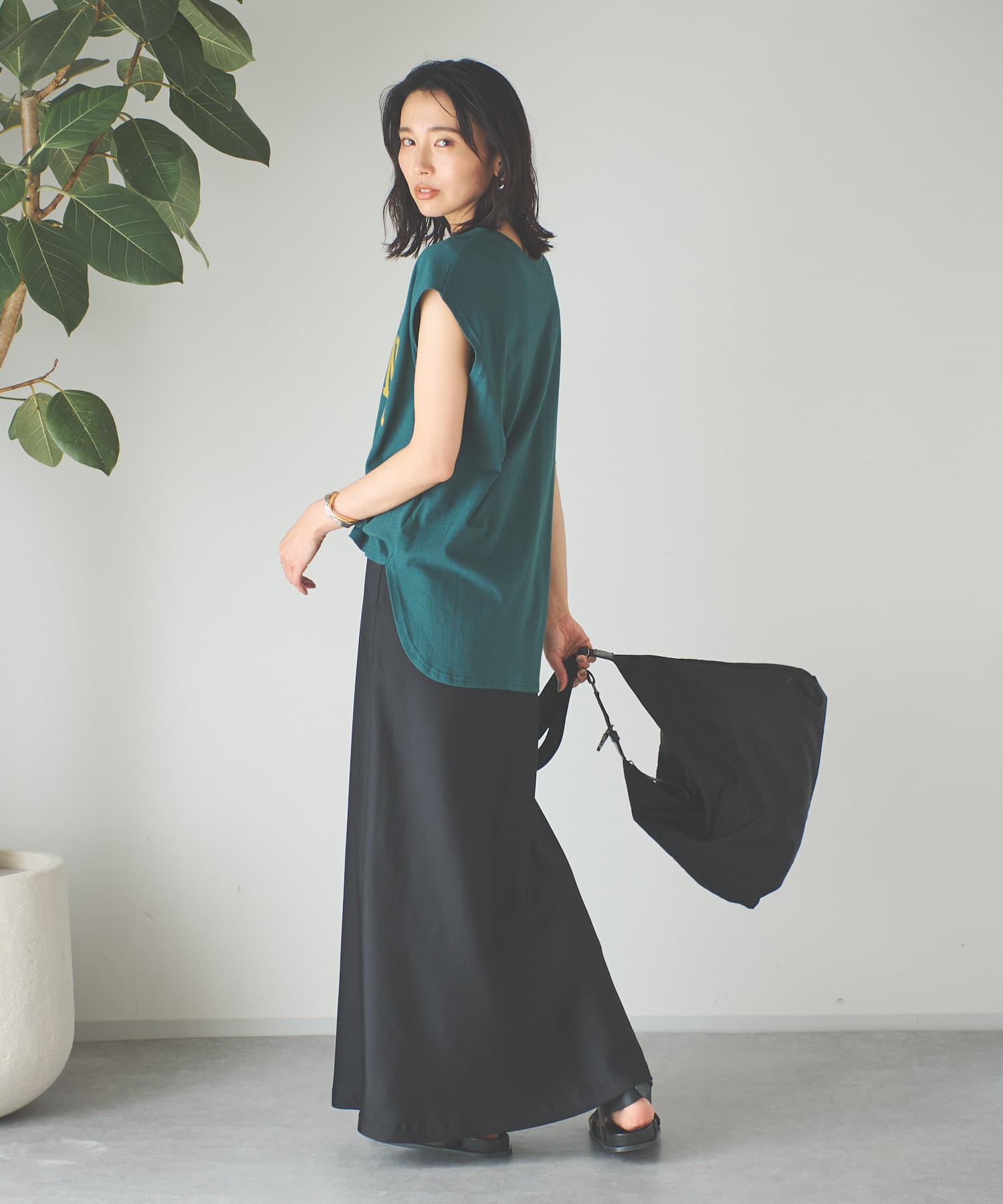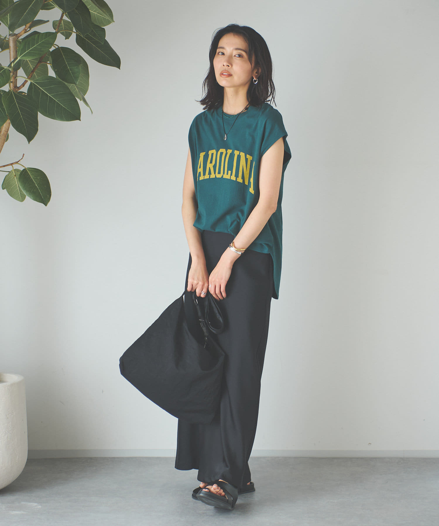 ゆったりしたシルエットのため、パンツの場合は細身~セミワイドのものと合わせるとバランスよく着れます。
