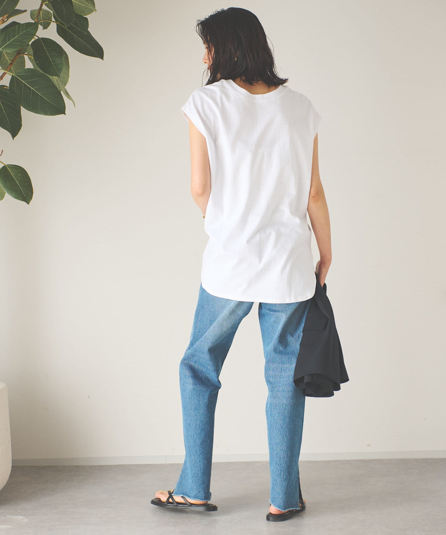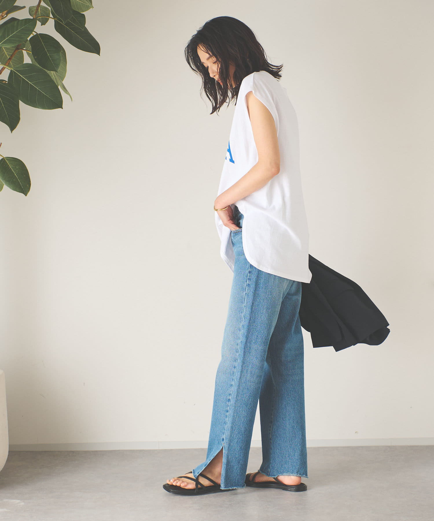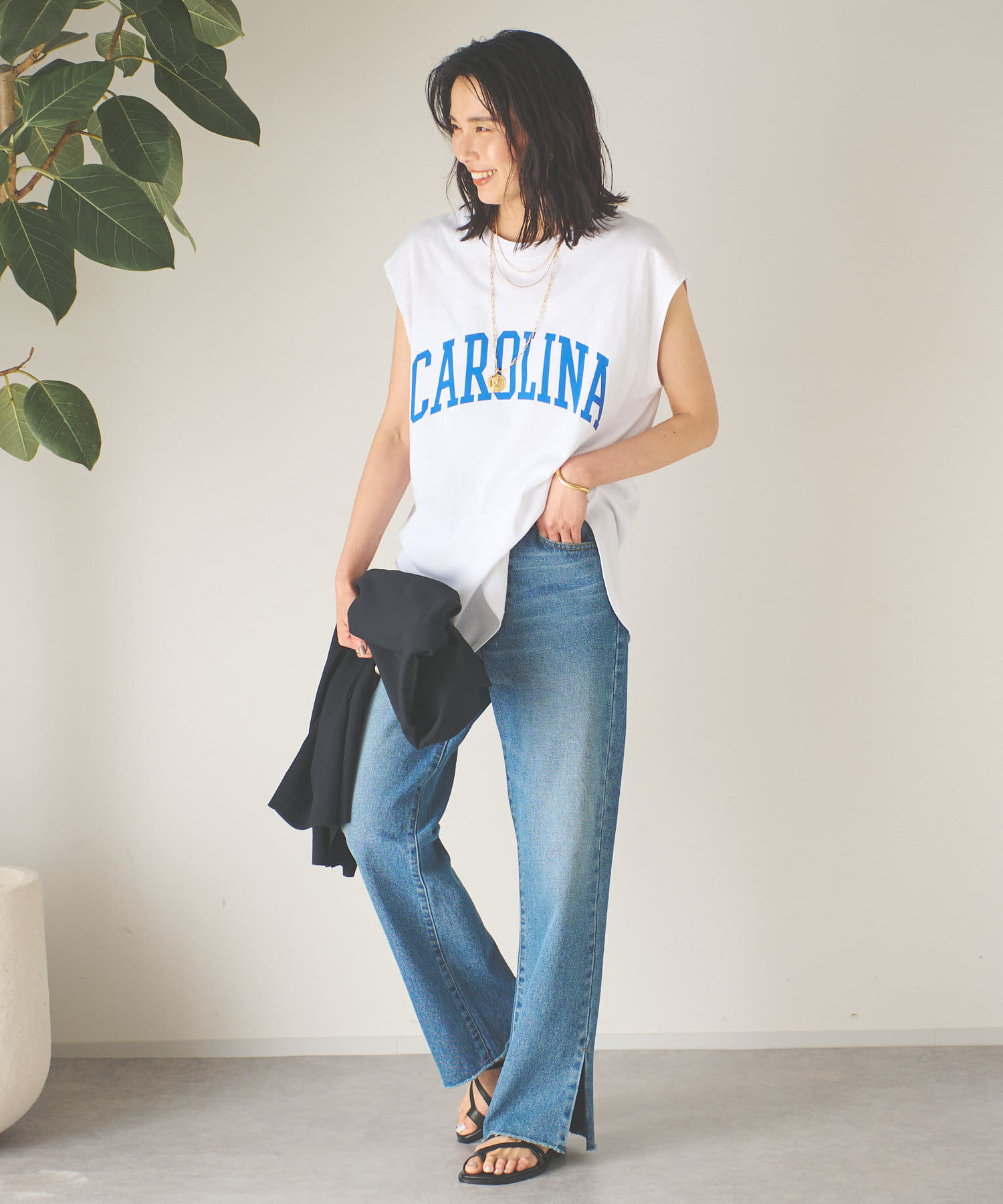 ゆったりしたシルエットのため、パンツの場合は細身~セミワイドのものと合わせるとバランスよく着れます。