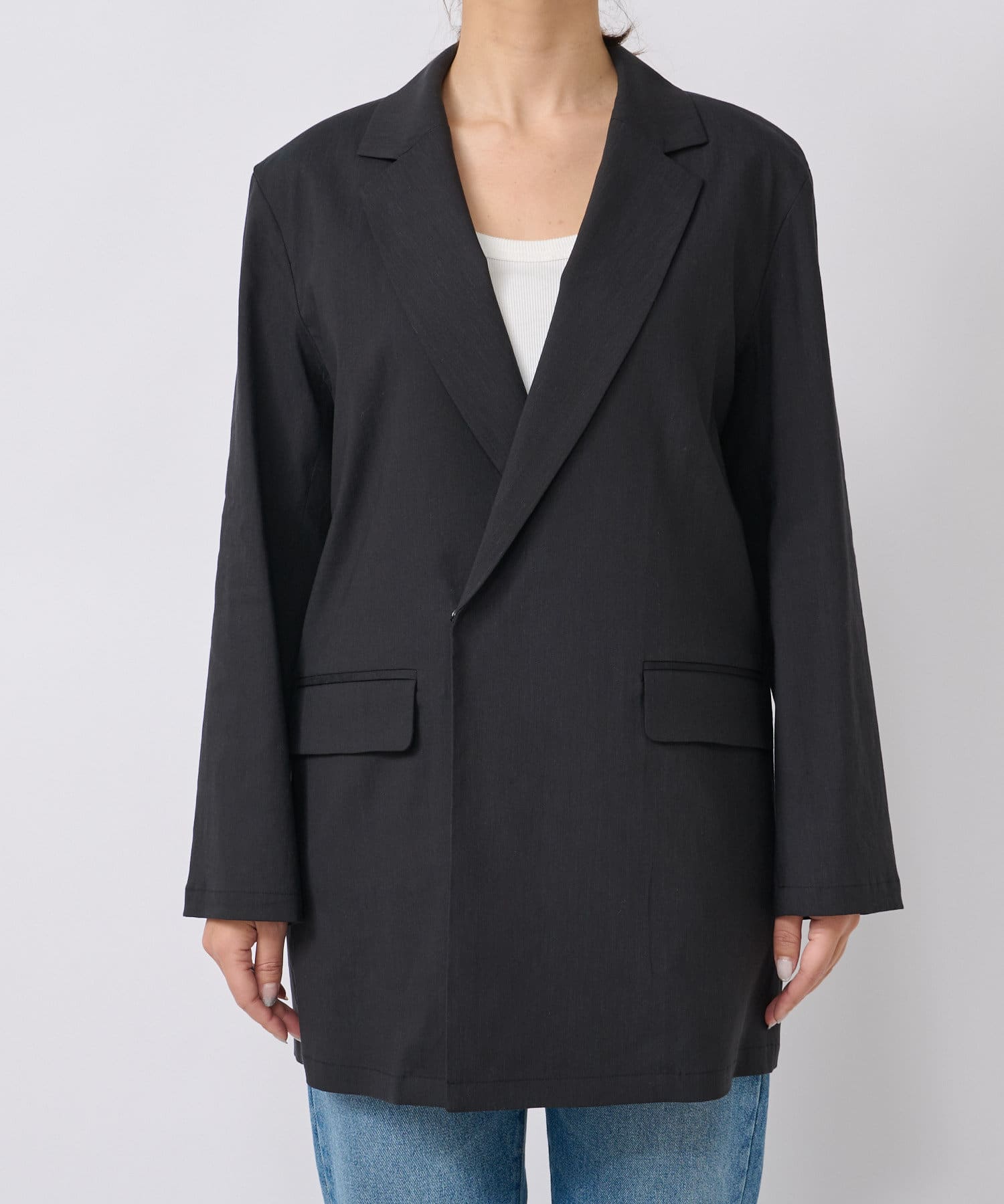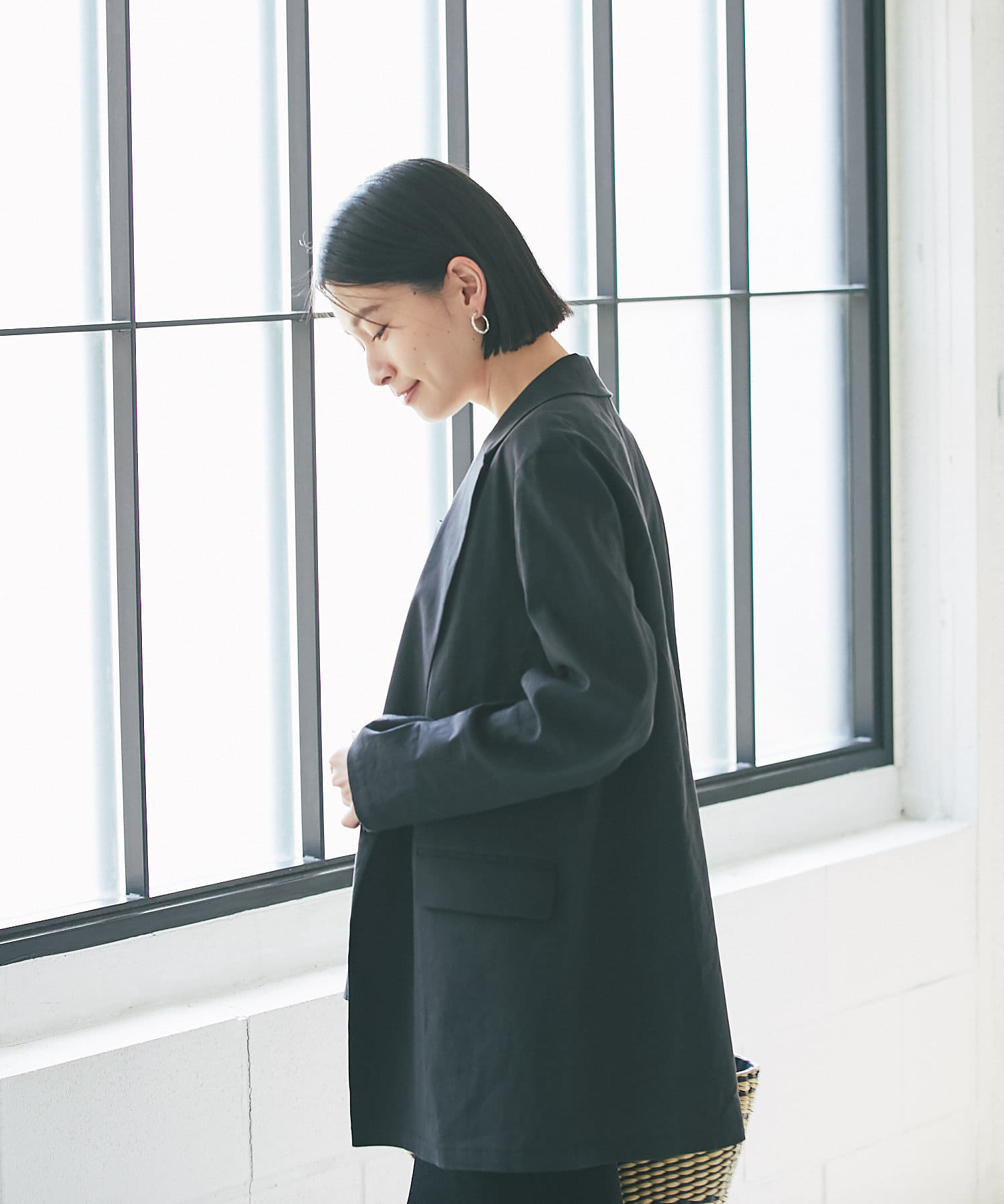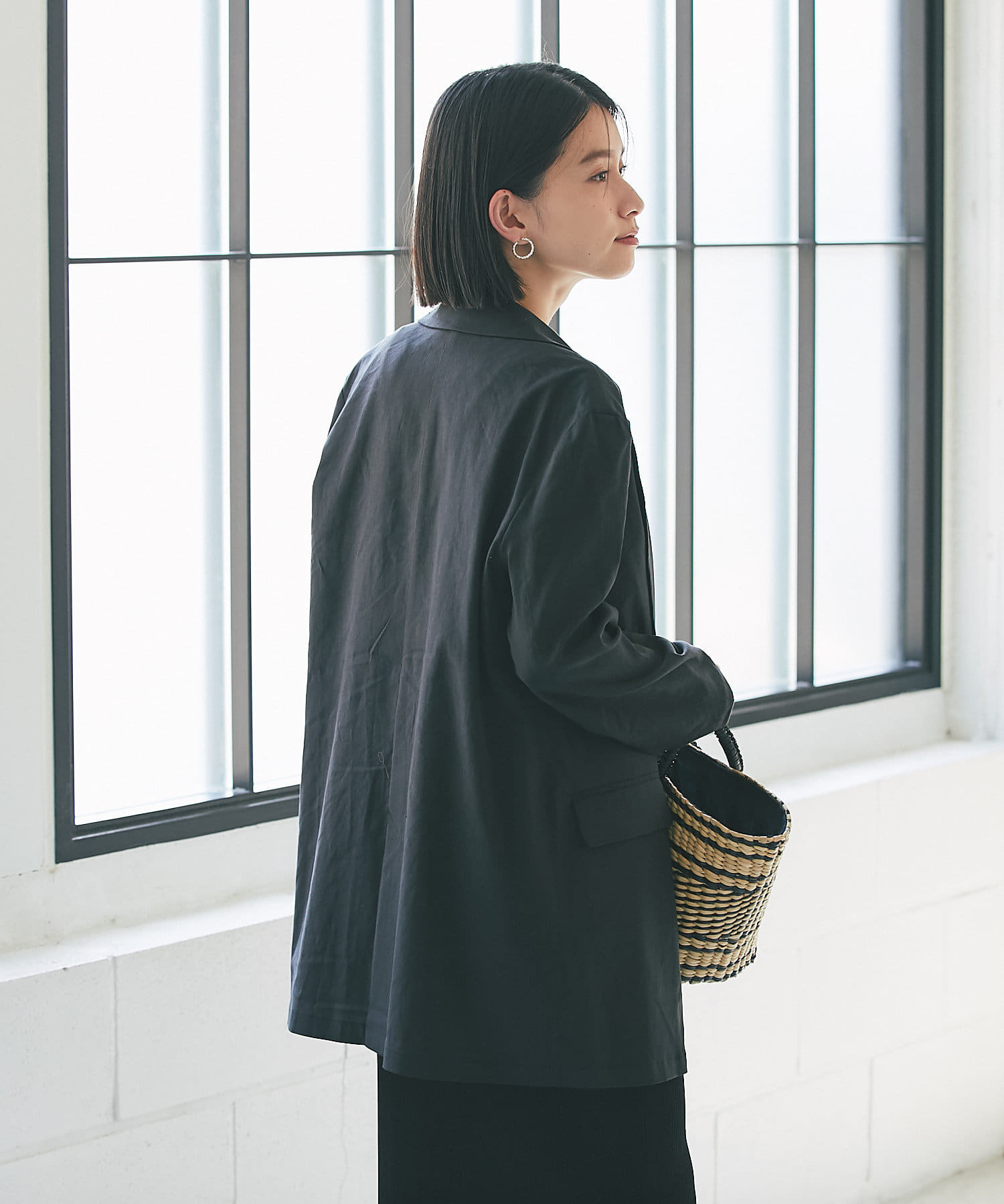 麻とレーヨンでお作りしており、さらっとしつつも柔らかくノンストレスな着心地のゆったりBIGジャケット。