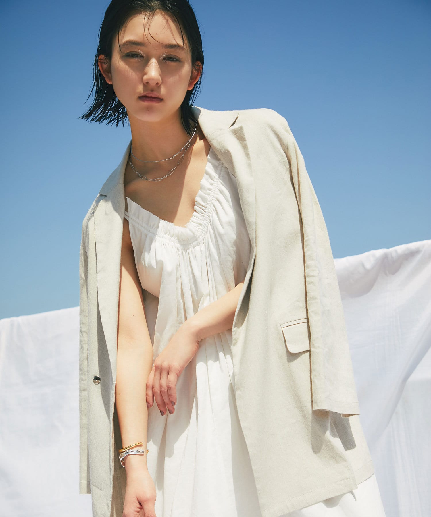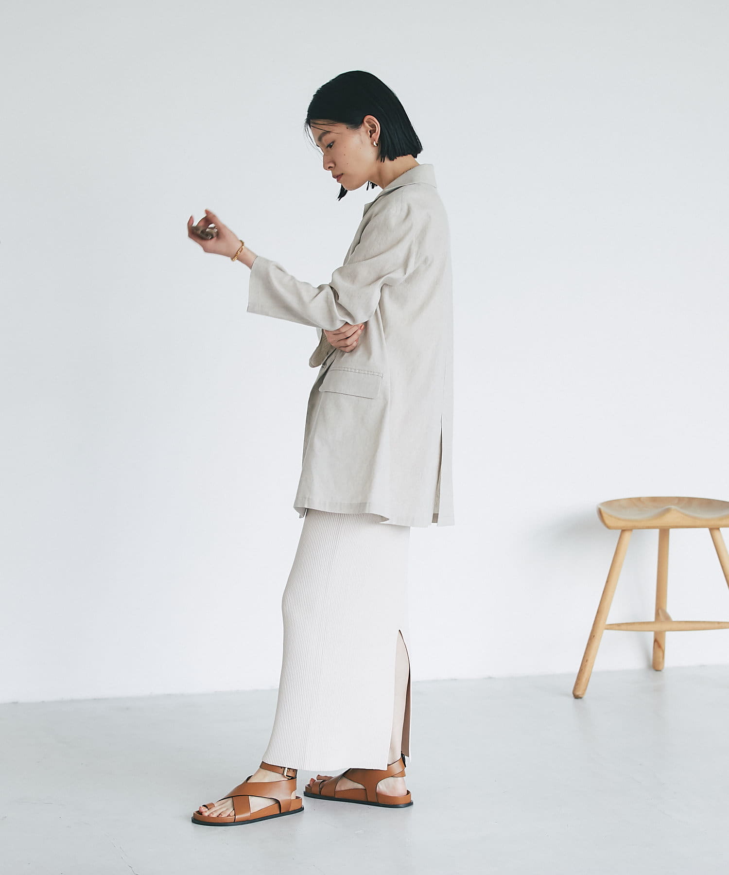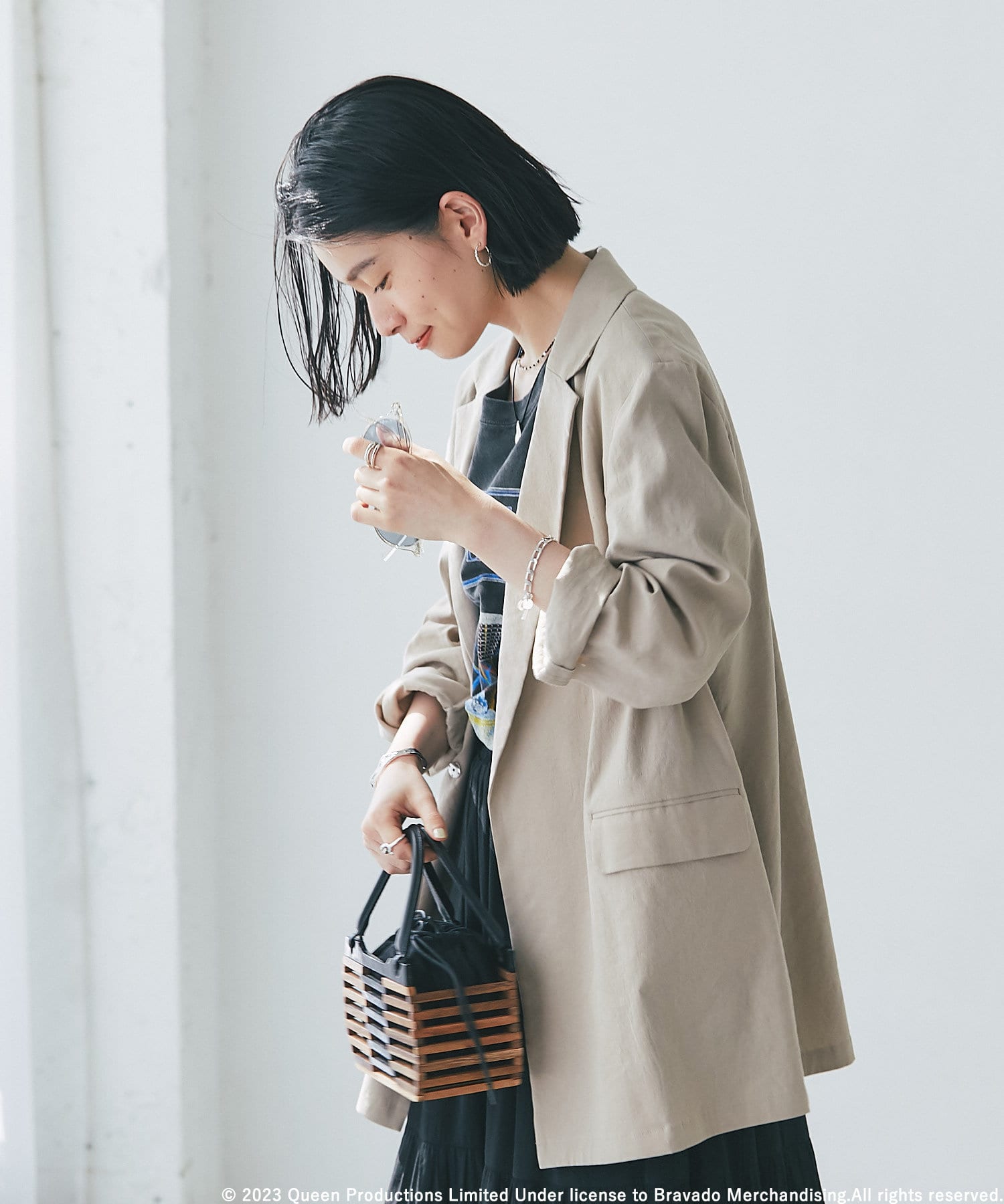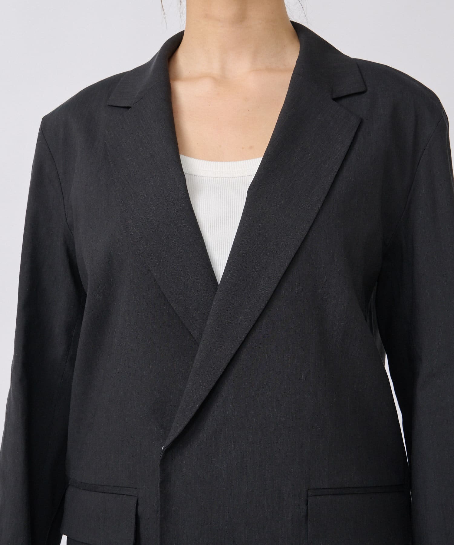 麻とレーヨンでお作りしており、さらっとしつつも柔らかくノンストレスな着心地のゆったりBIGジャケット。