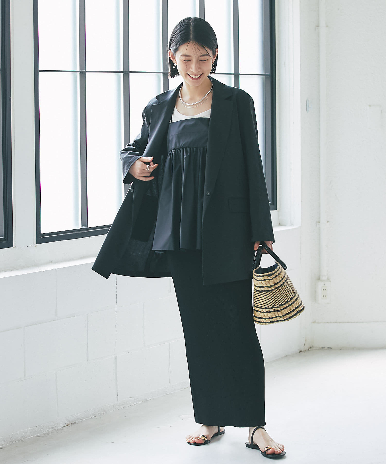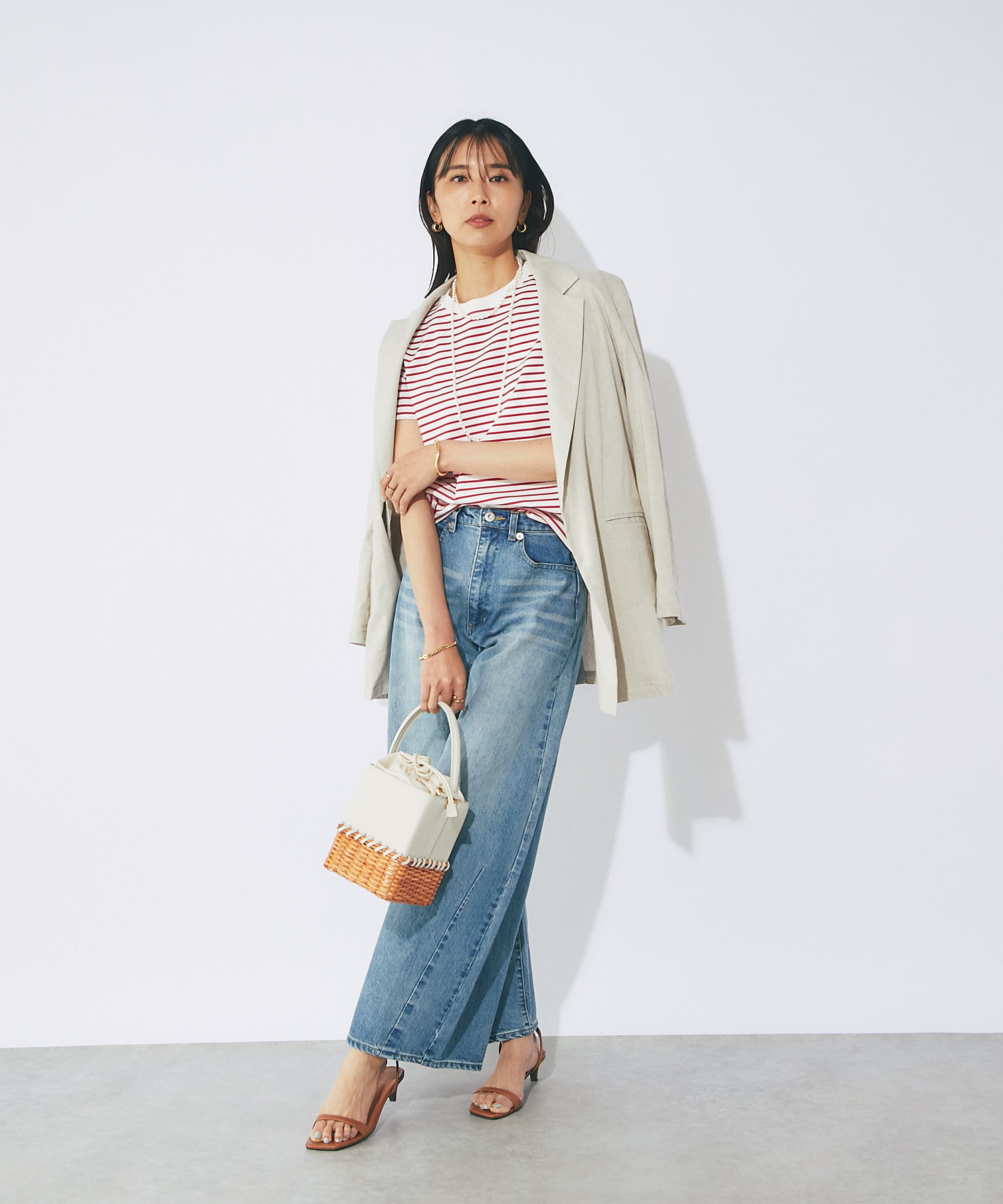 長めな着丈が安心感をプラスし、程よくこなれ感を演出します。