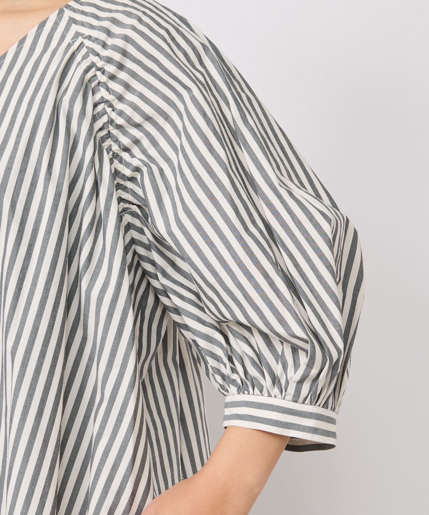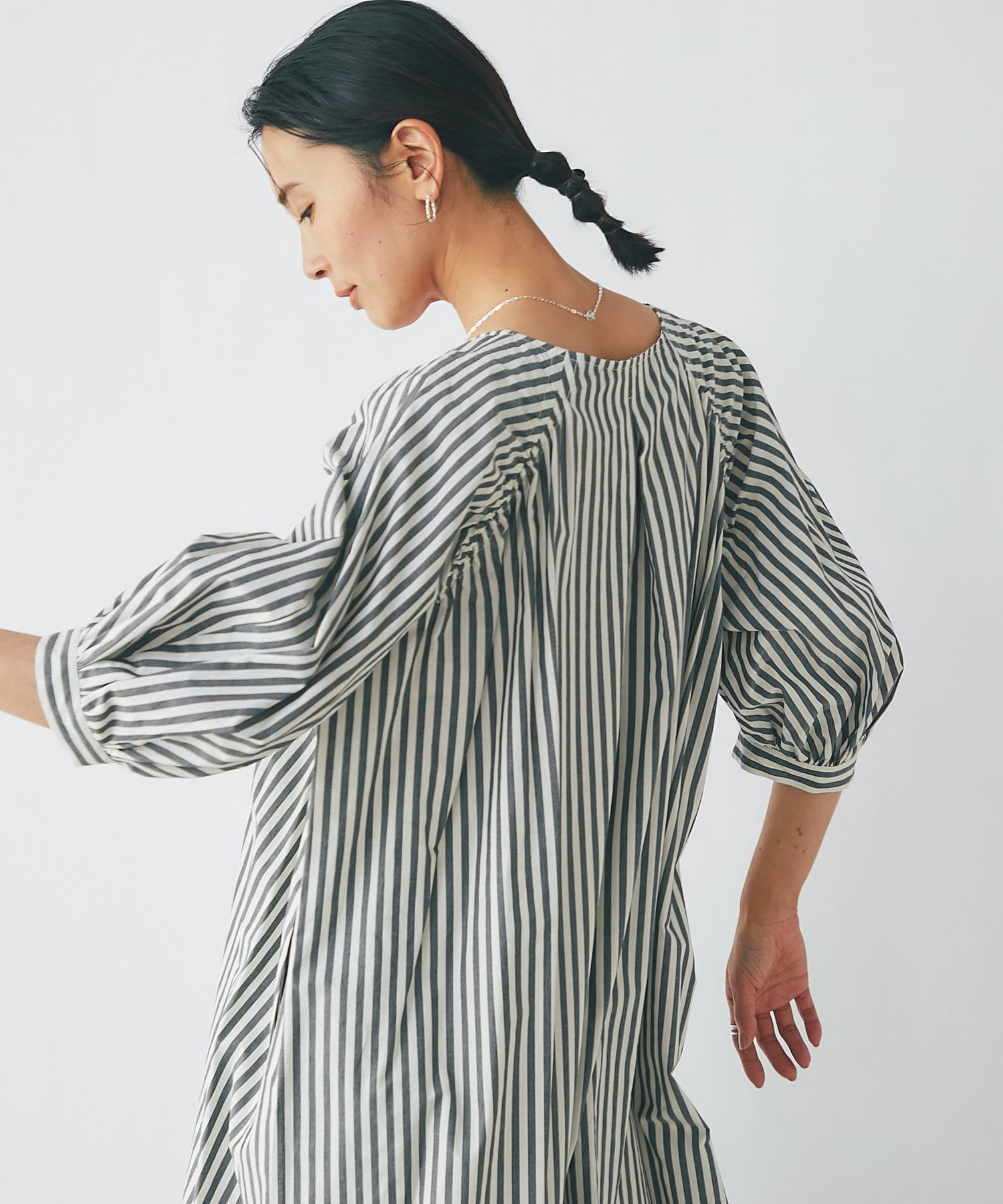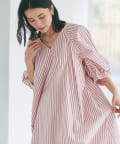 【1枚で着れる楽ちんさが魅力】ストライプランタンスリーブワンピース