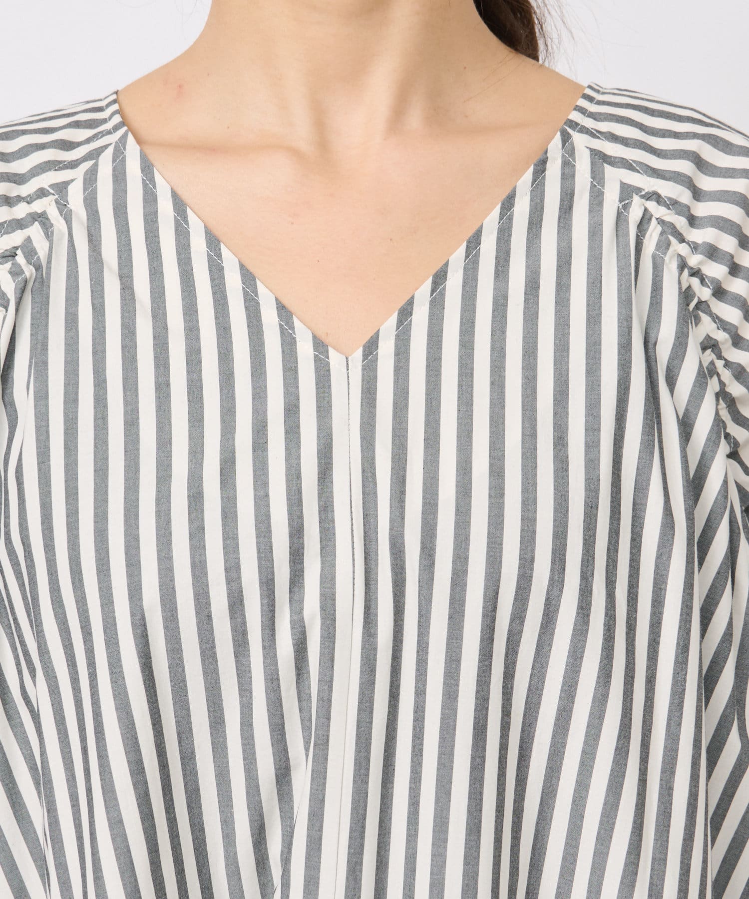 ・Vネックとストライプ柄ですっきり見え