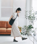 あえて華奢なサンダルやアクセサリーなどを合わせた綺麗めカジュアルスタイルも、大人カジュアルで気張らない印象で素敵です。