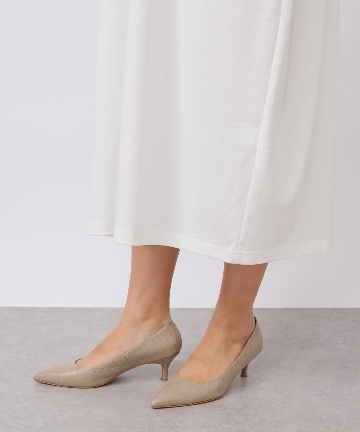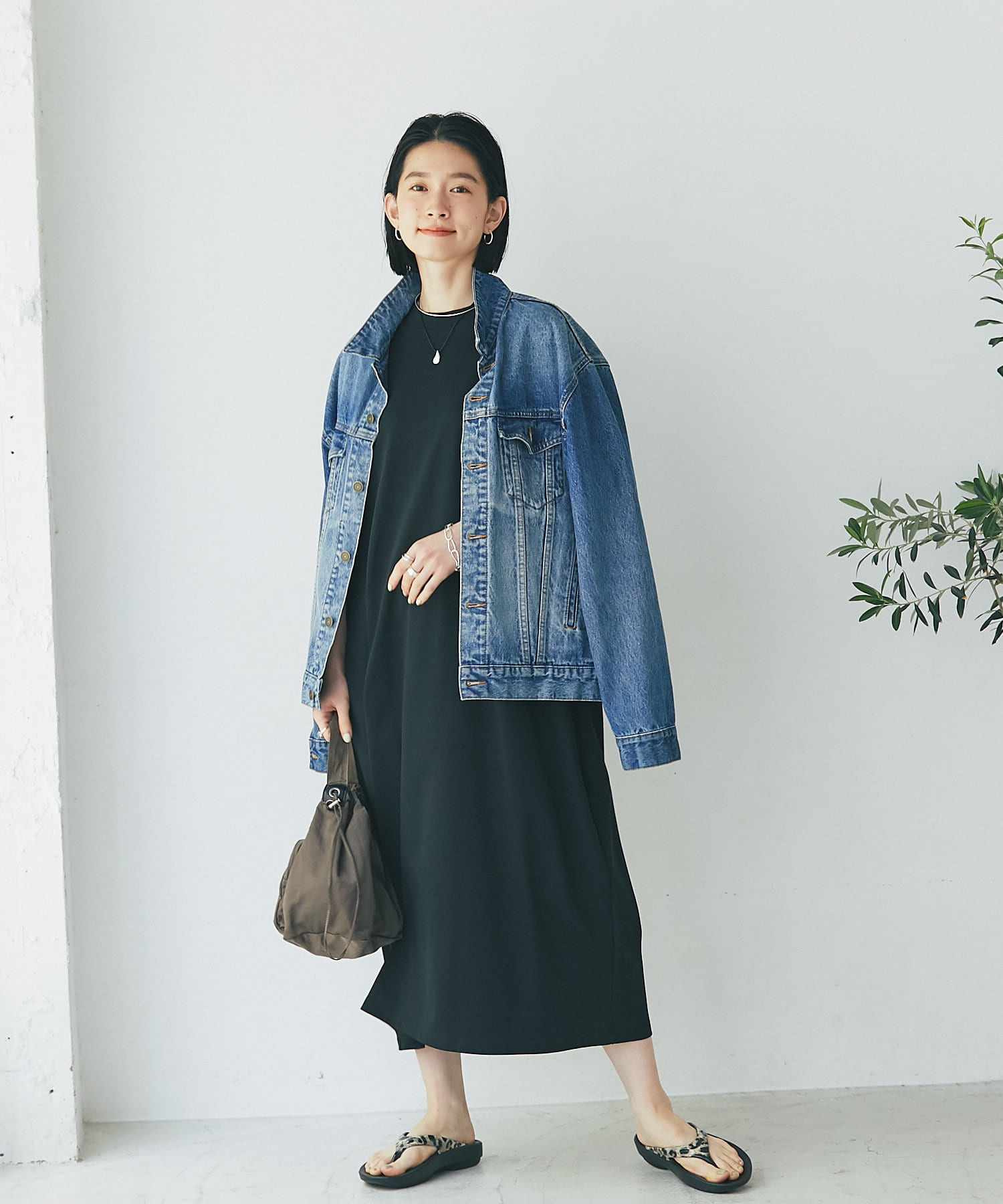 上半身はすっきりしたシルエットなので、はおりものも選ばずコーディネートしやすいシンプルなワンピースです。