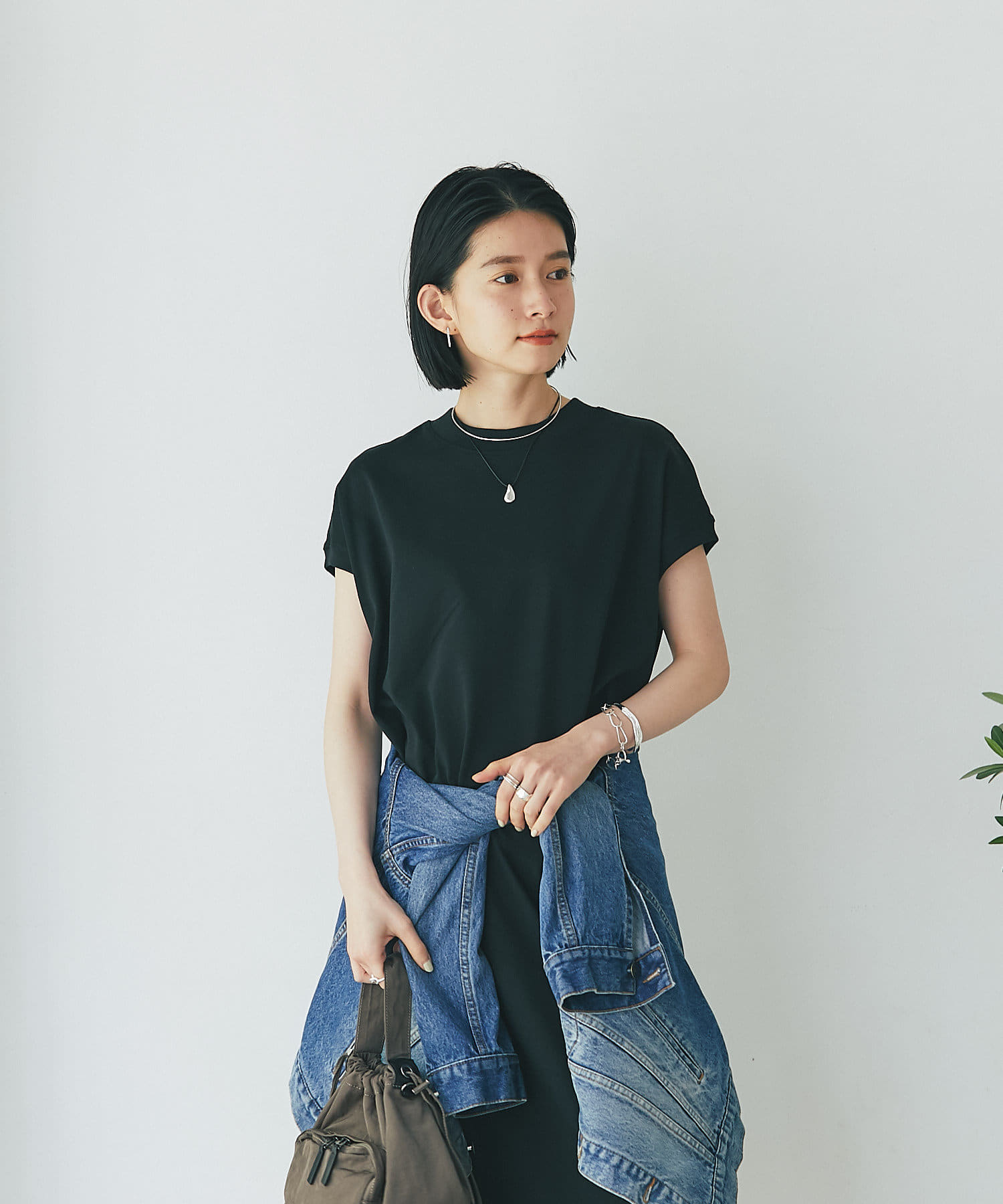 ゆったりしたデザインでラインを拾わないので1枚で着やすいアイテムです。