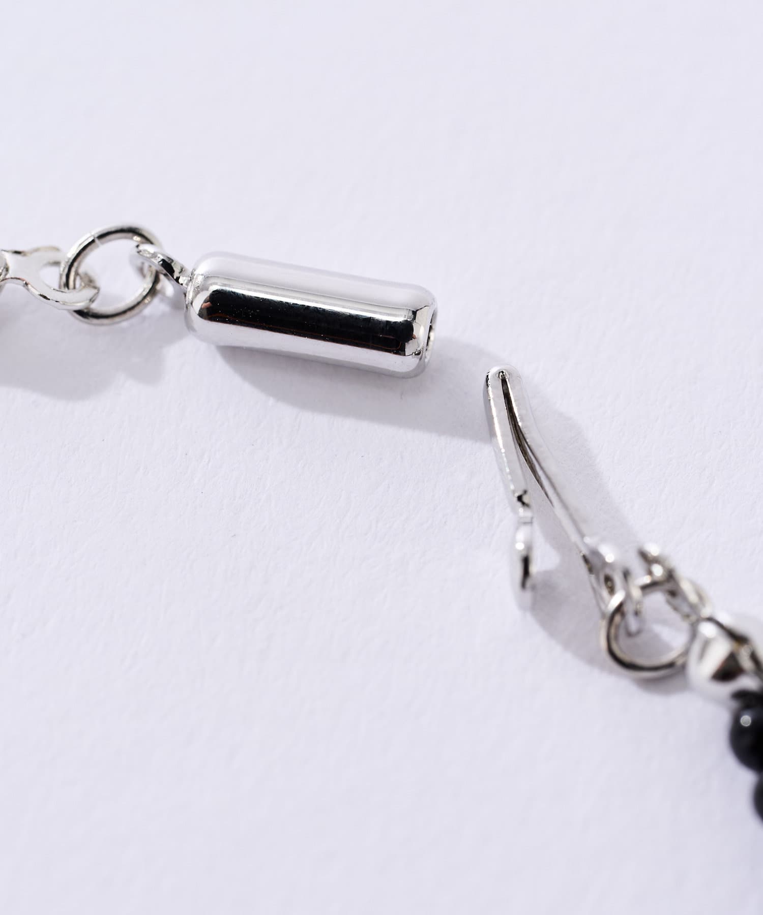 シルバーネックレスとの相性がよく、重ね付けして首元に華やかさをプラスするのも◎