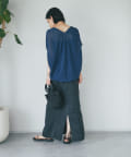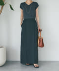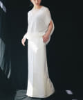 後ろ中心のファスナーあきの仕様や、抜け感のあるロングスリットが裾に入っていることで、着脱のしやすさや動きやすさにも配慮。
