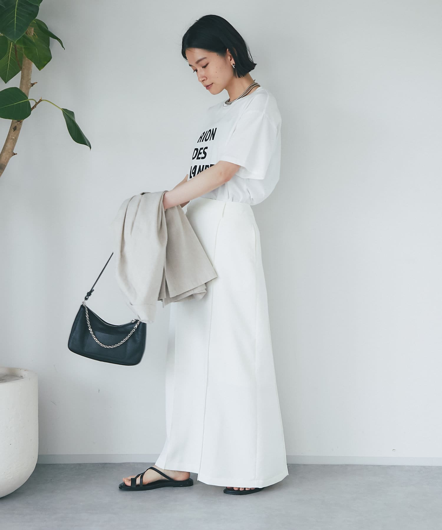 ブラウスをあわせた綺麗目のコーディネートはもちろん、ロゴT等のカジュアルなトップスと合わせたトレンド感のあるコーディネートが今季のイチオシです。